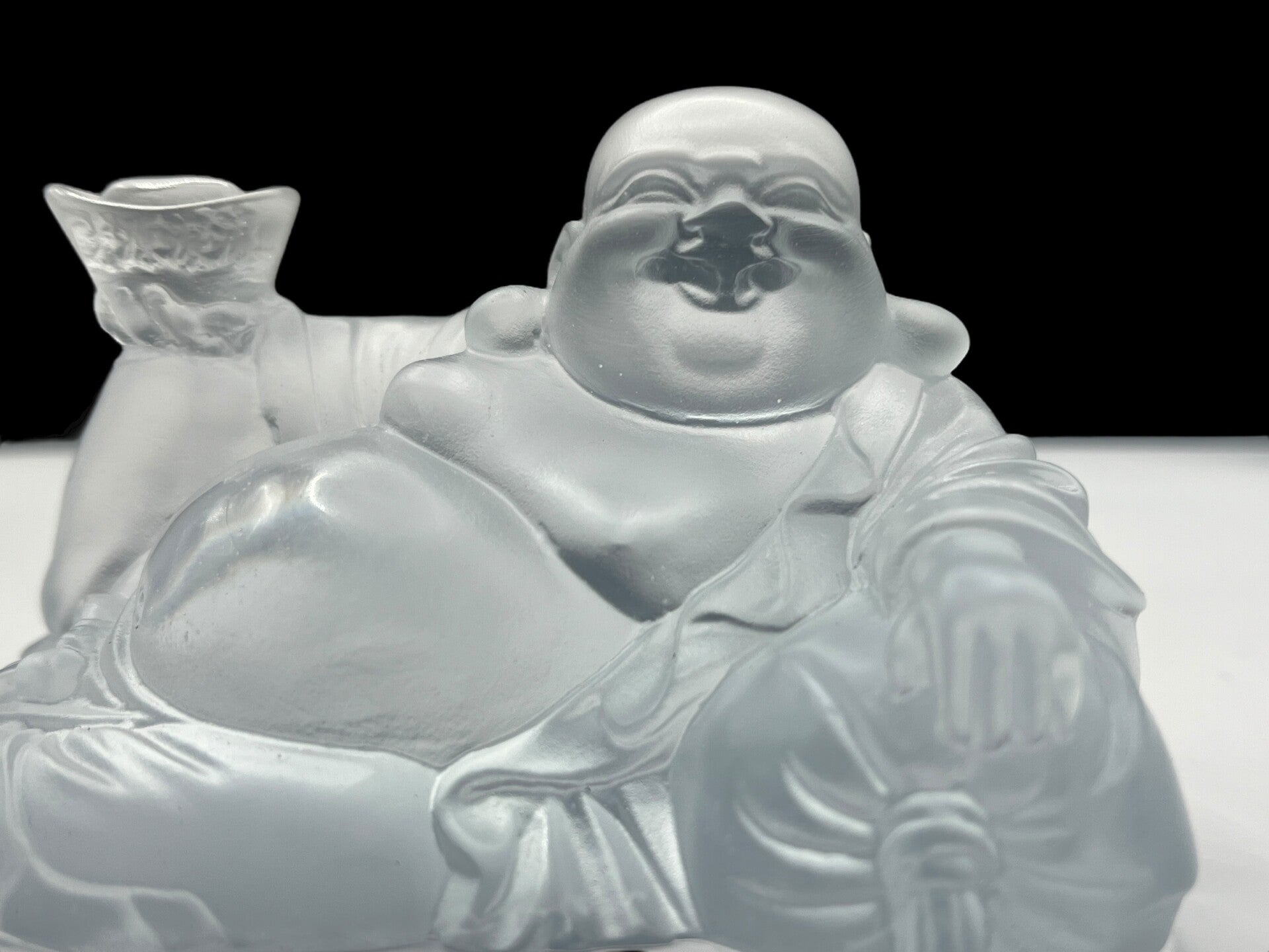 Daum France - CrystalTitled: Happy Bouddha whiteDaum reference number 06390-1Delivered in original boxHeight: 11 cmWidth: 6,5 cm