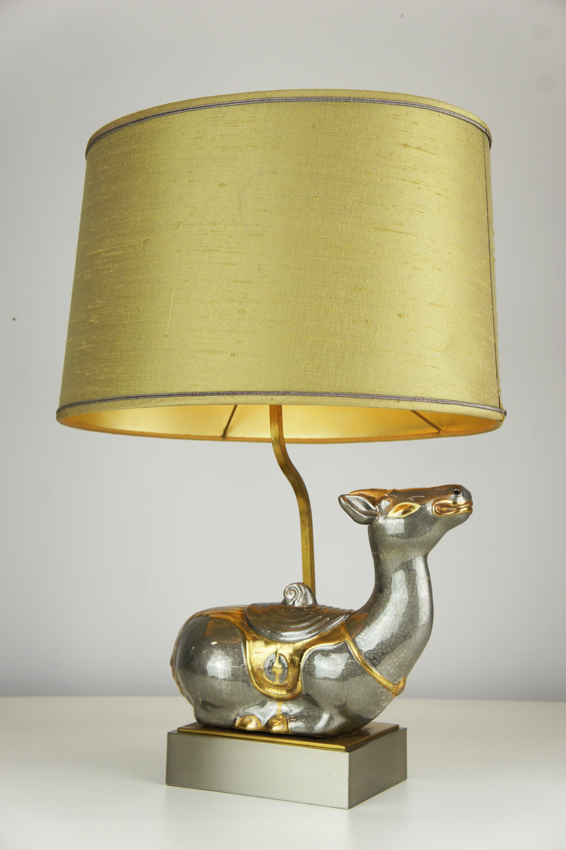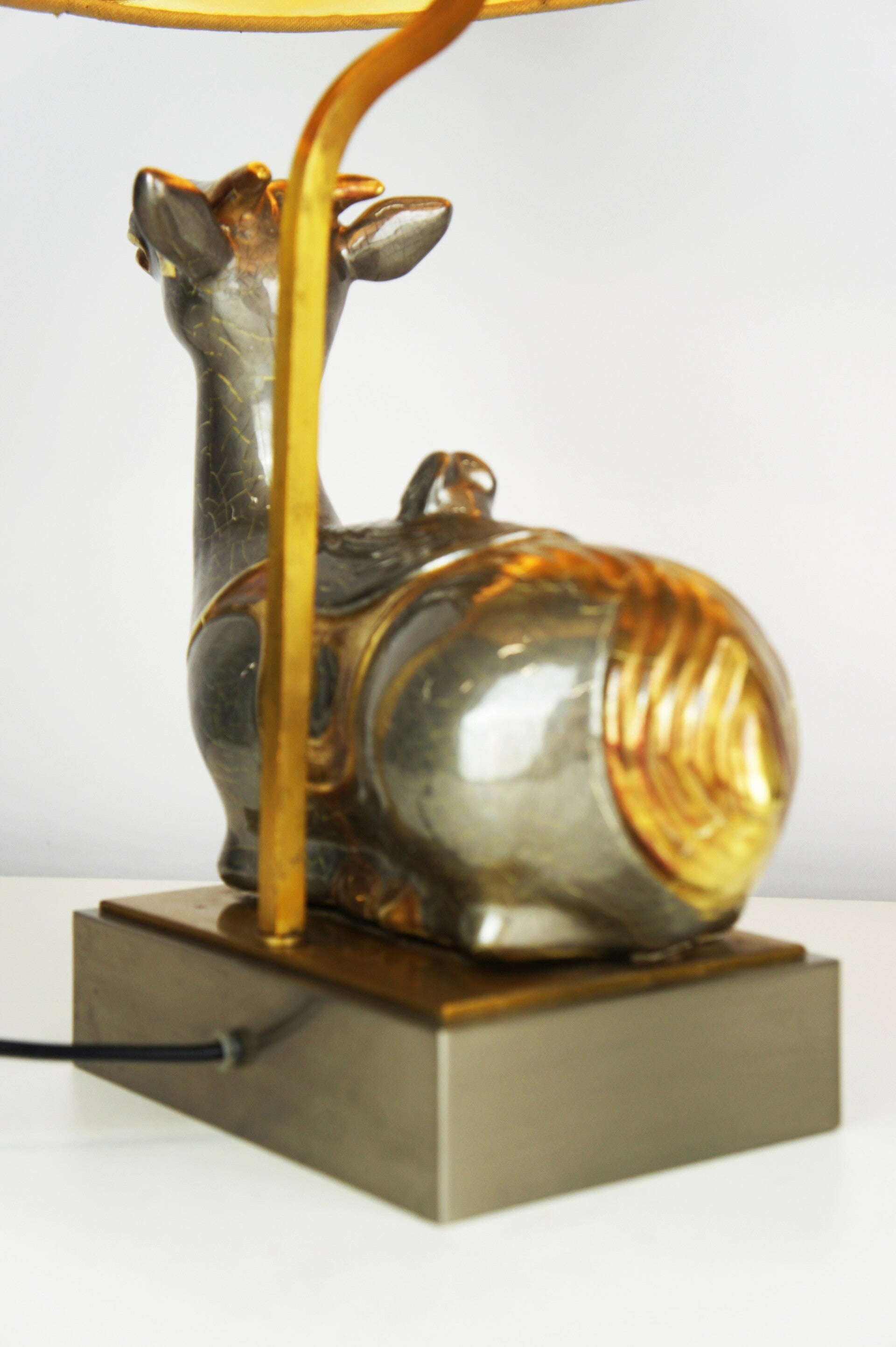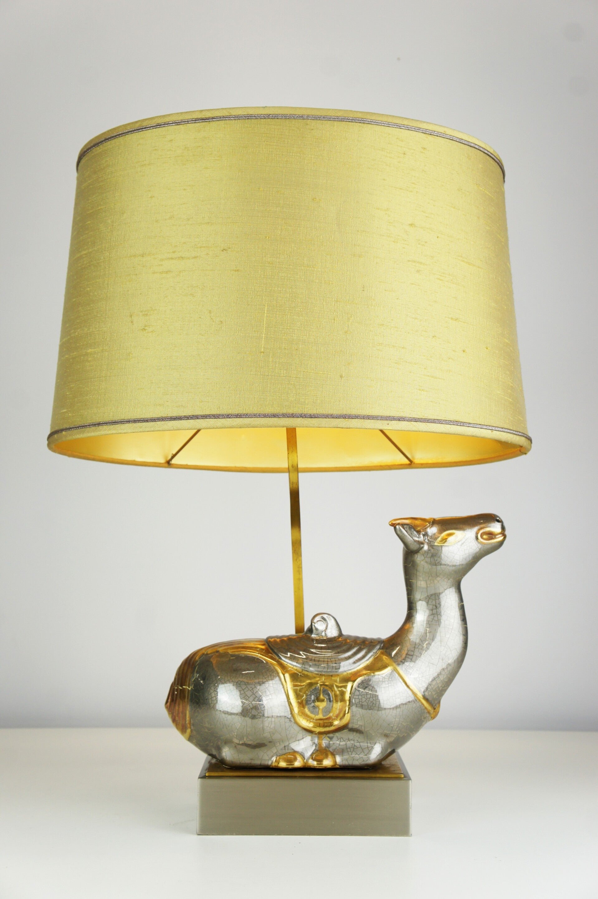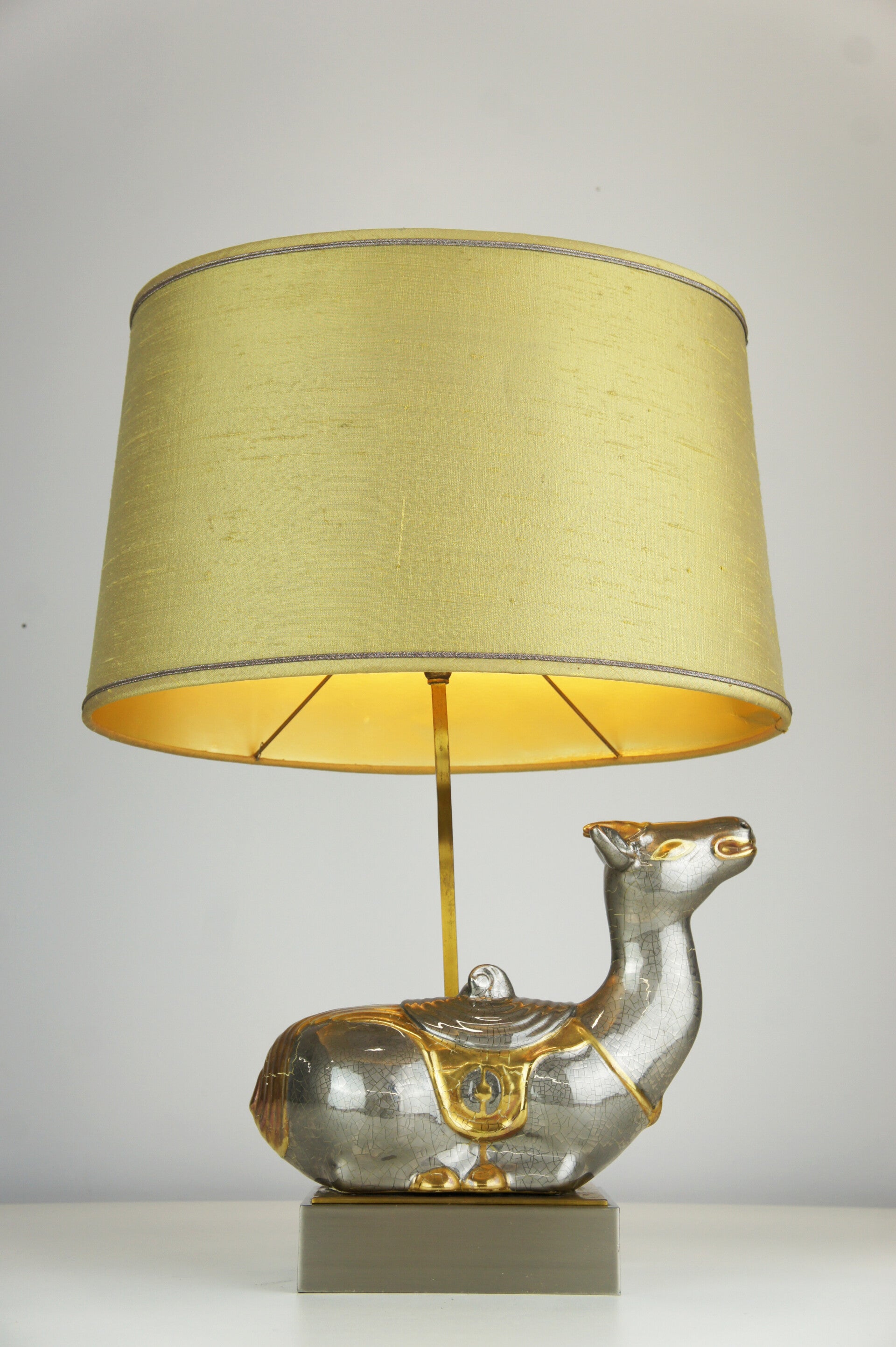 Ceramic table lamp, French work from the 60s, after a representation of the 'Sacred cow' in gold and silver mirror glaze with a crackle effect.