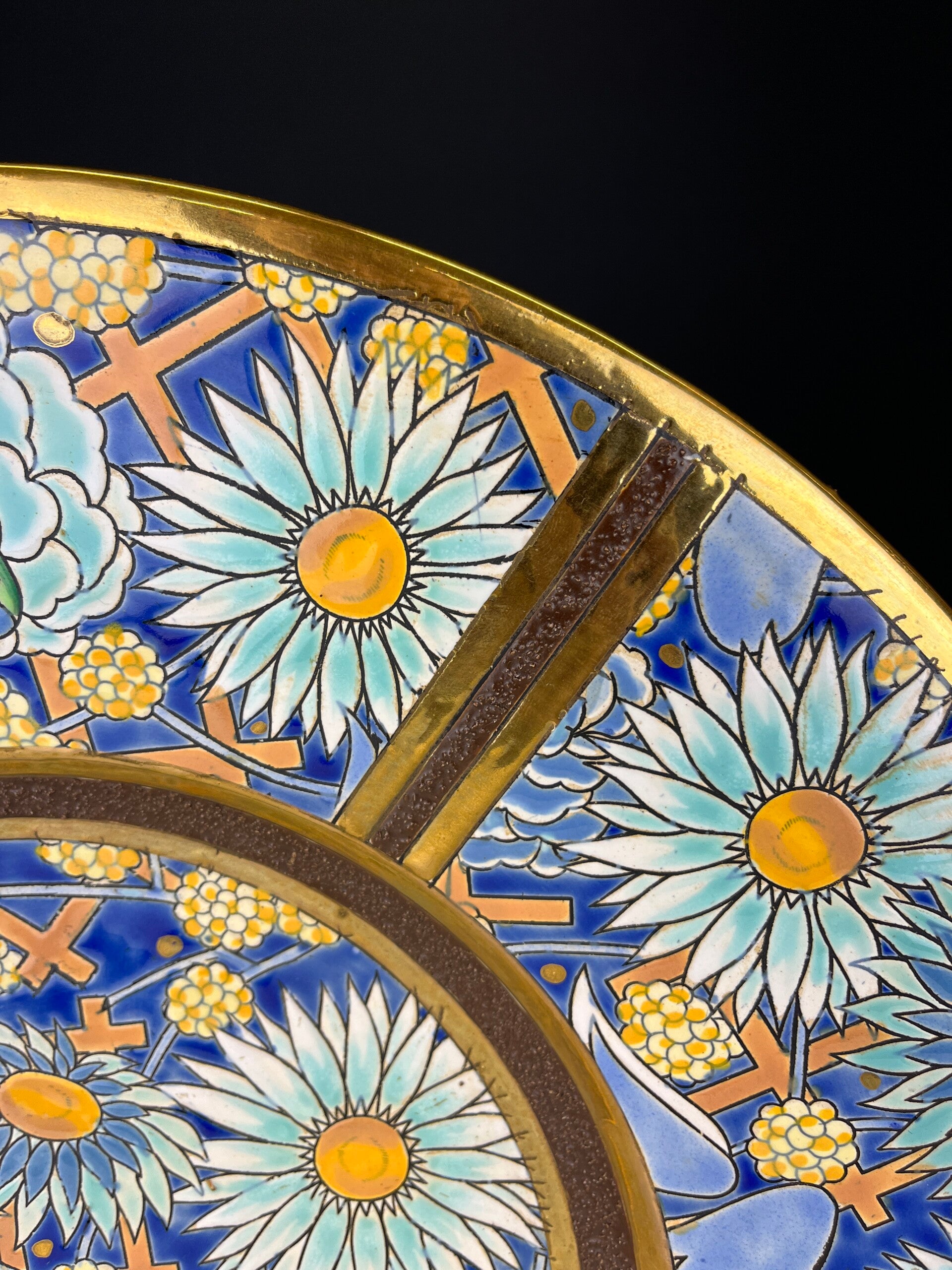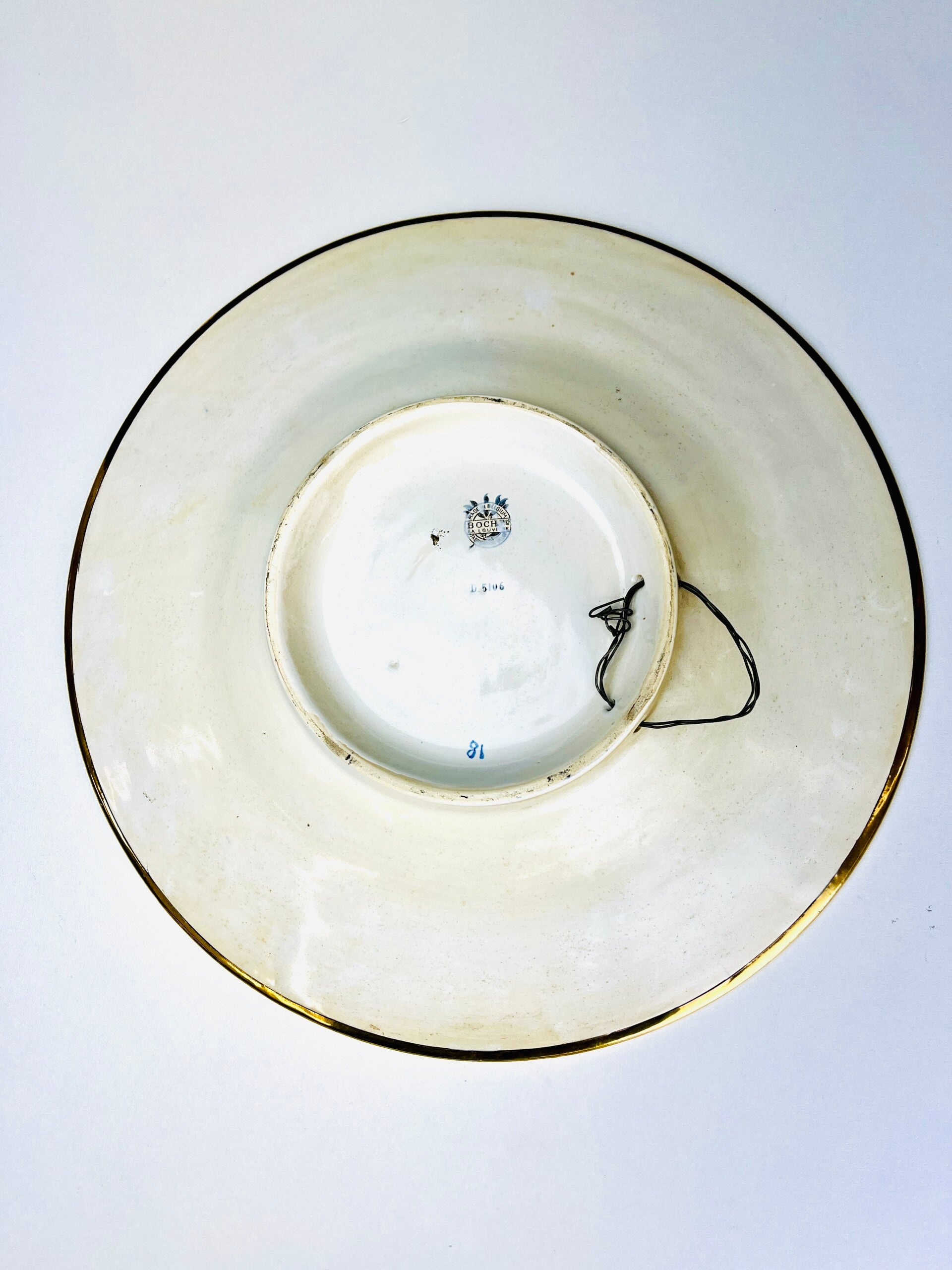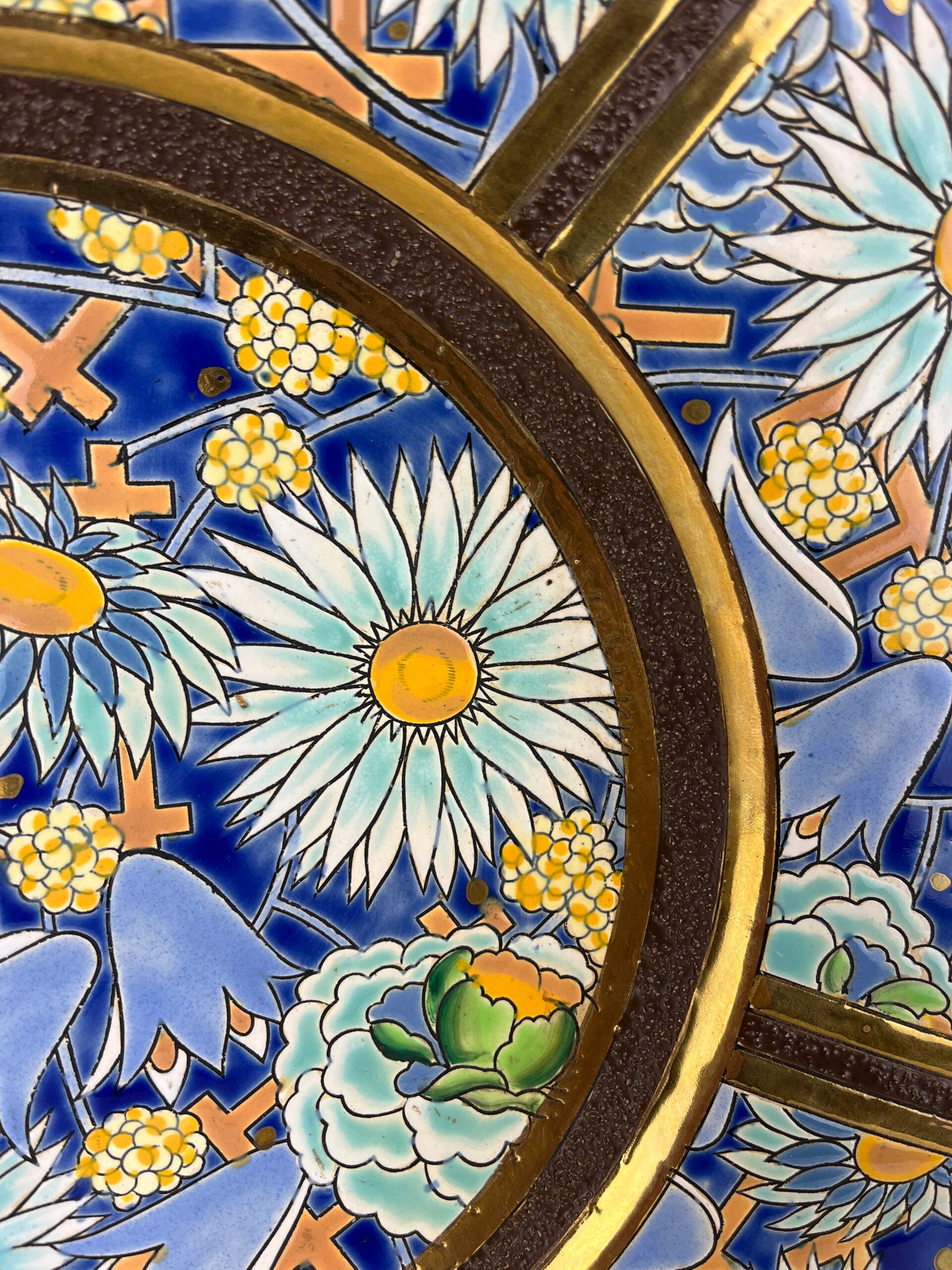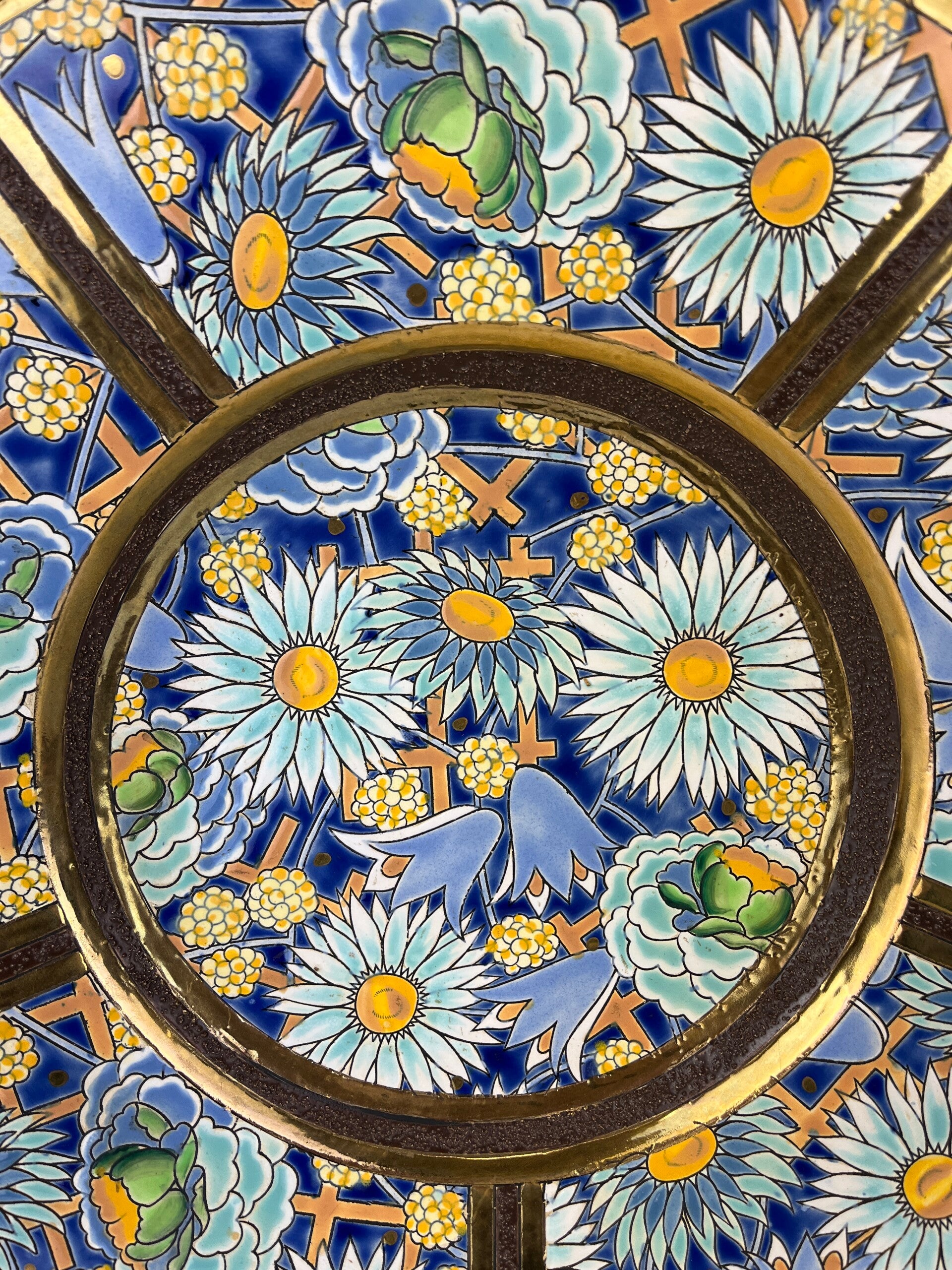 Very large wall plate/dish, embossed decor with stylized flora.