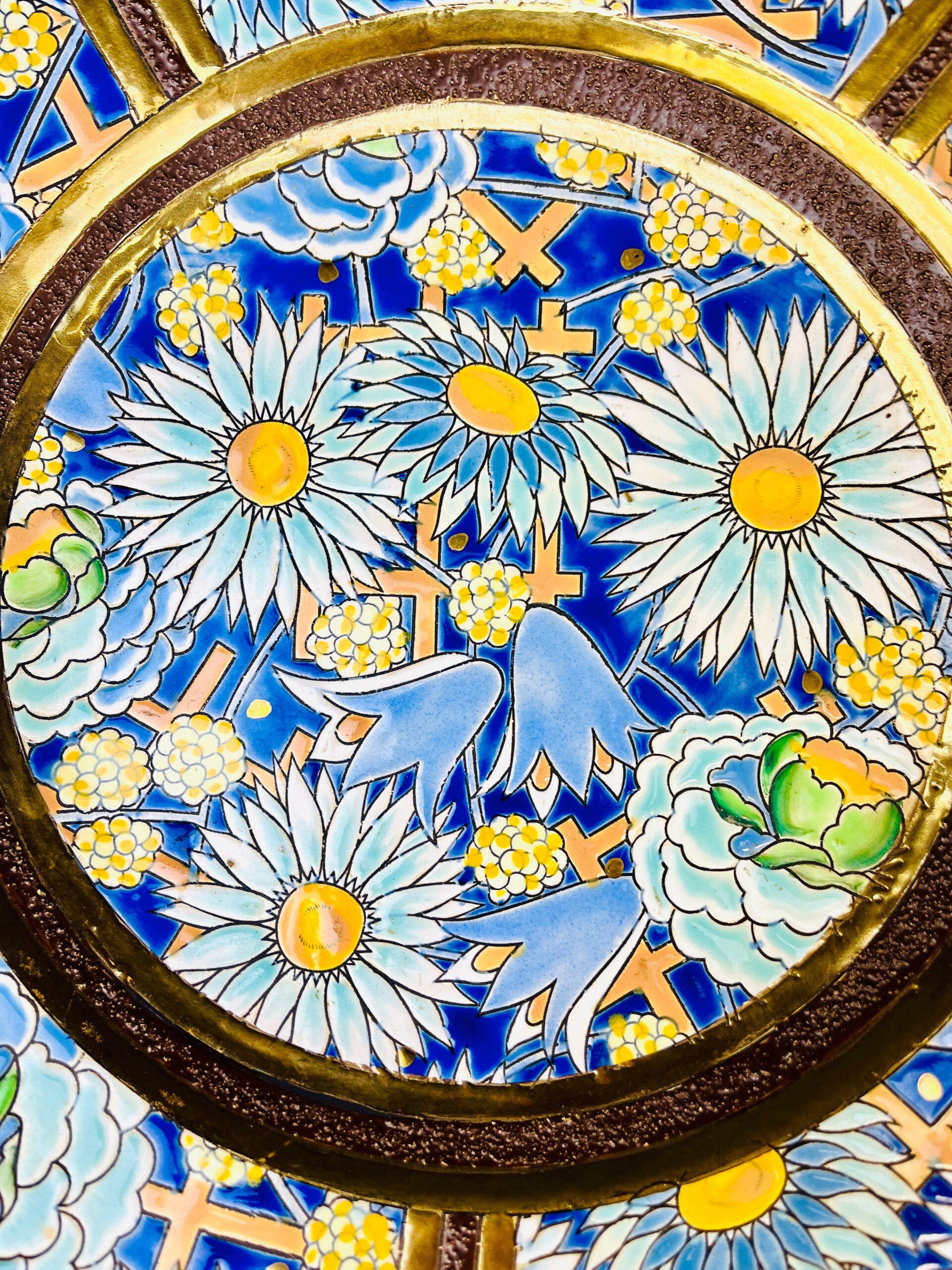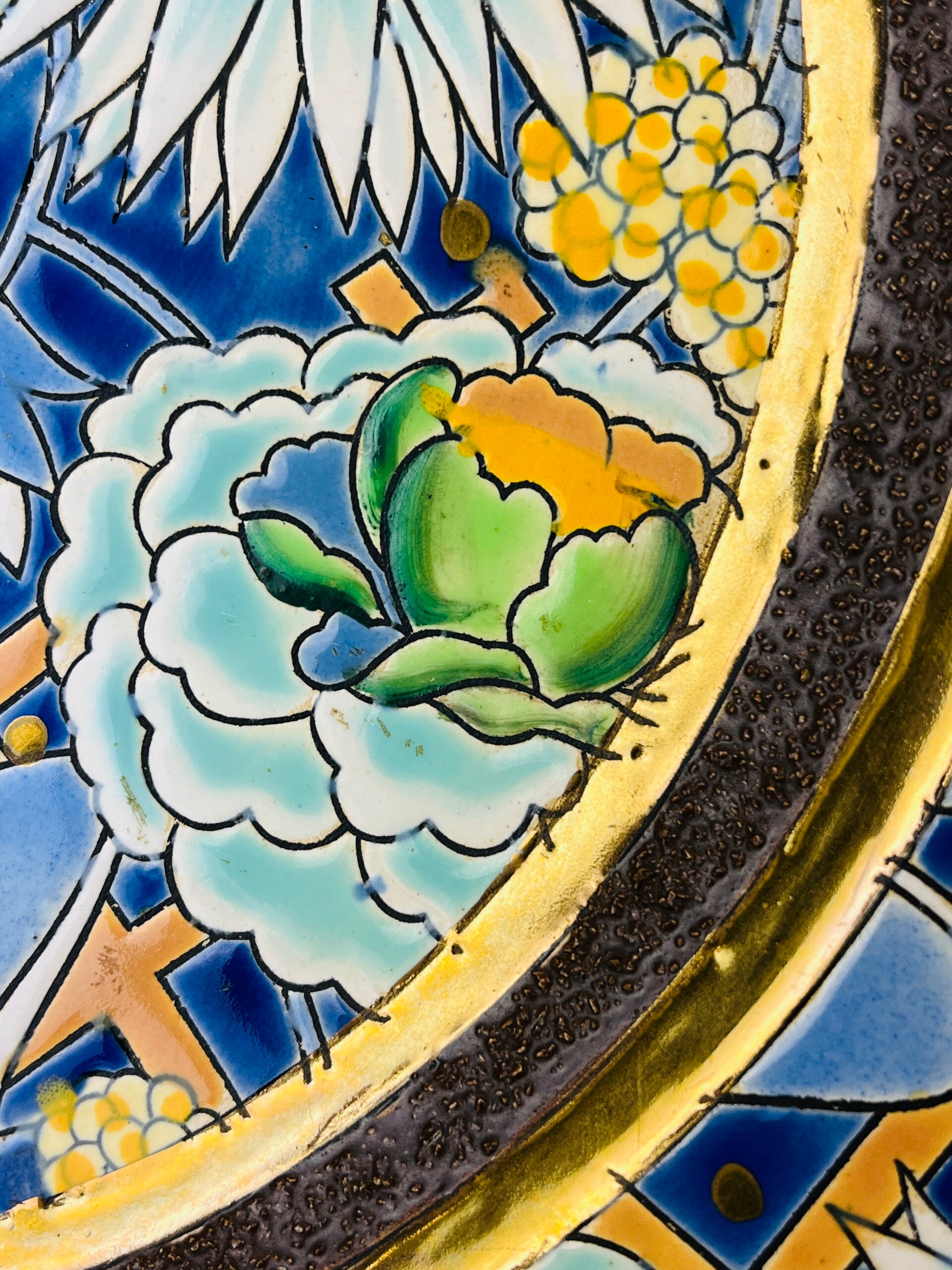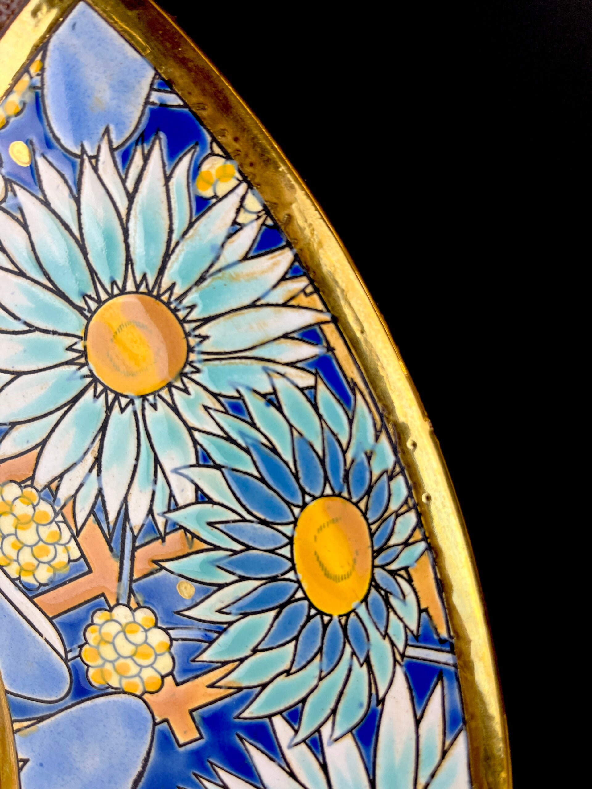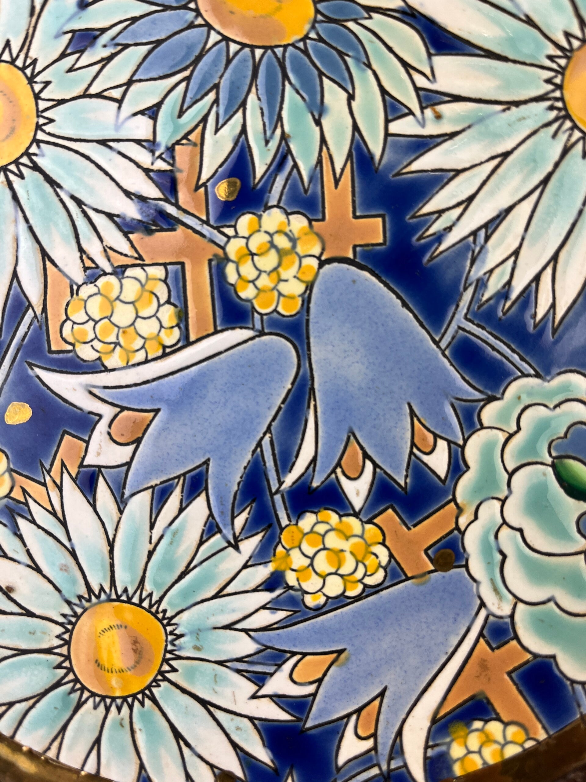 Very large wall plate/dish, embossed decor with stylized flora.