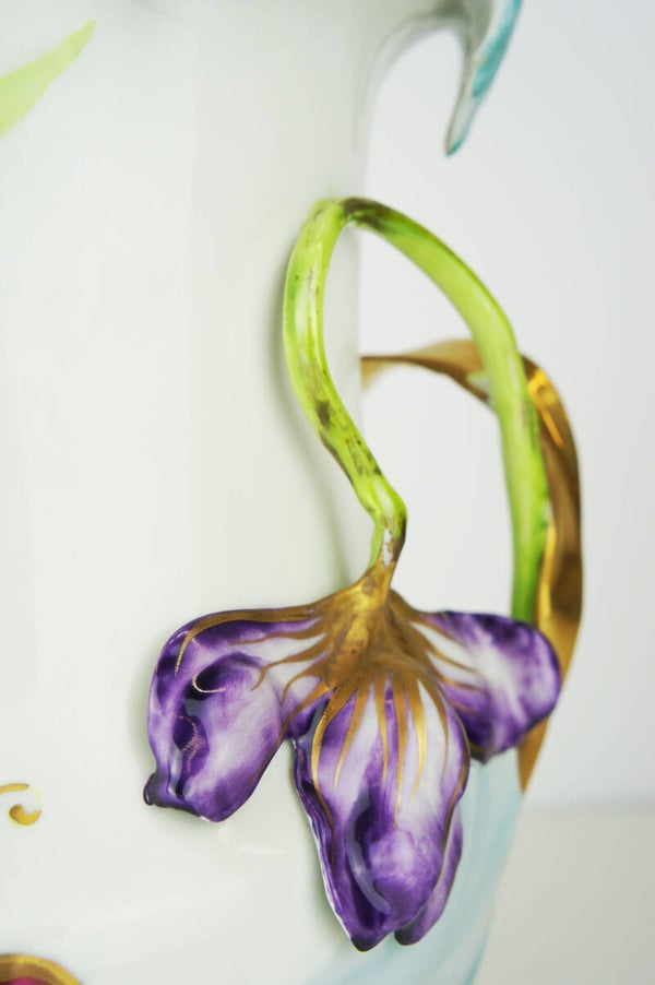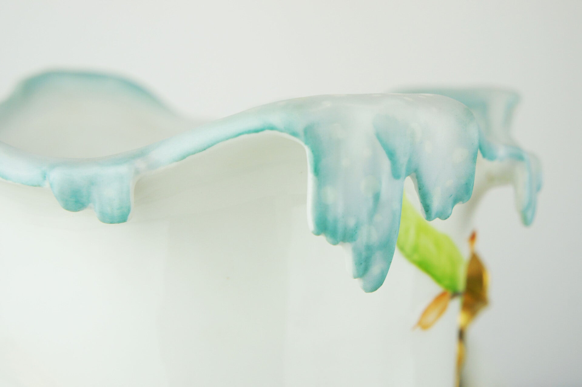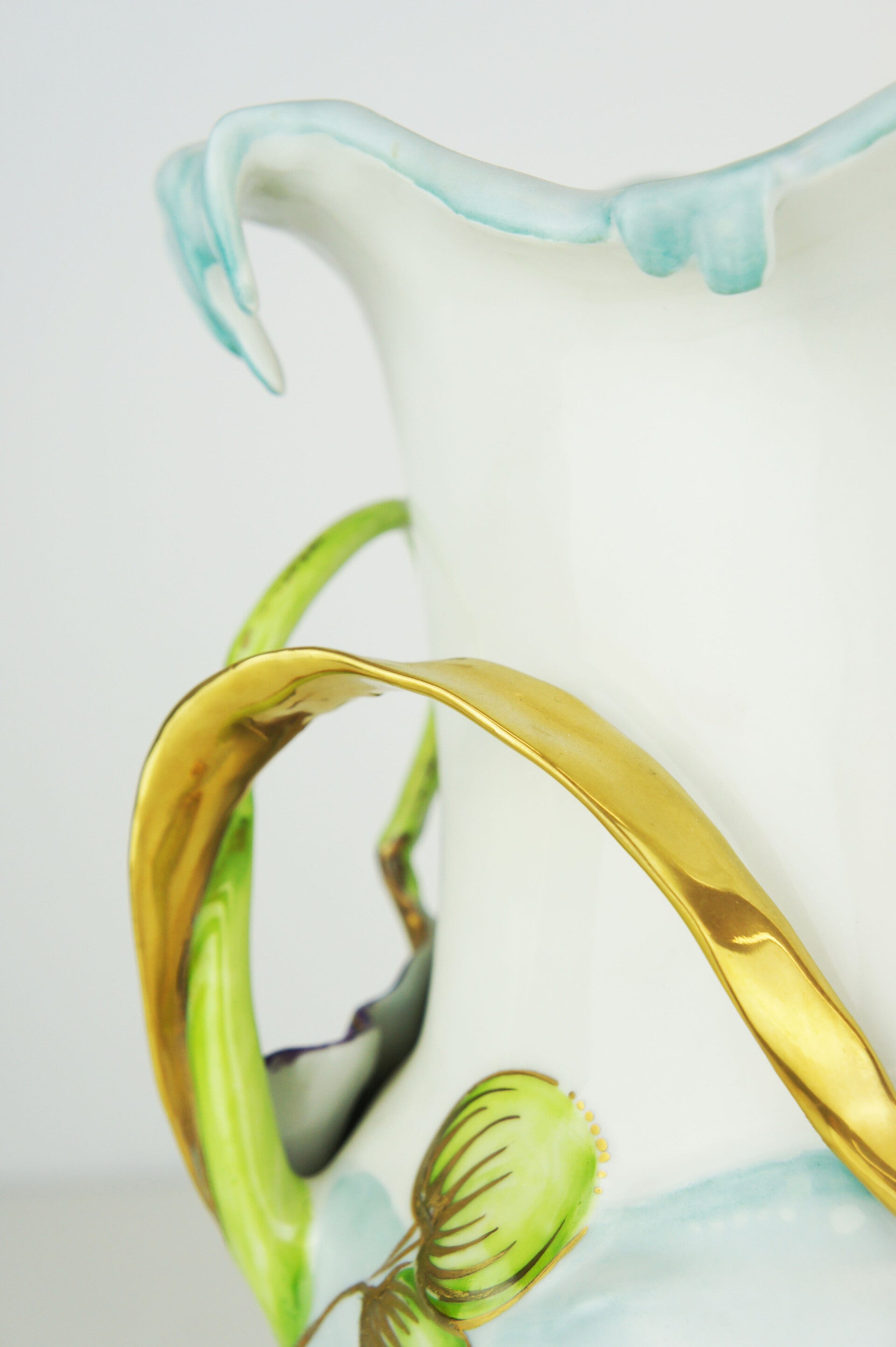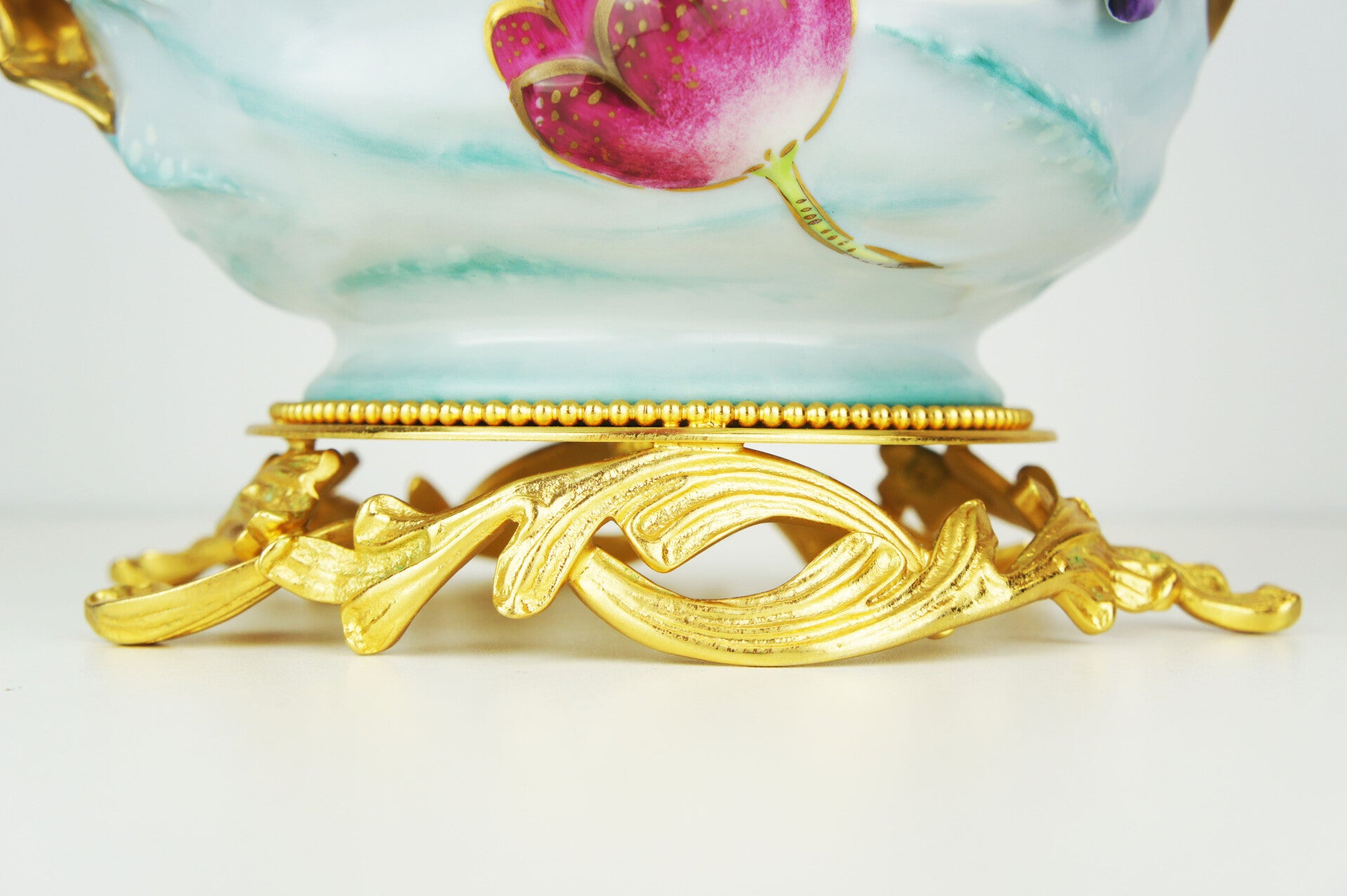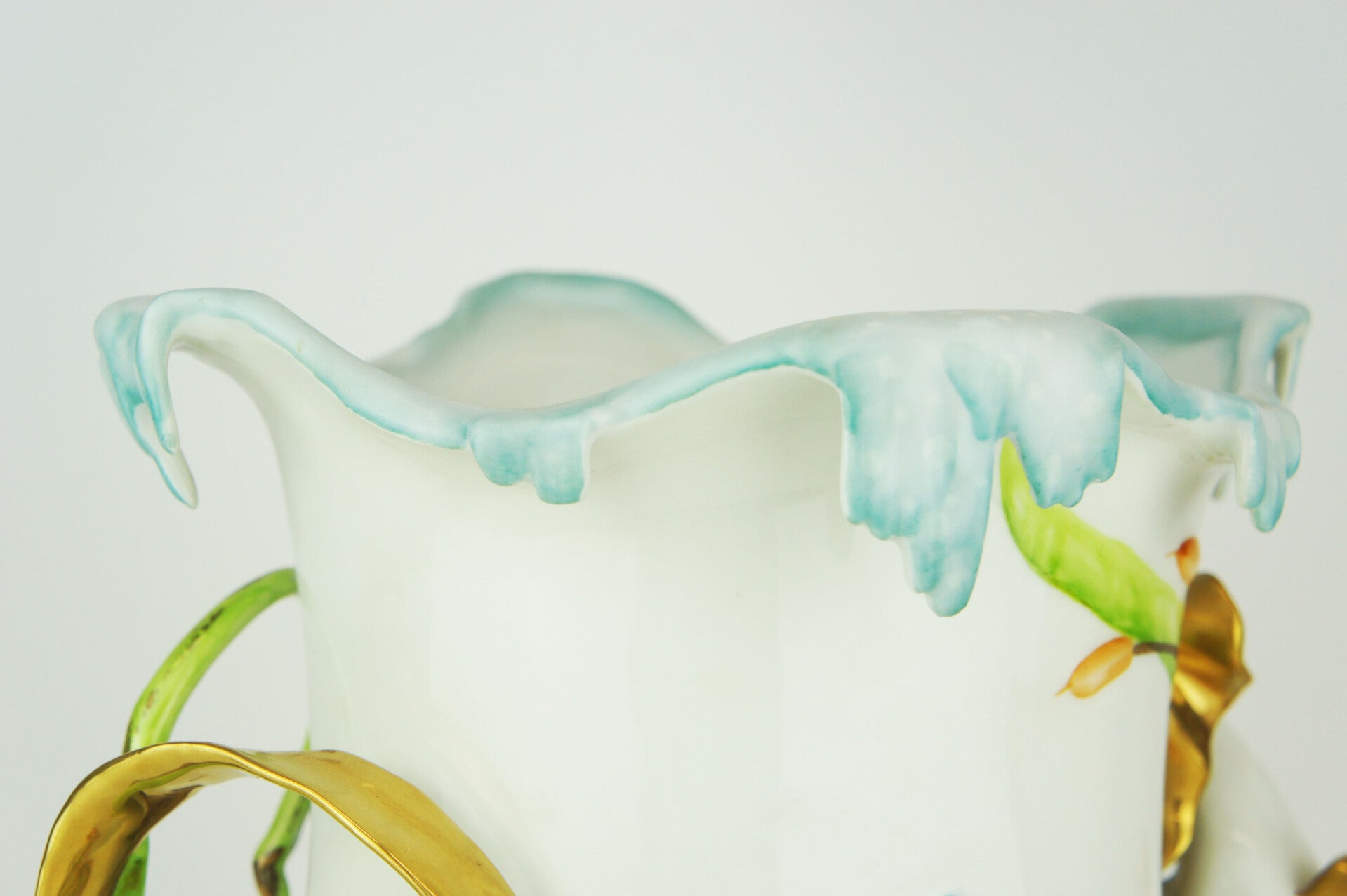 Stylish and finely decorated cache-pot with a nymph by the Italian Giulia Mangani. The porcelain is mounted on a gilded base.