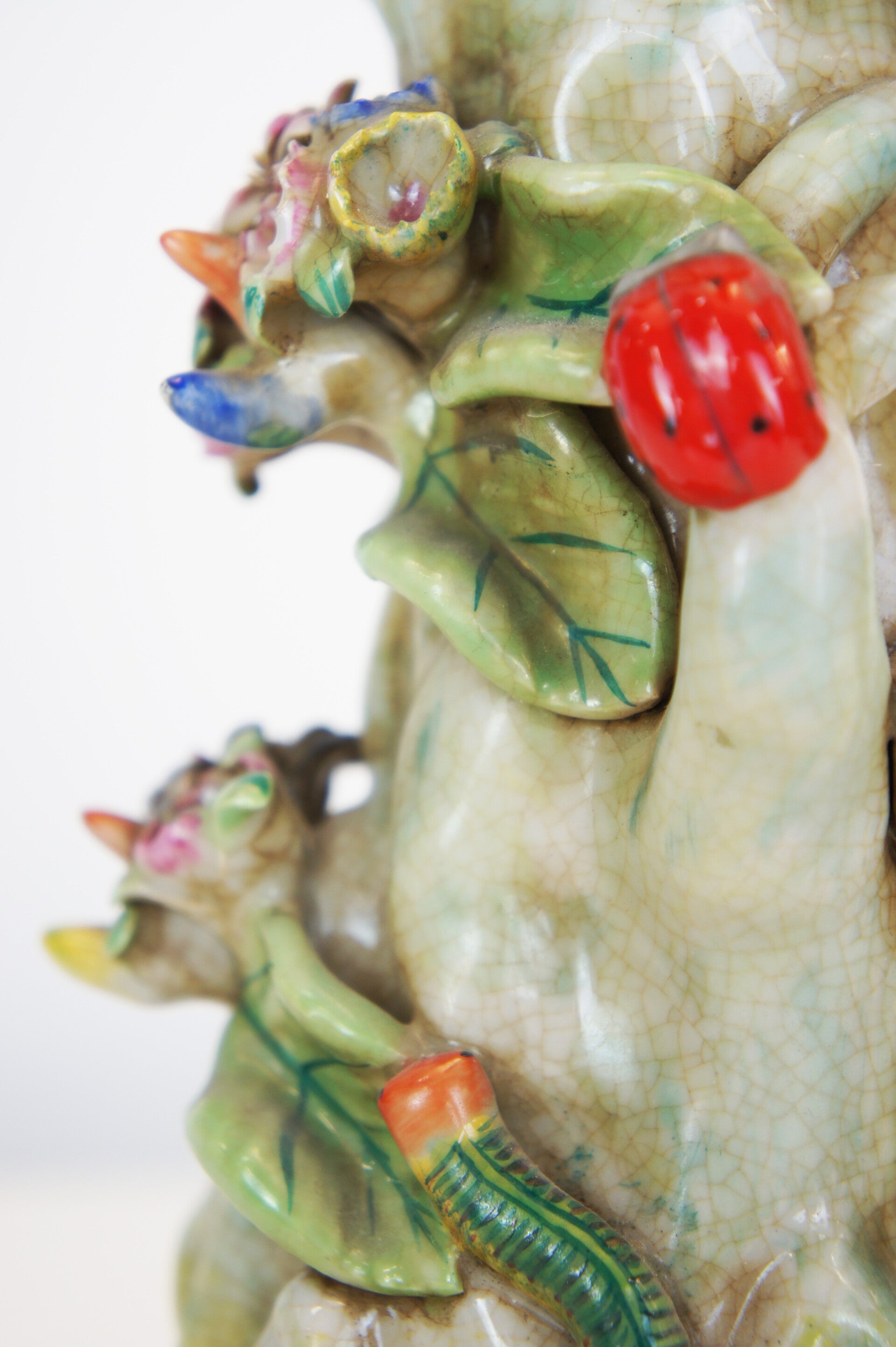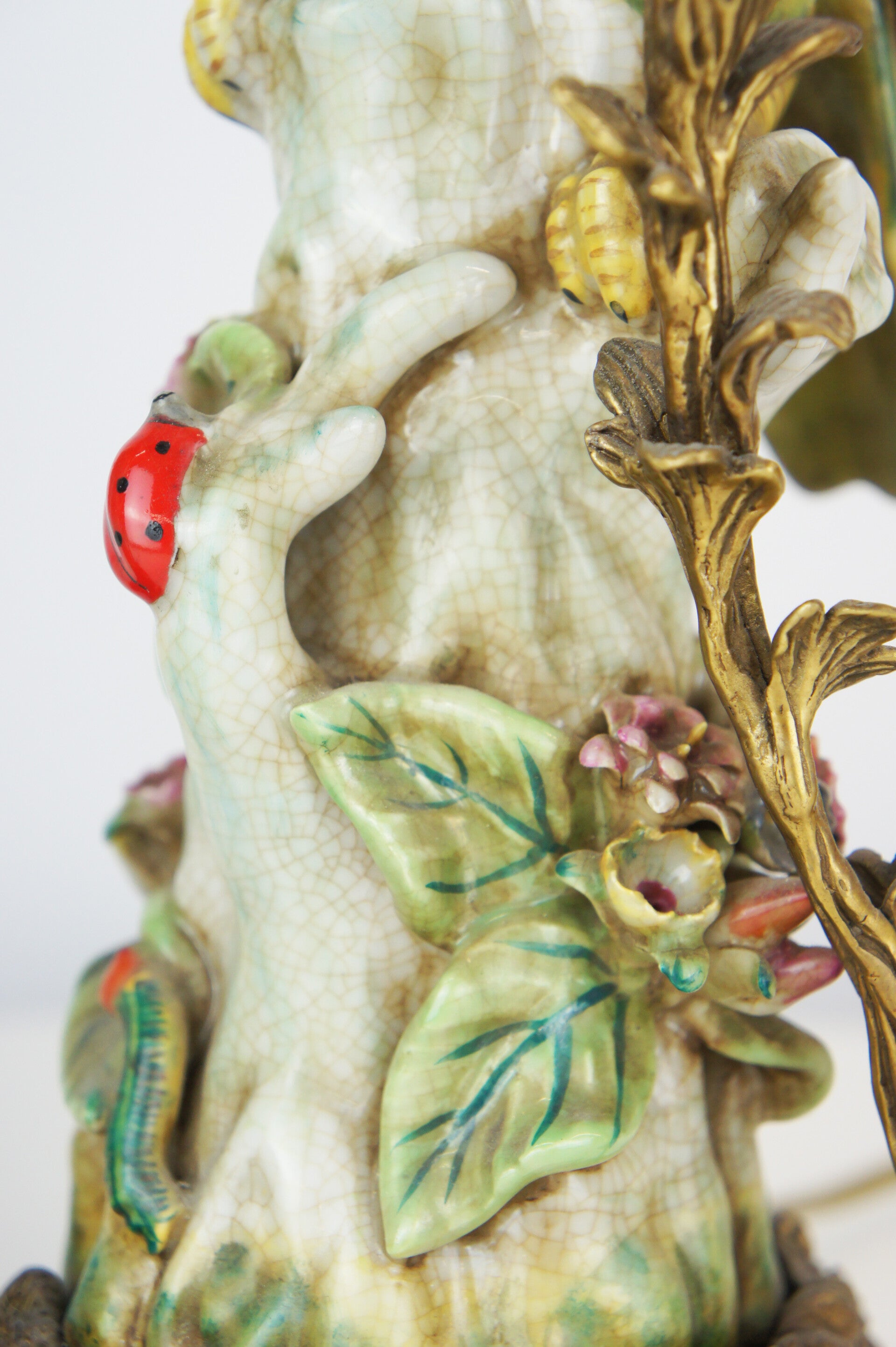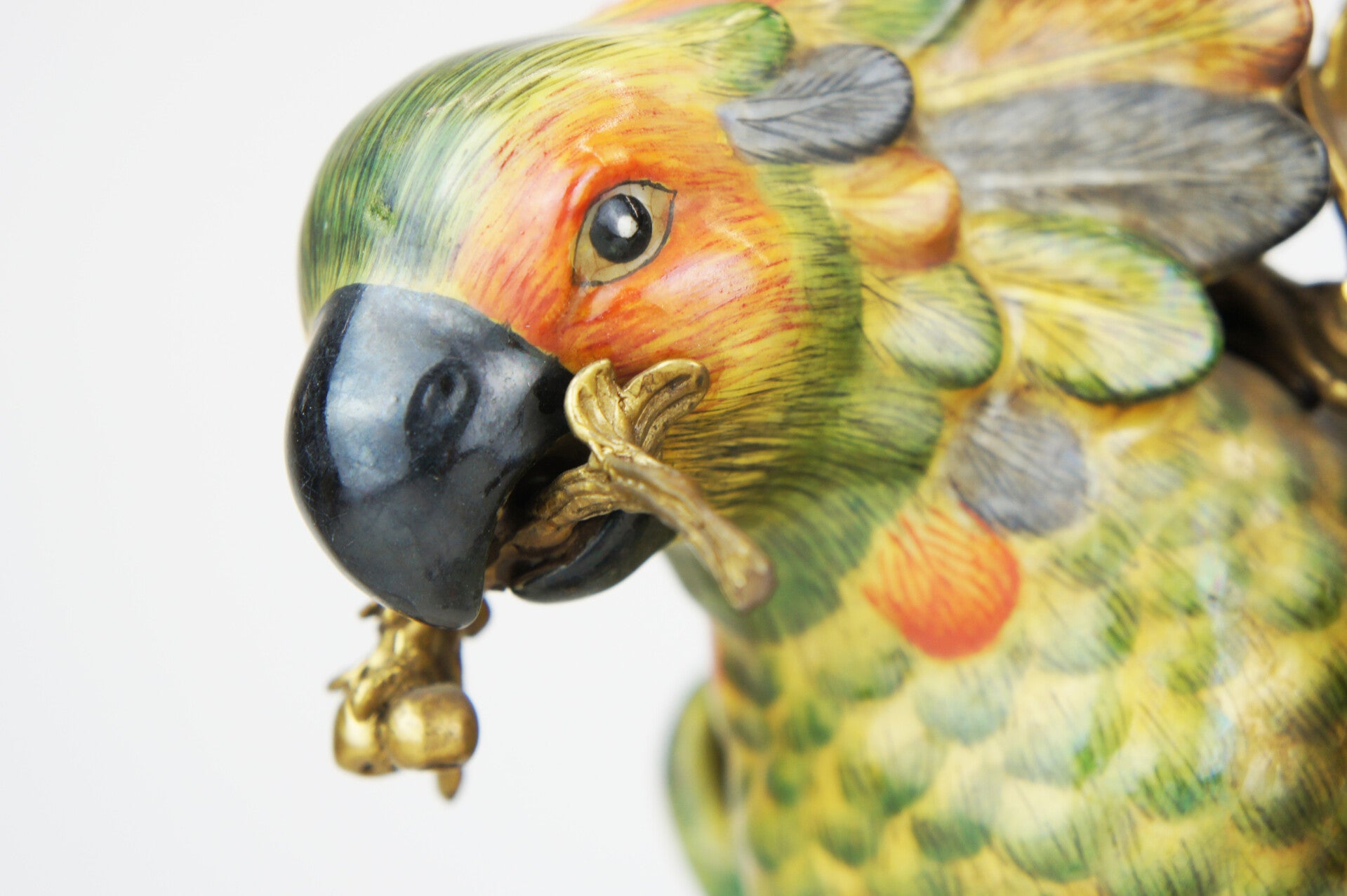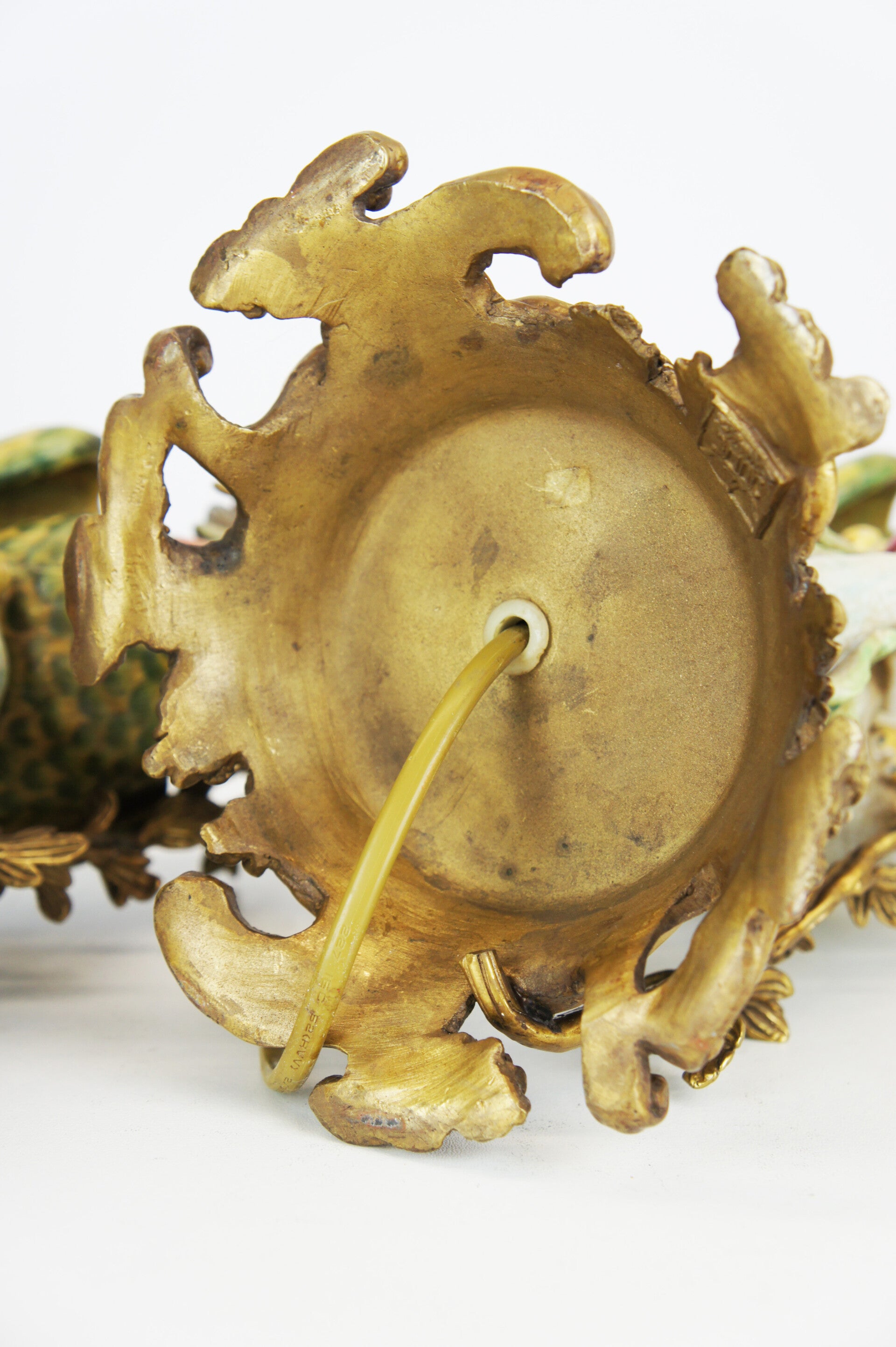 Beautiful pair of colorful cockatoe table lamps in porcelain mounted on a bronze base in rococo style.