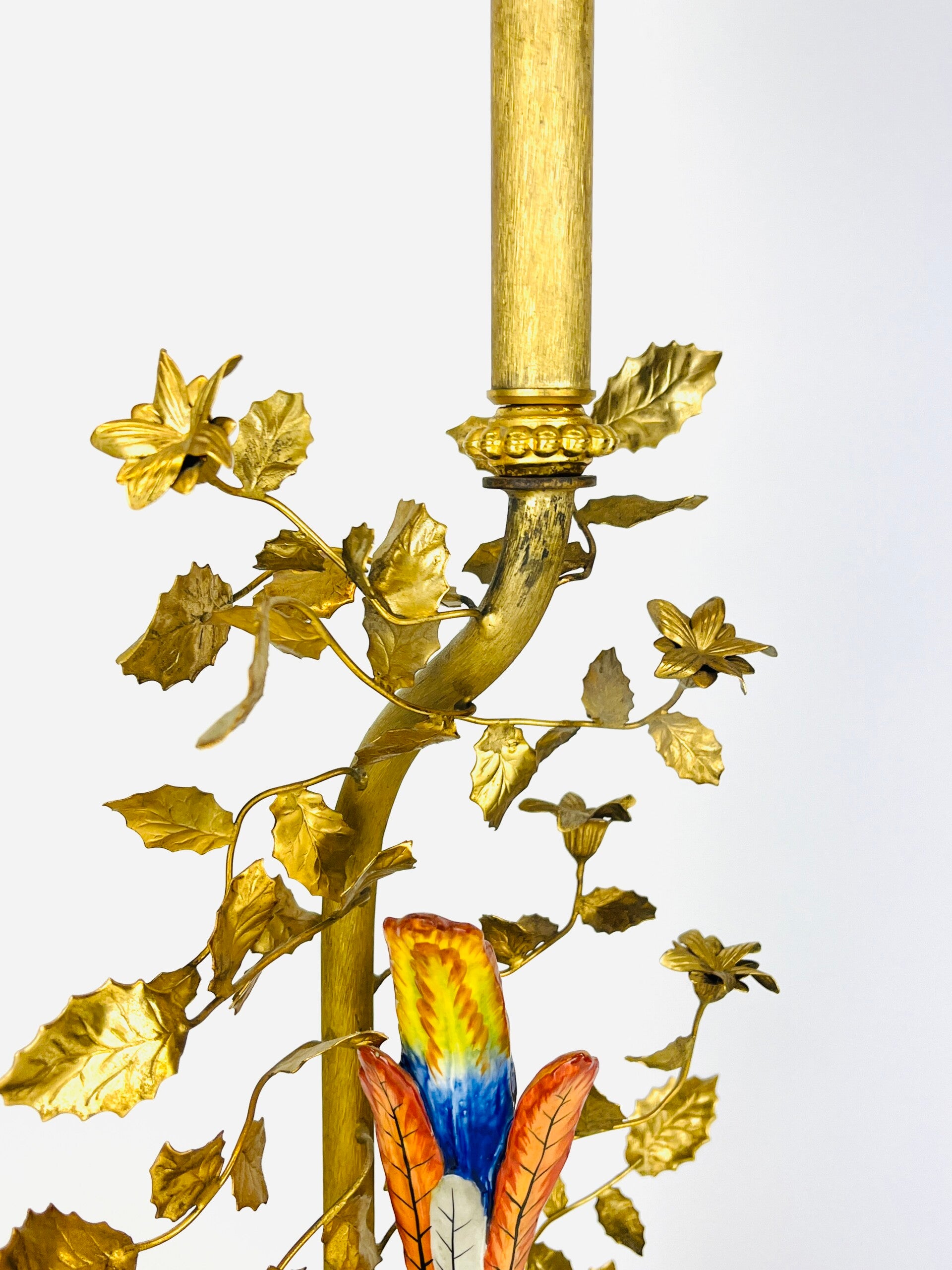 The porcelain bird is mounted on a vergus brass base, with gilded leaves in the background that fill the whole nicely.