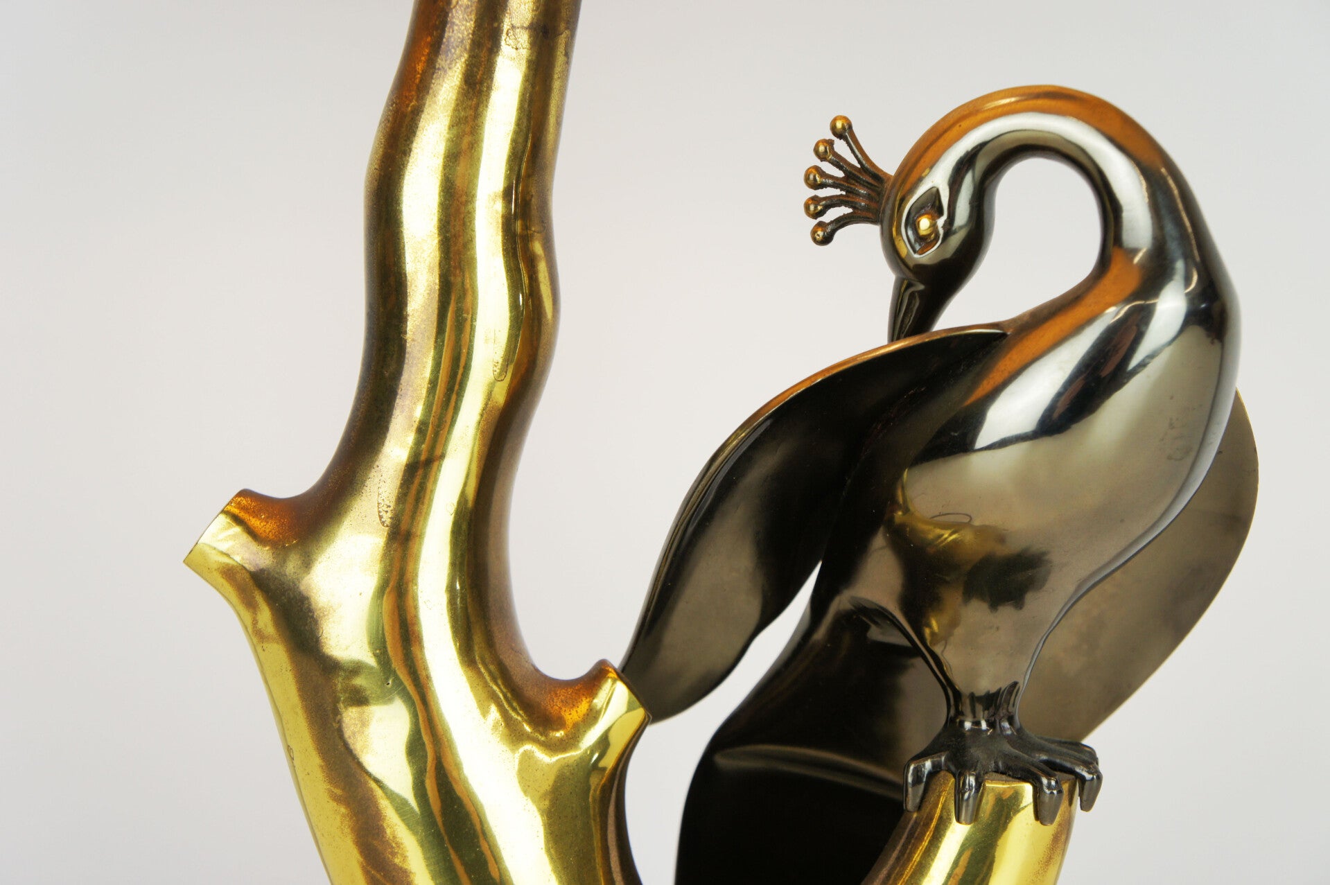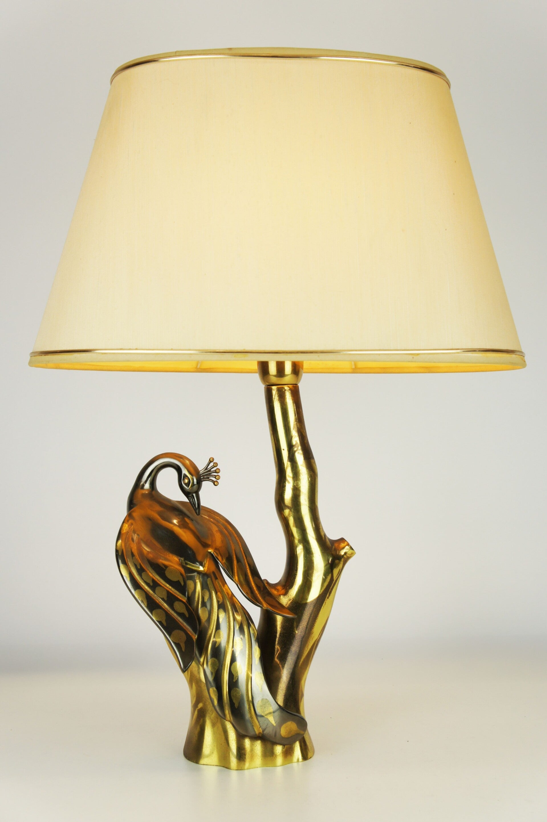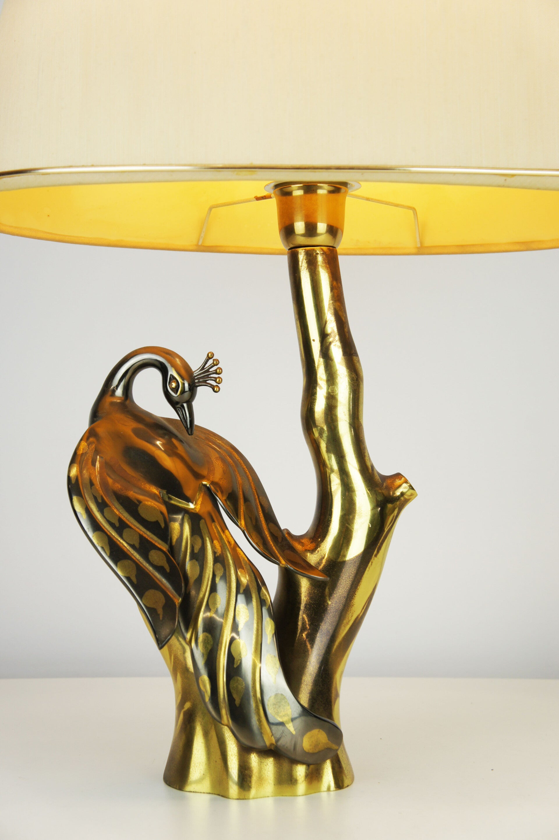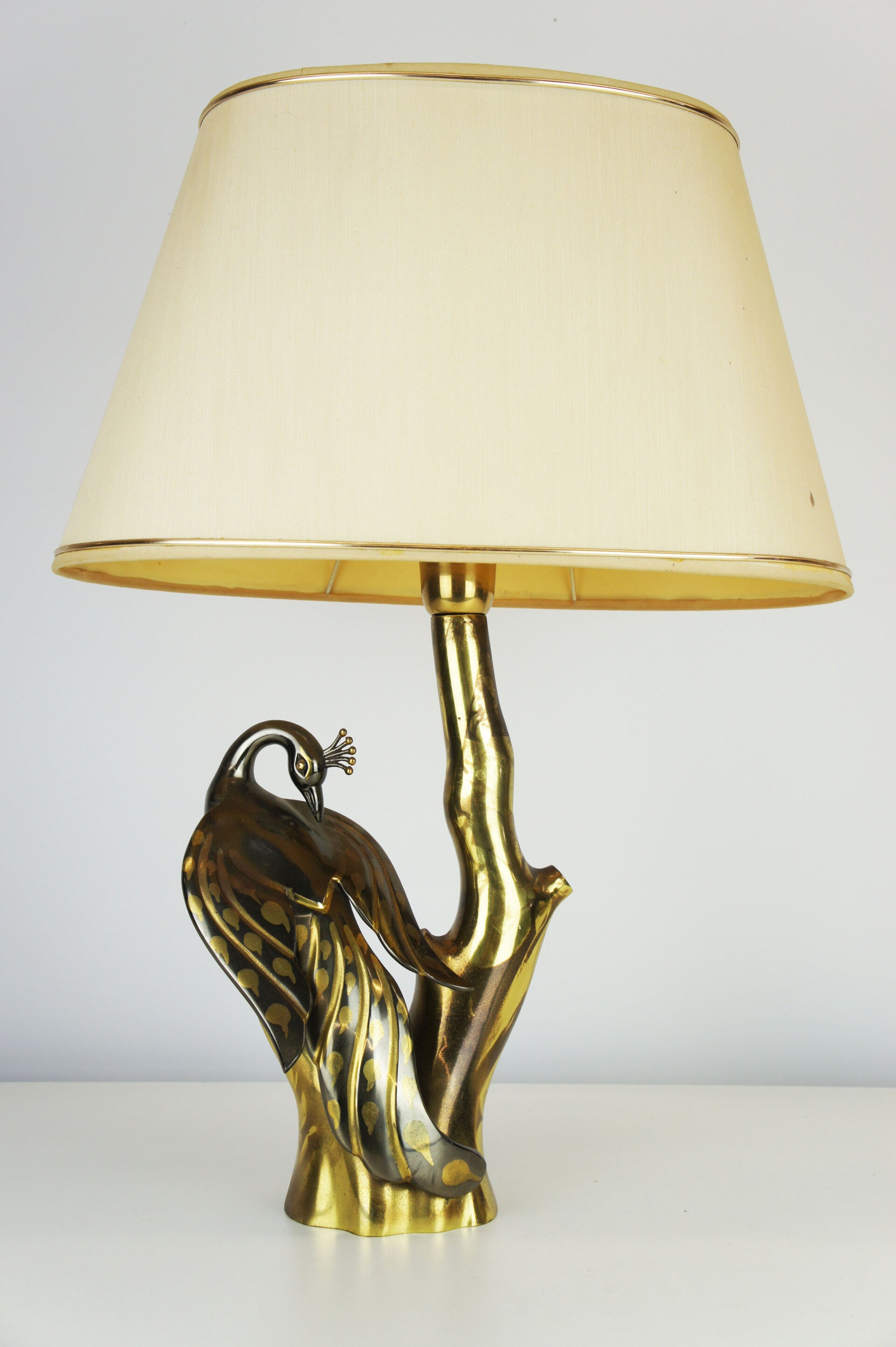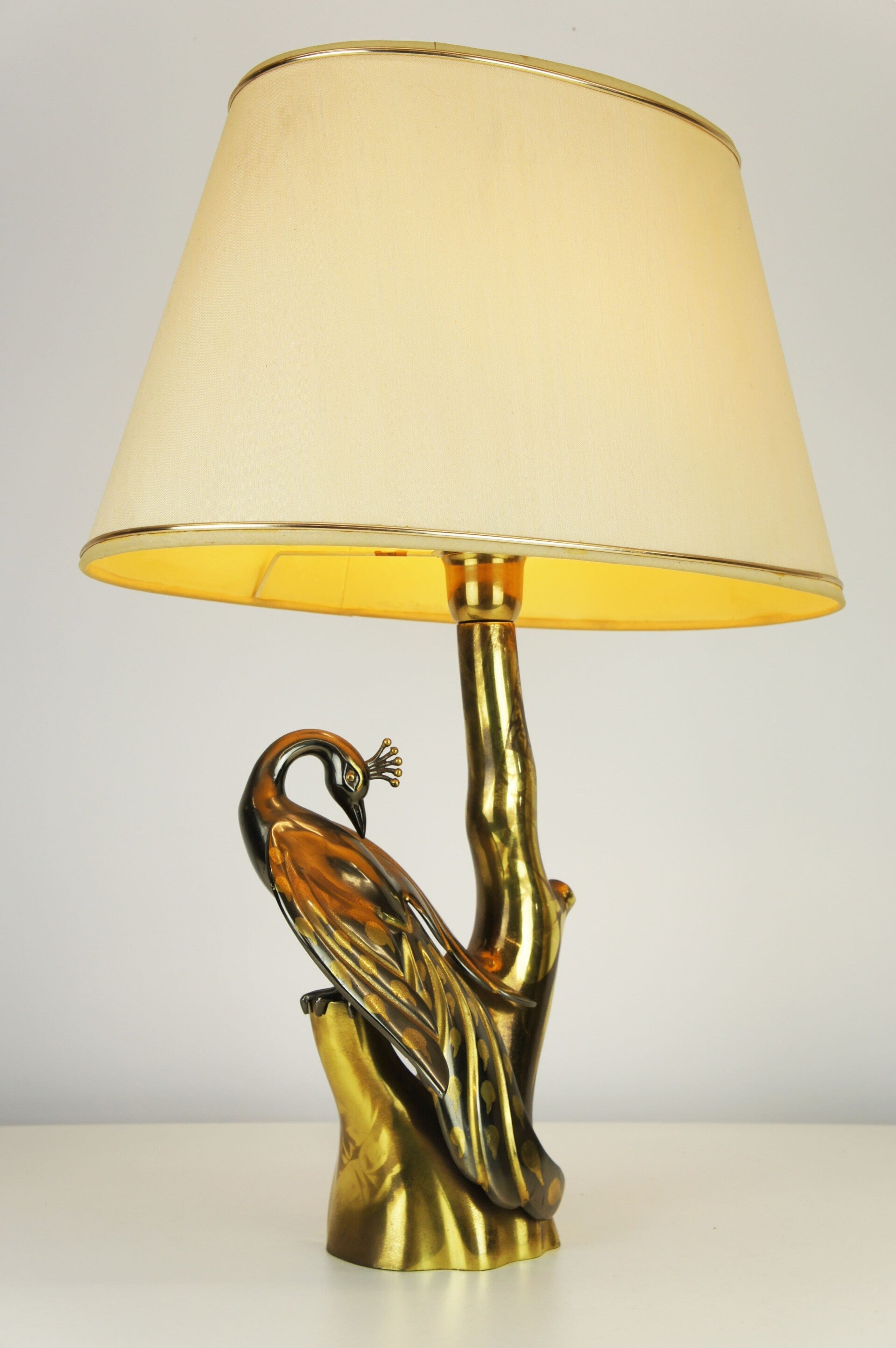 Elegant peacock table lamp in bronze, made in the 70s, in the style of the famous designer Willy Daro.