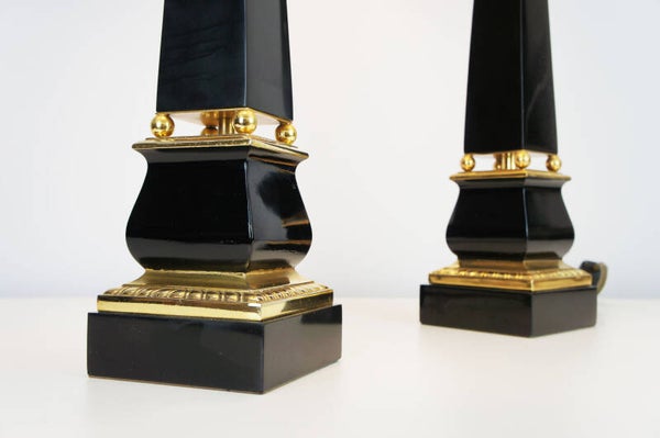 Deknudt - Impressive Castle Table Lamps - Black Marble Obelisks - 70s