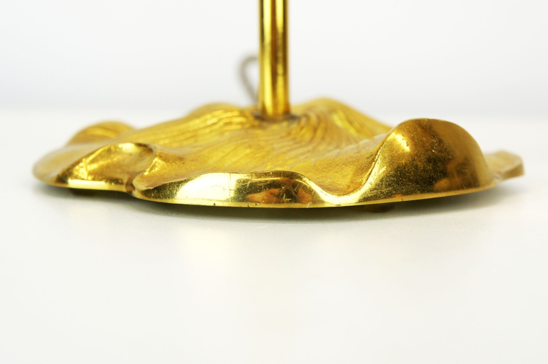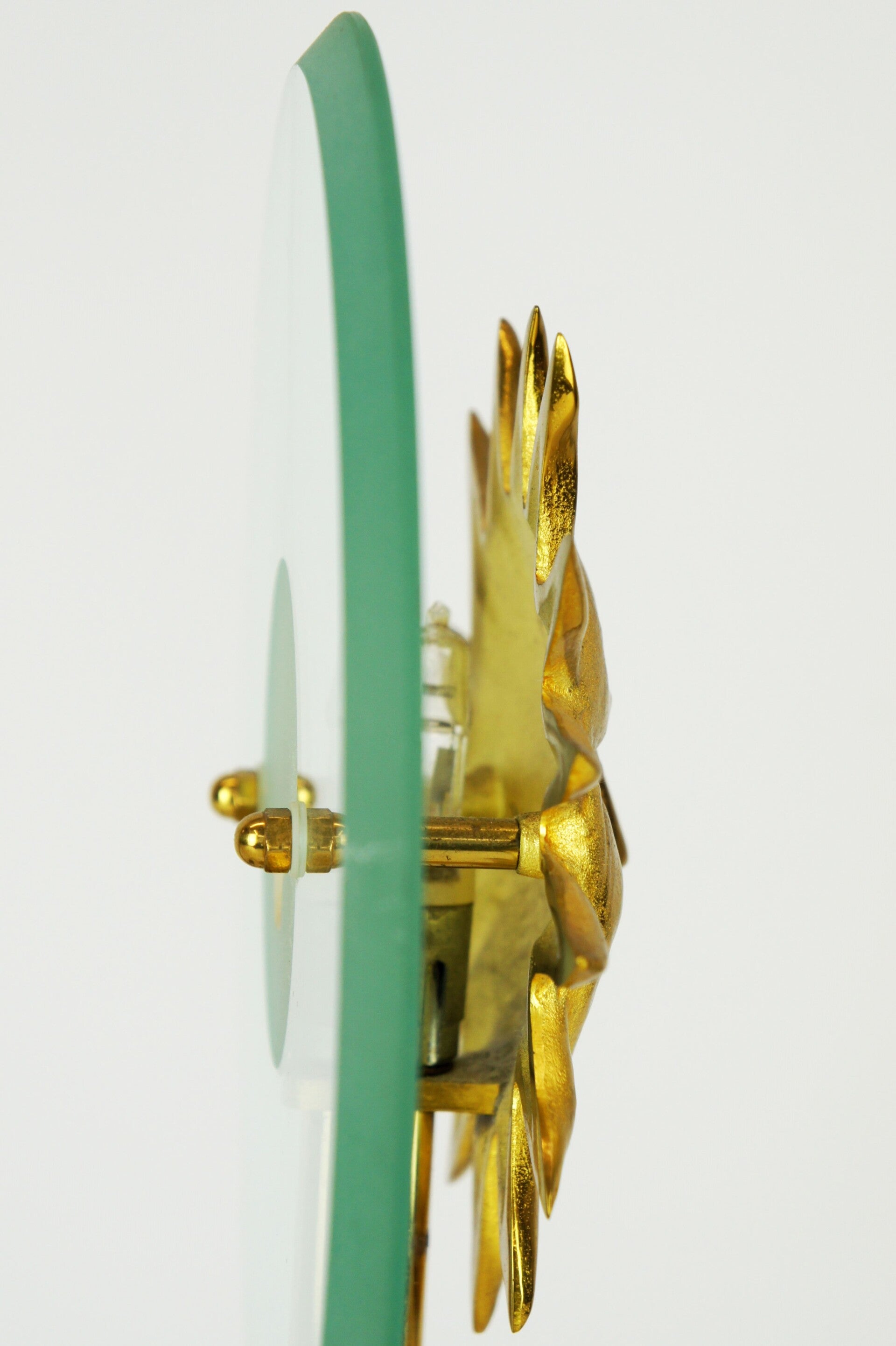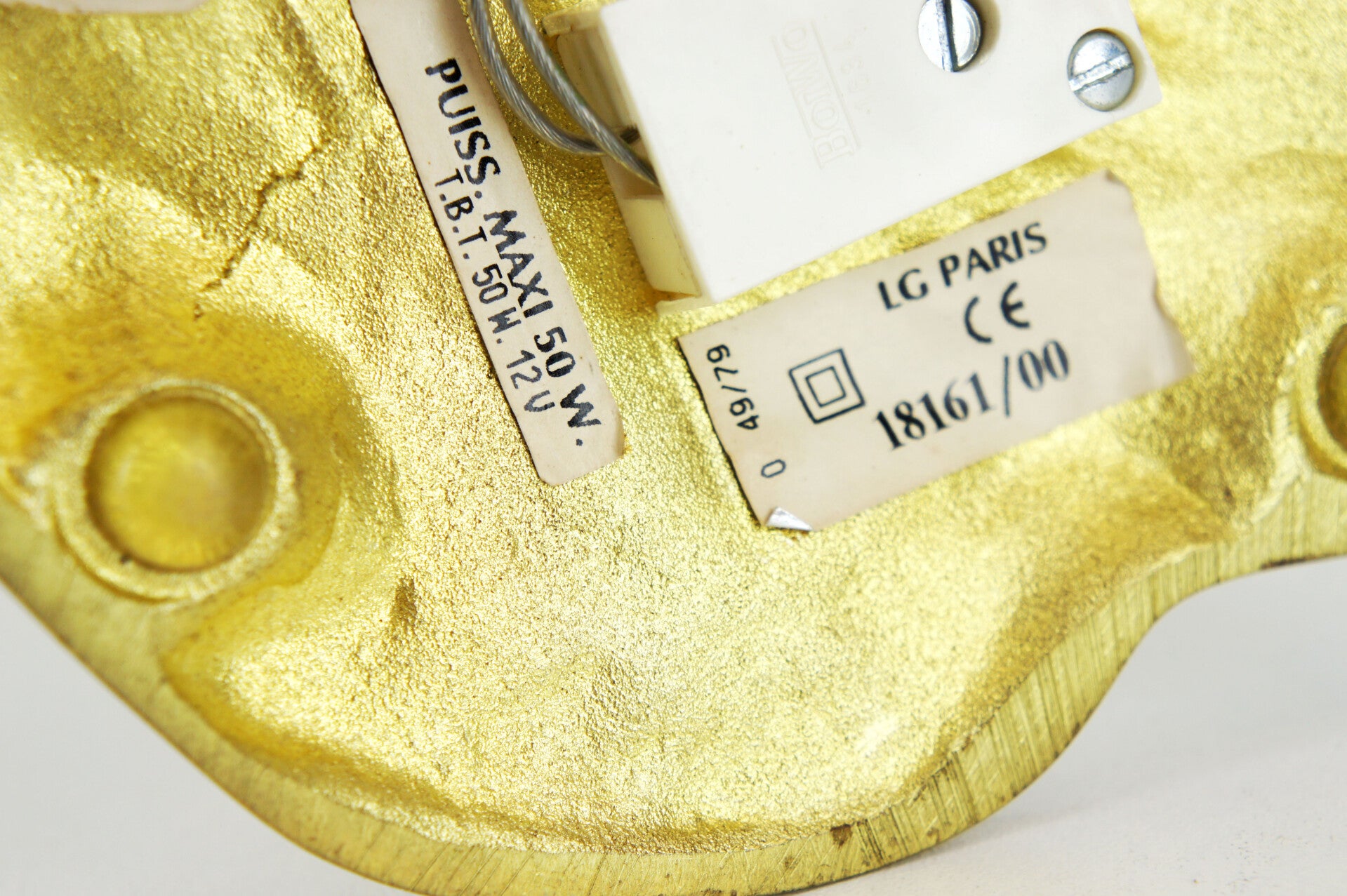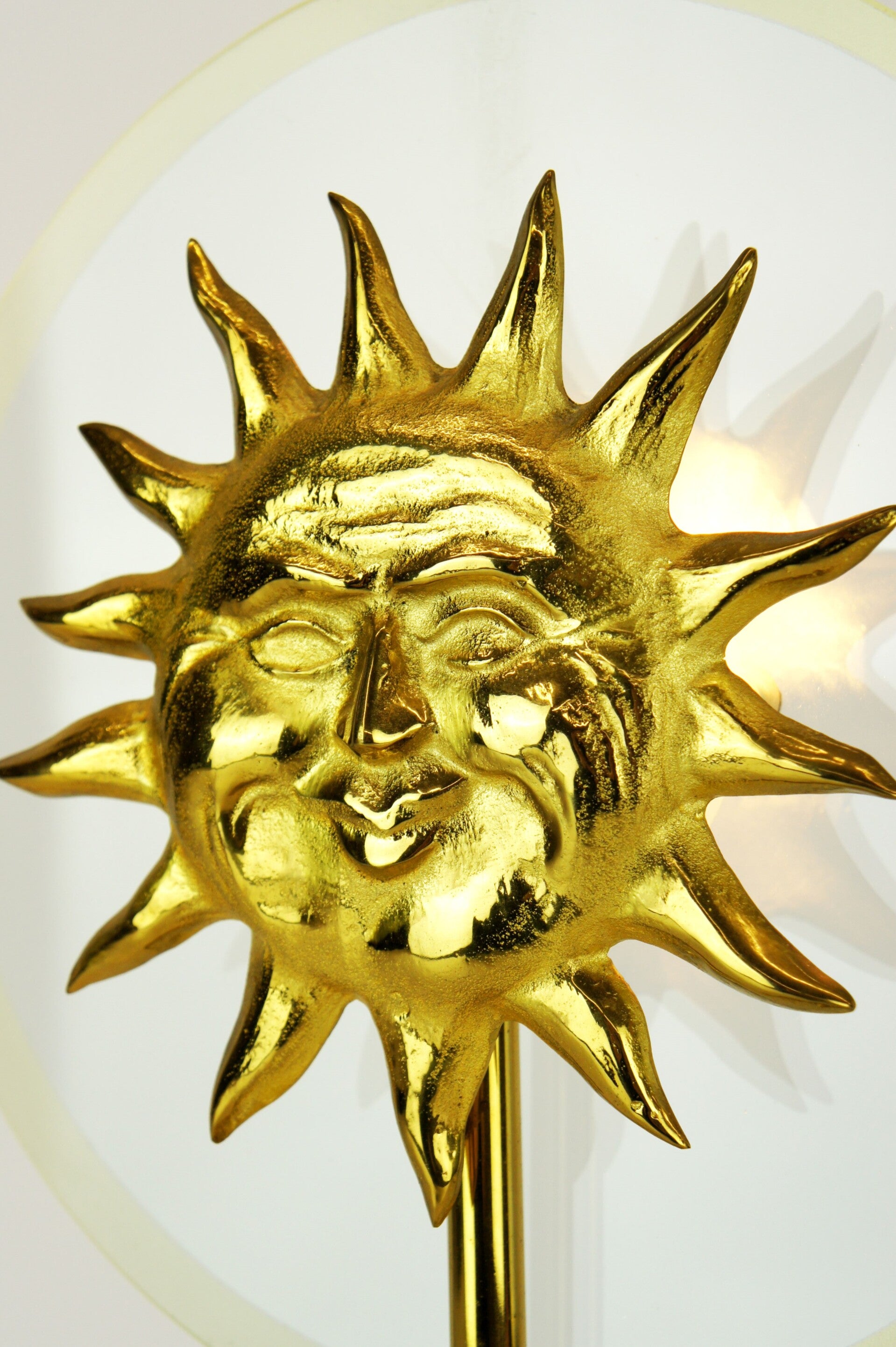 Beautifully elegant gold-plated table lamp by Maison Lucien Gau, Paris. The sun is mounted in front of a glass disc with a satin edge.