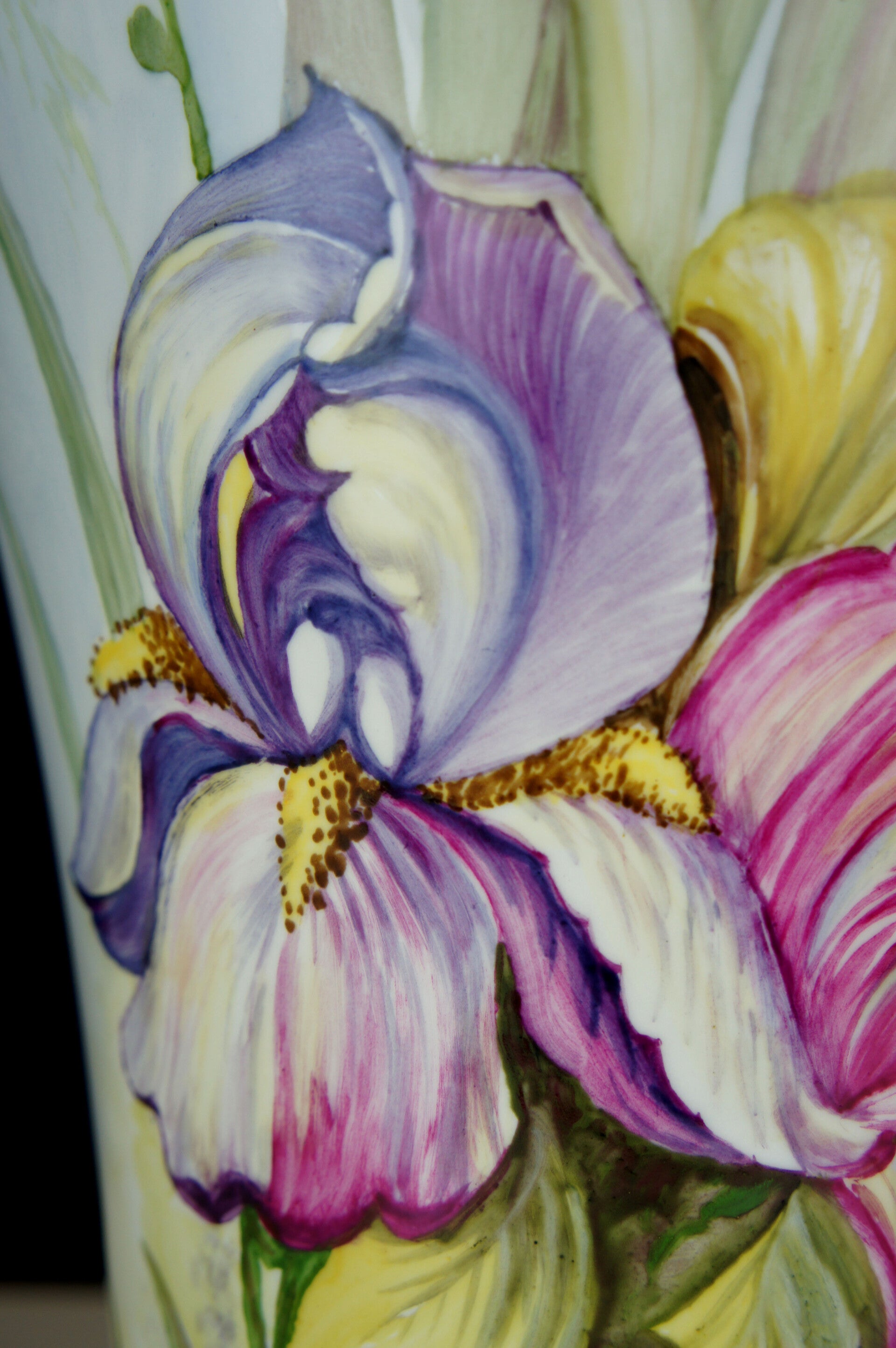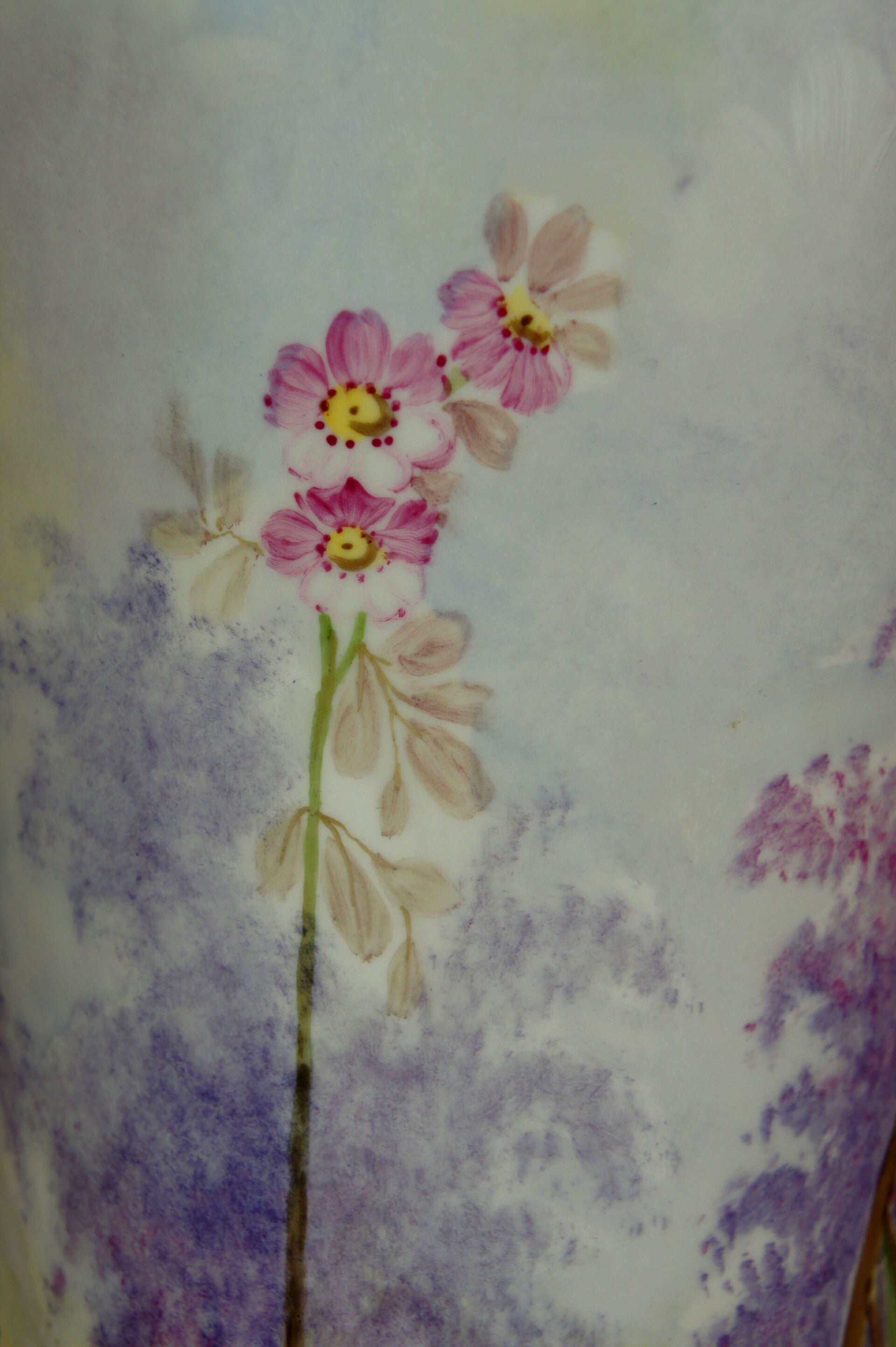 A rare hand-painted model by the Italian Giulia Mangani, hand-painted models from the later period are rather rare. A beautiful and colorful pattern with daffodils and meadow plants and flowers.