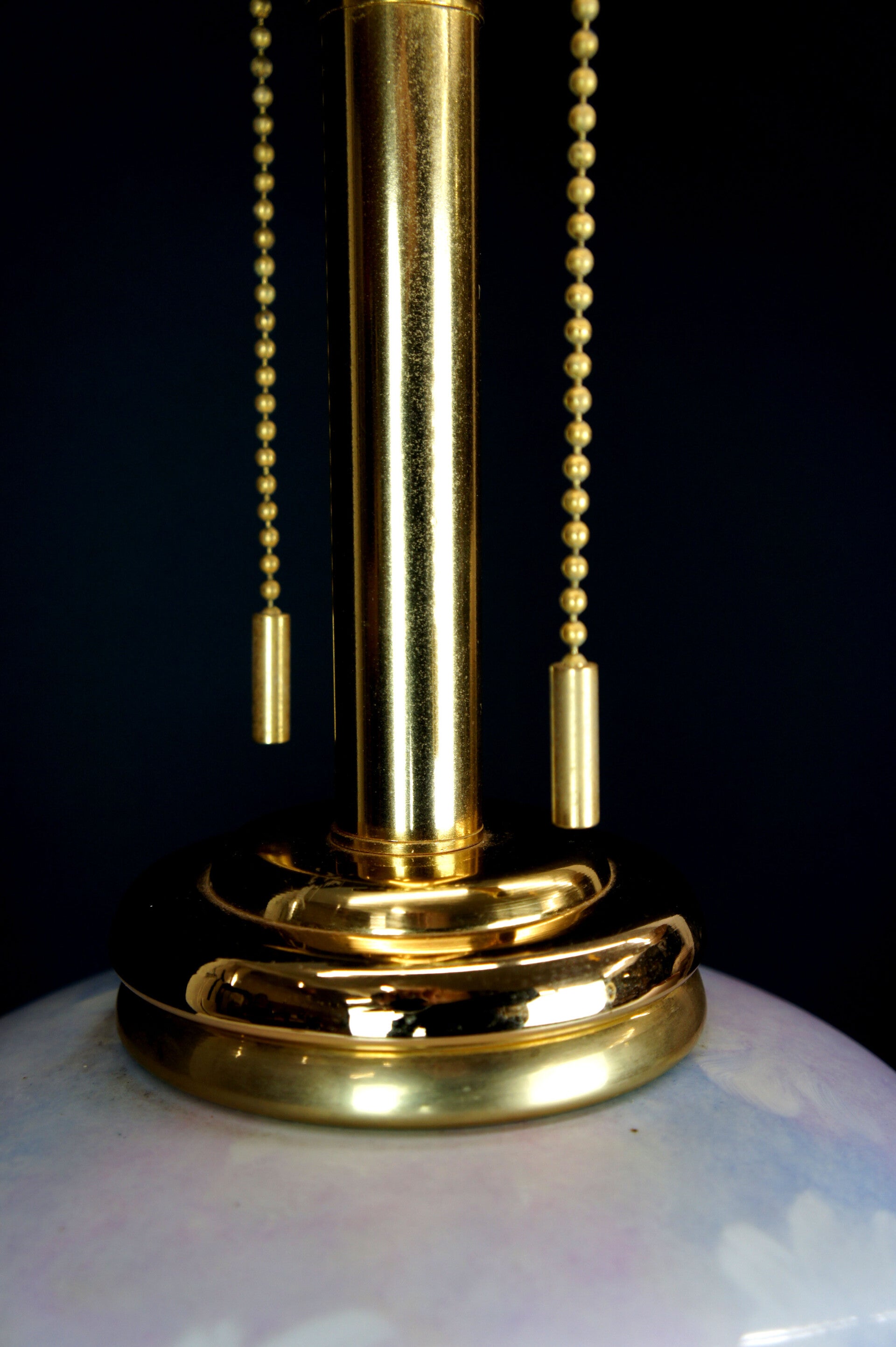The base of the lamp is in excellent condition, can be called new condition. The lampshade shows wear and age spots.