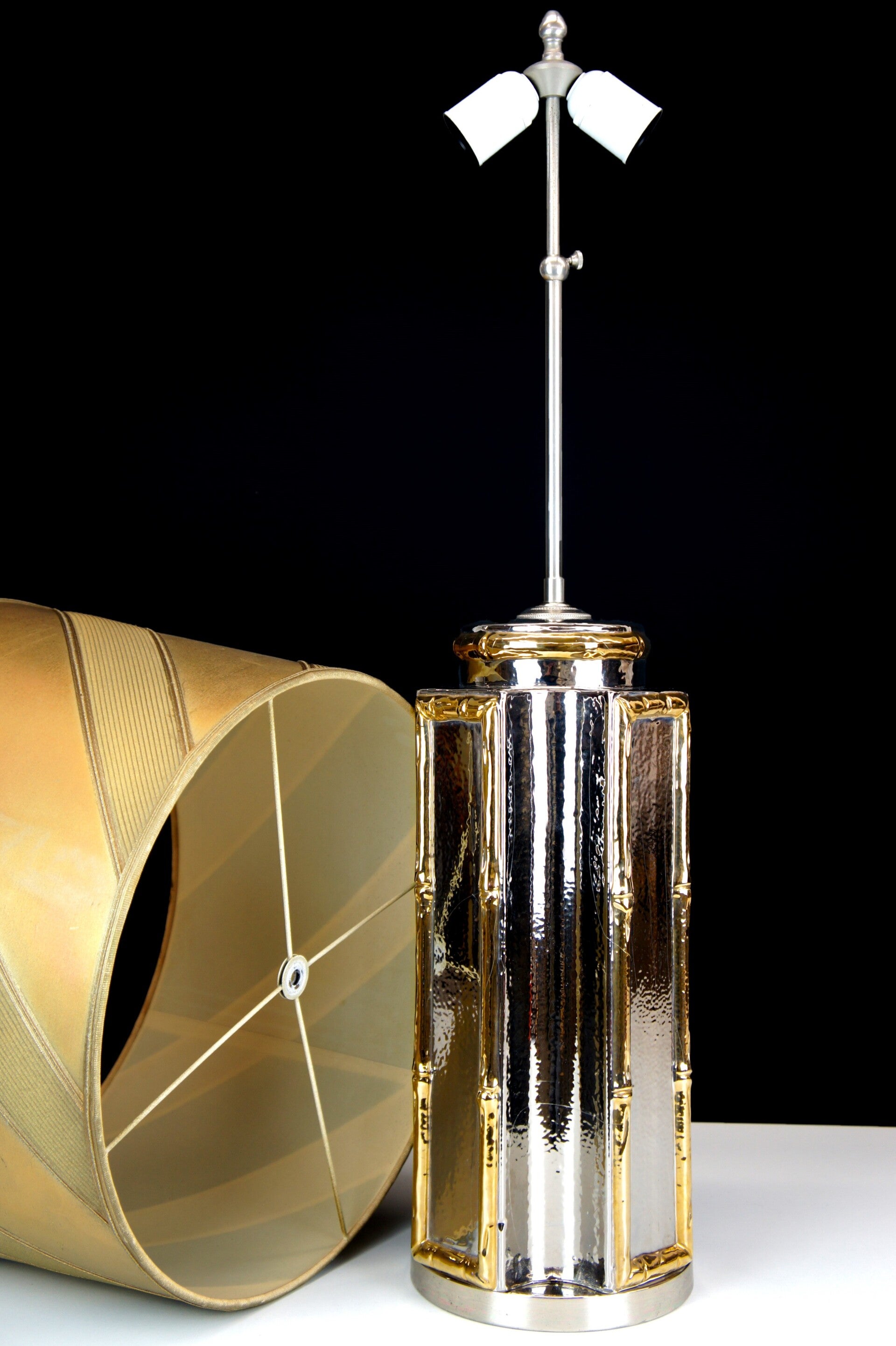 Italian Faux Bamboo Table Lamp in Mirror Glaze - 1960s