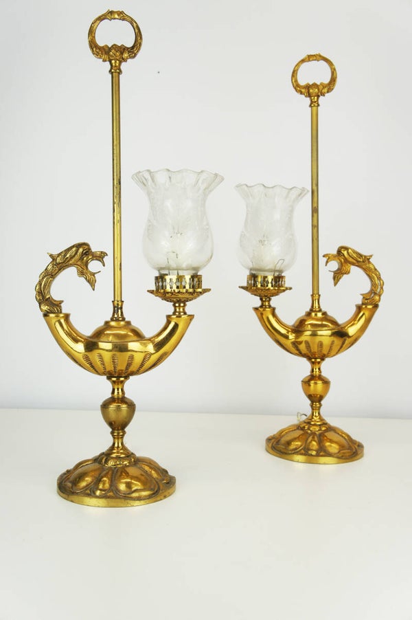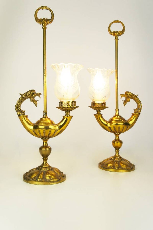 Spanish Pair of Solid Bronze Genie Table Lamps