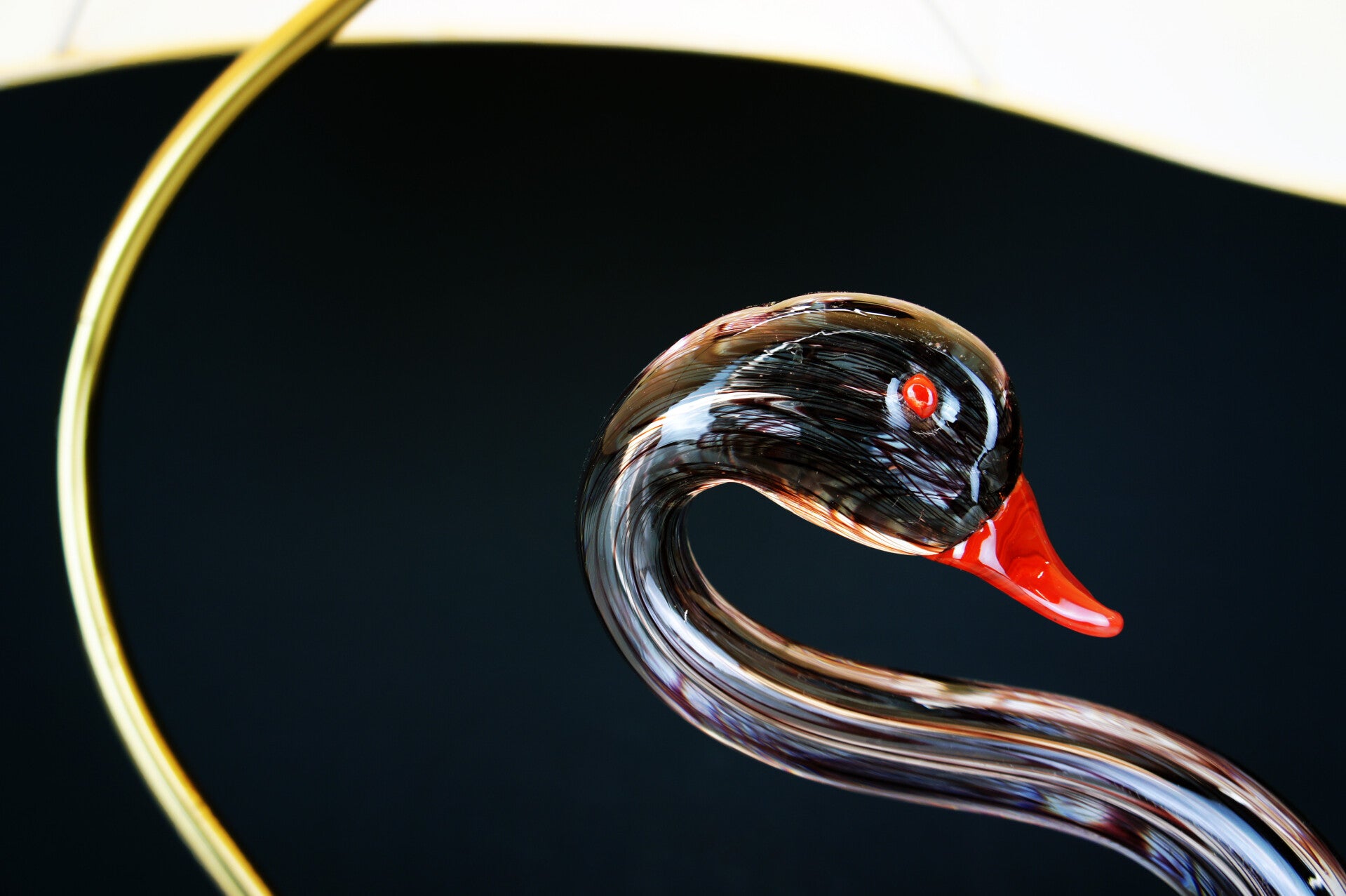 The swan is mounted on a black lacquered base.