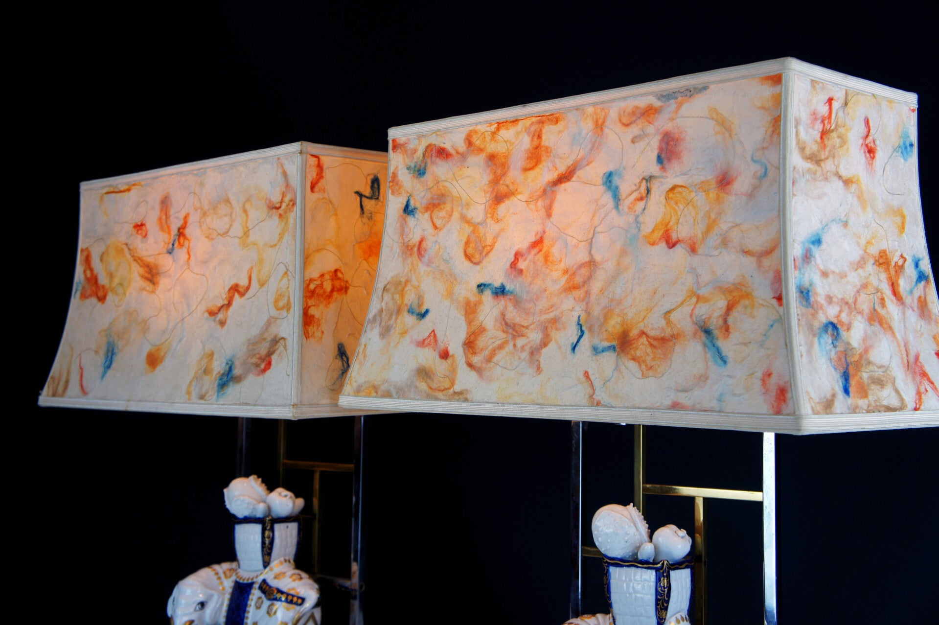The lamps come with very special lampshades, which contain gold thread. These are original lampshades by Mangani.