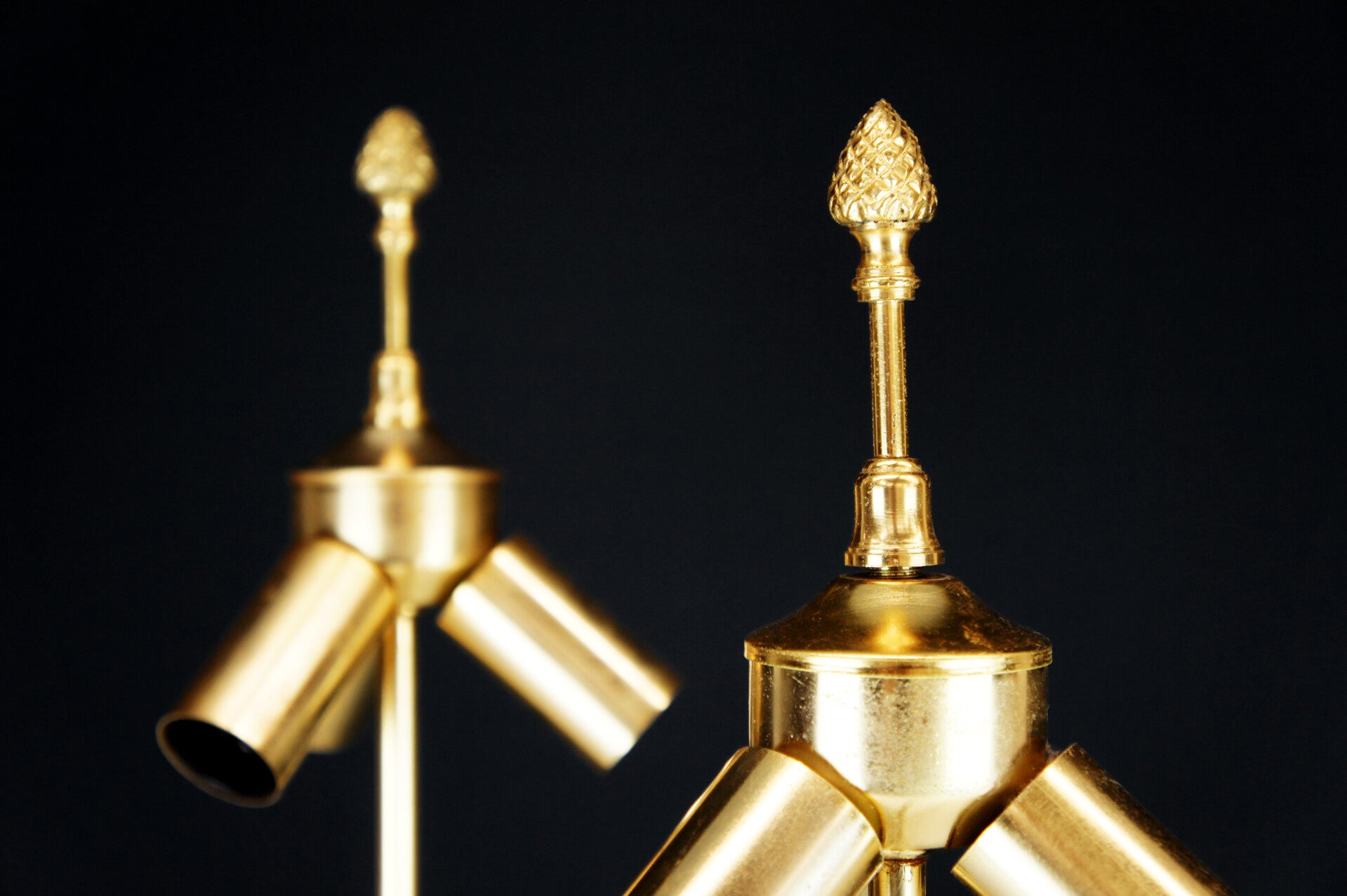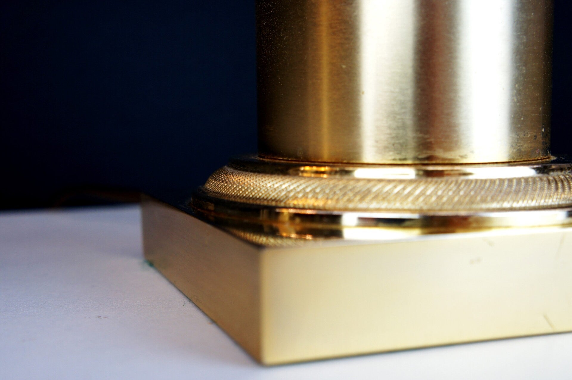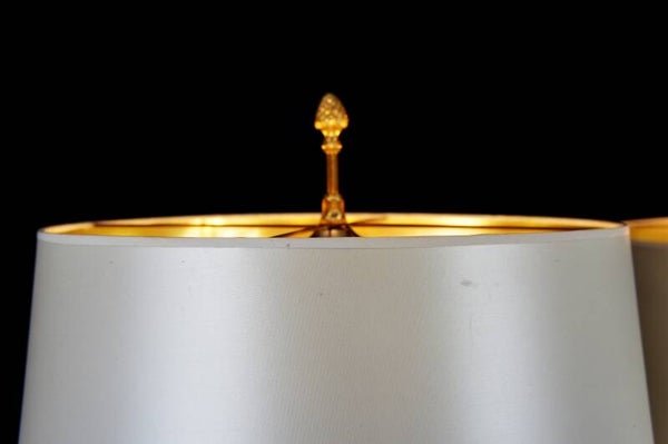 In good condition, with normal traces of age related to brass products. Comes with contemporary and original lampshades, these show light age spots.