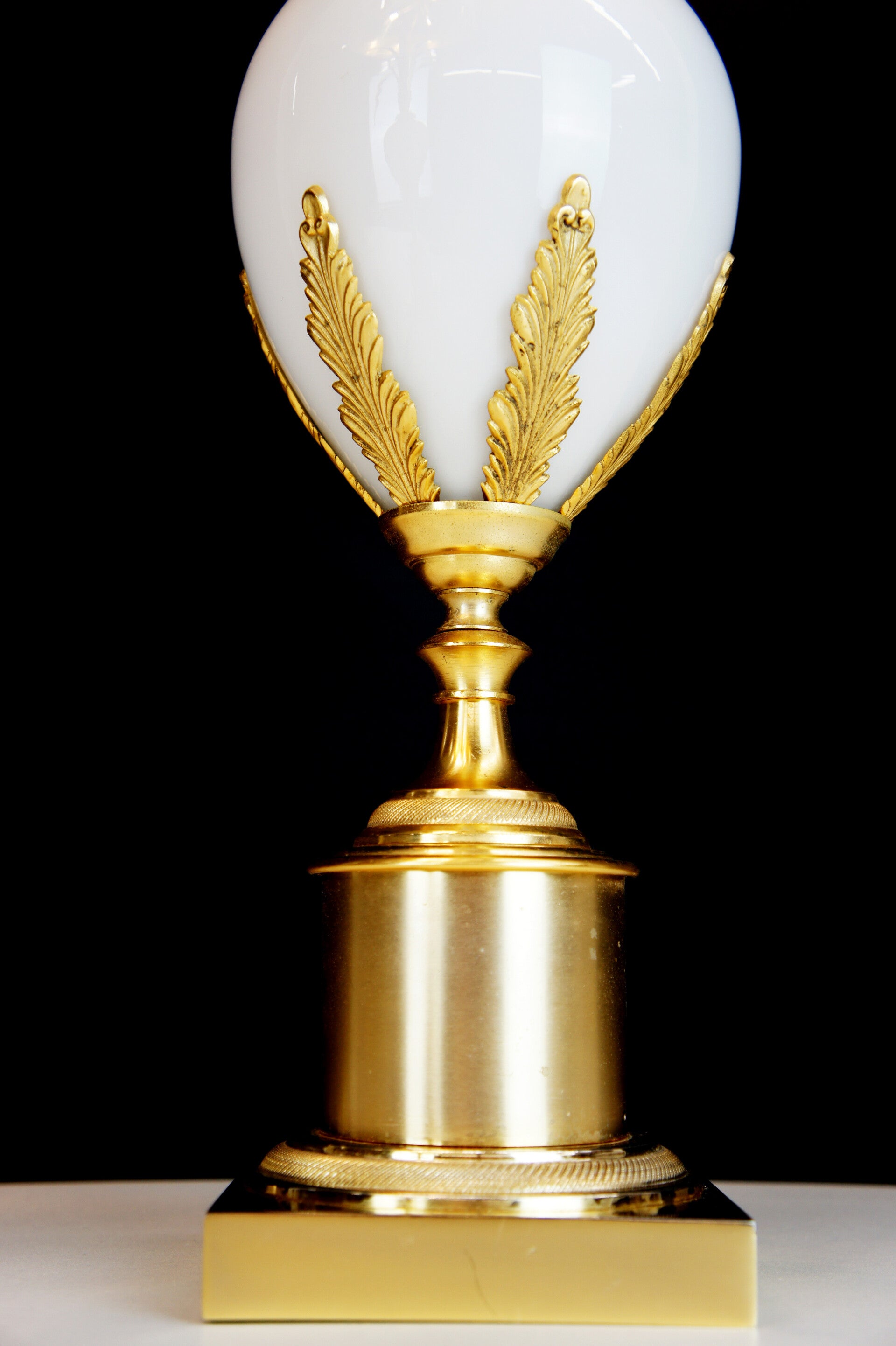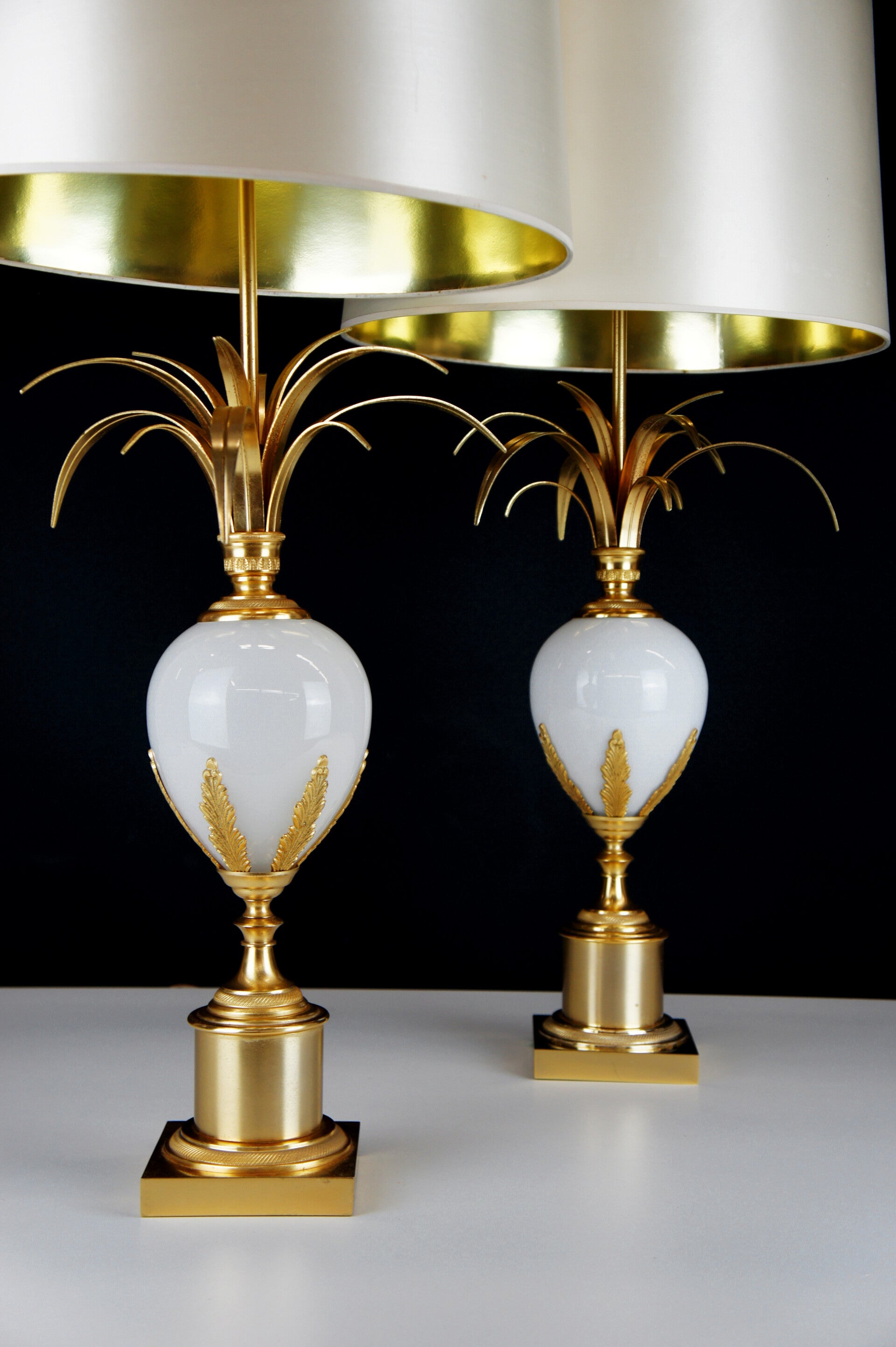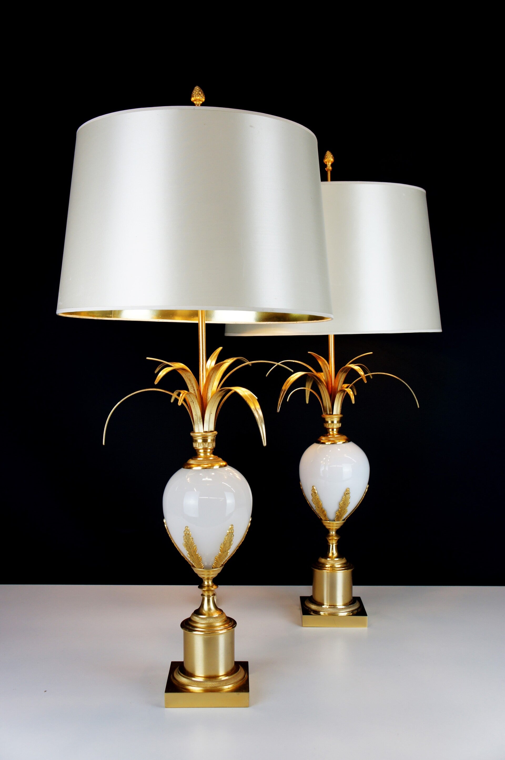 Boulanger - Pair of White Opal Ostrich Egg Table Lamps - 70 s