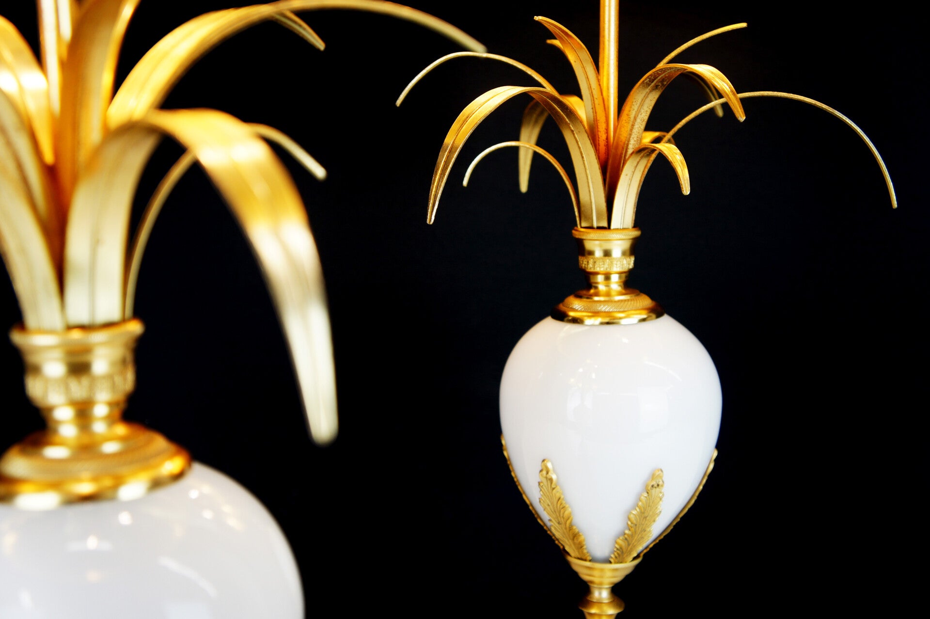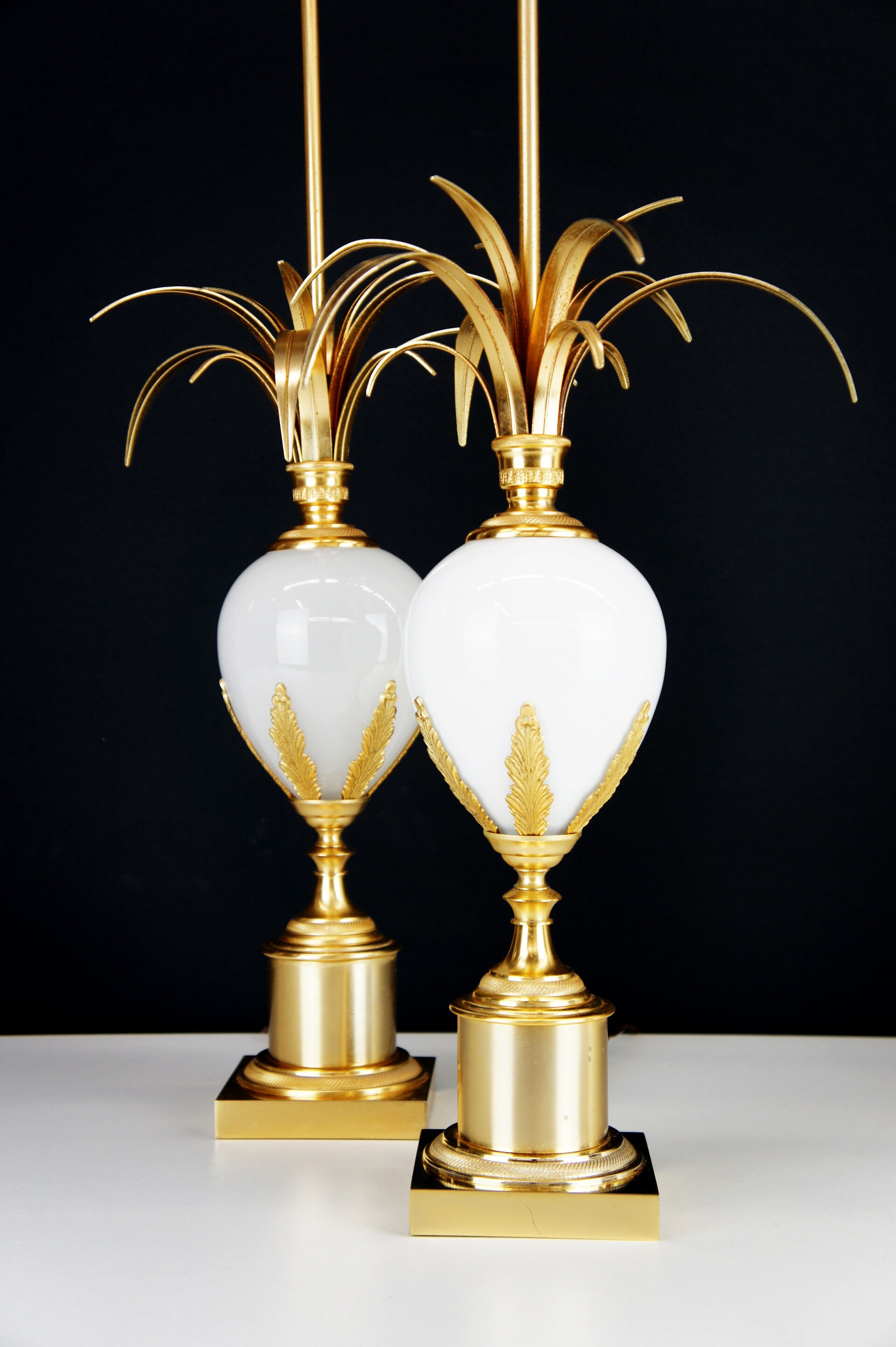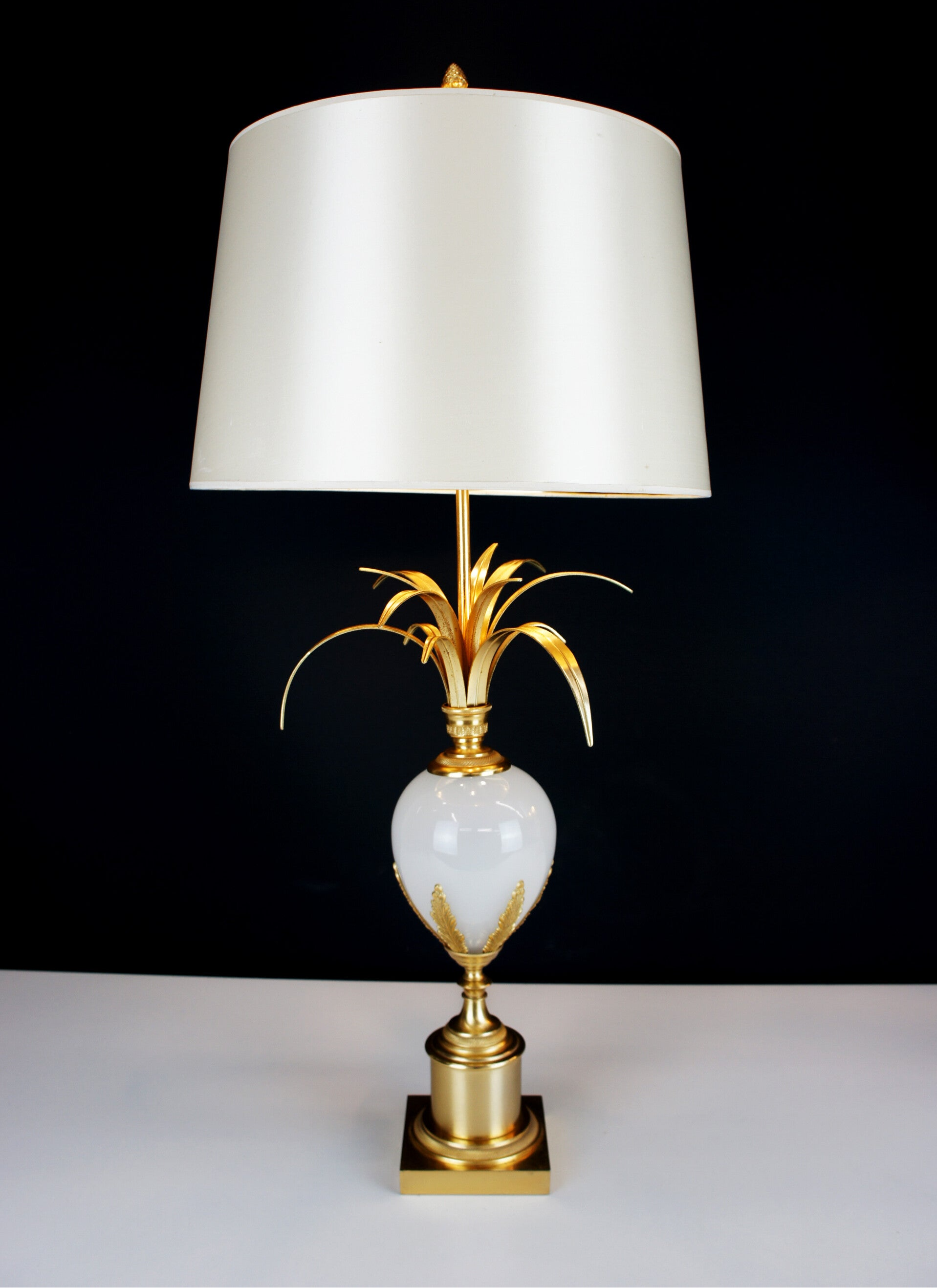 Boulanger - Pair of White Opal Ostrich Egg Table Lamps - 70 s