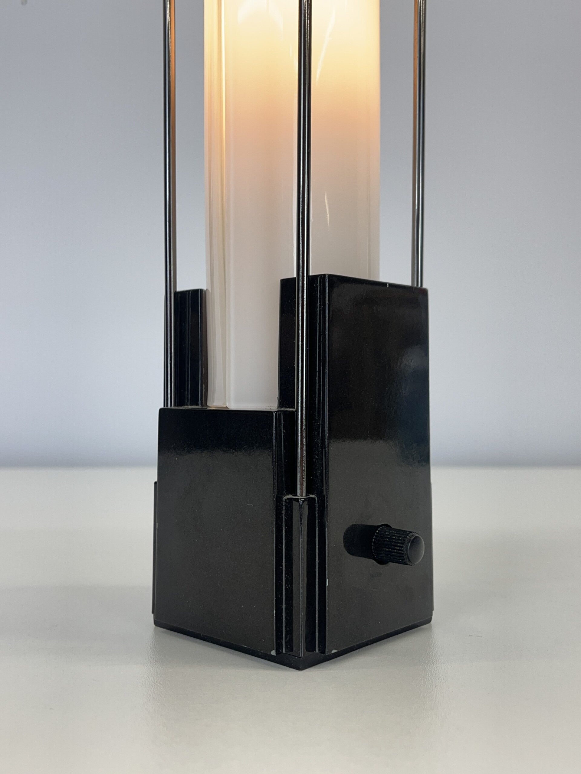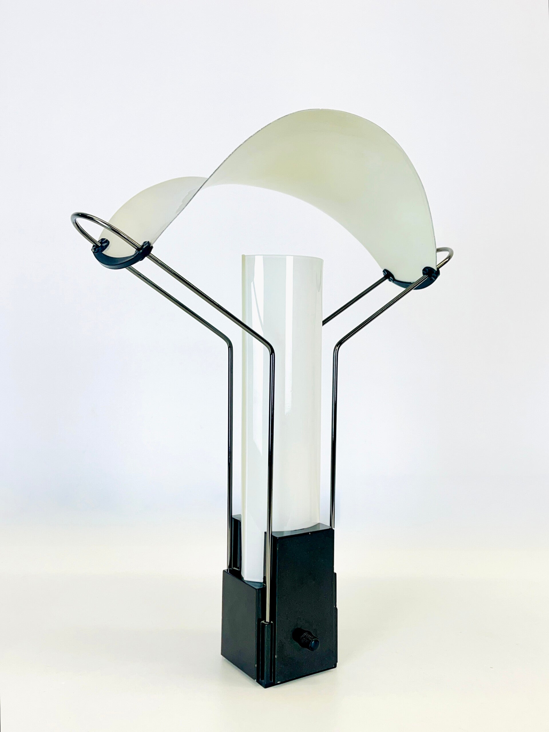 Postmodern table lamp from 1984 designed by Perry A. King & Santiago Miranda, produced by Arteluce under the type 'Palio'