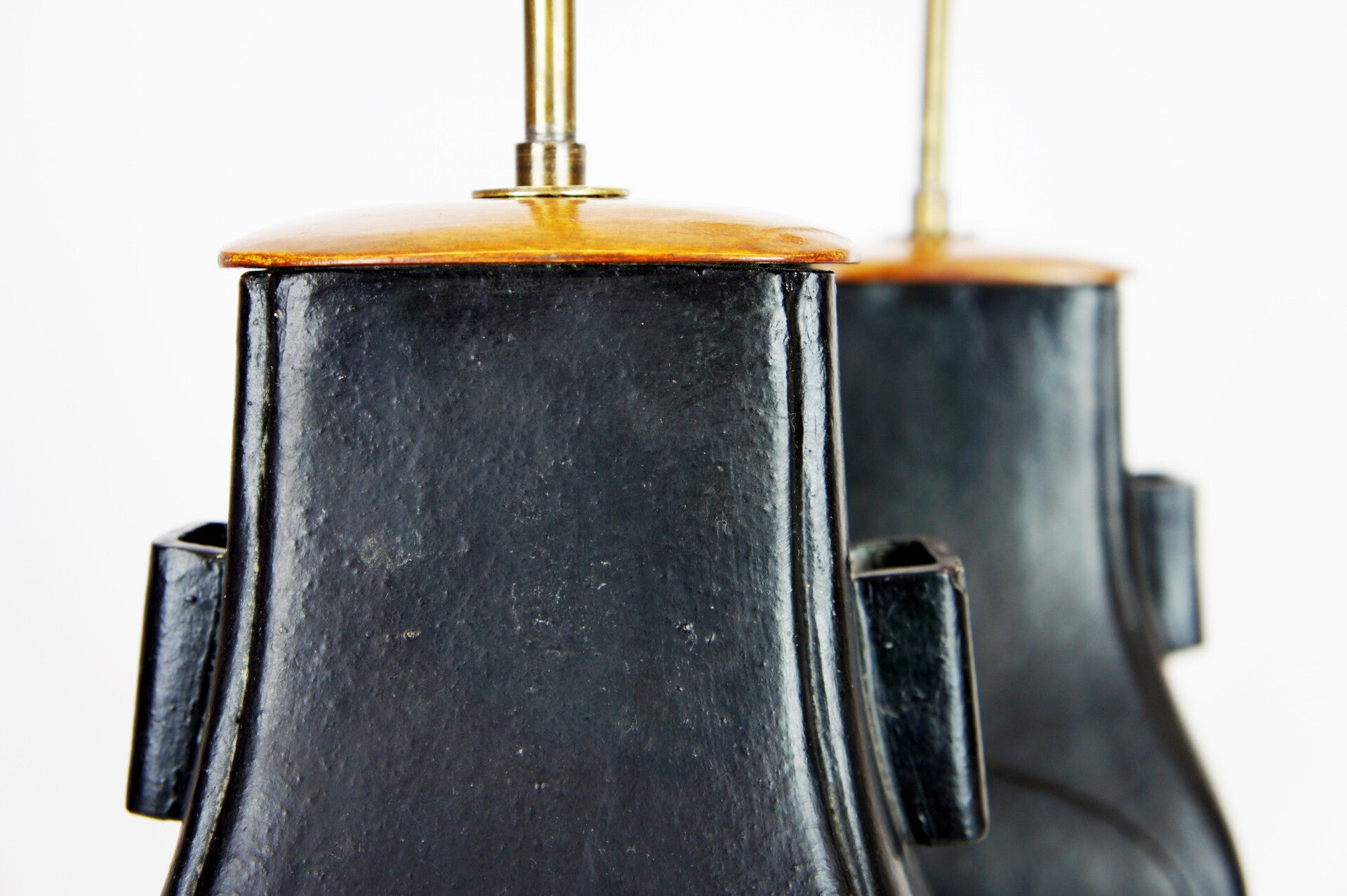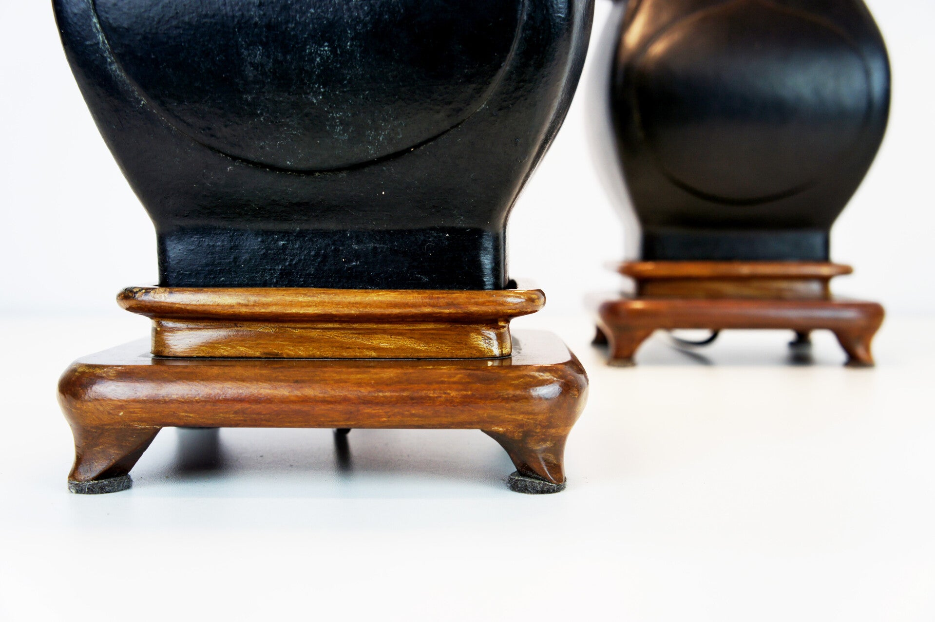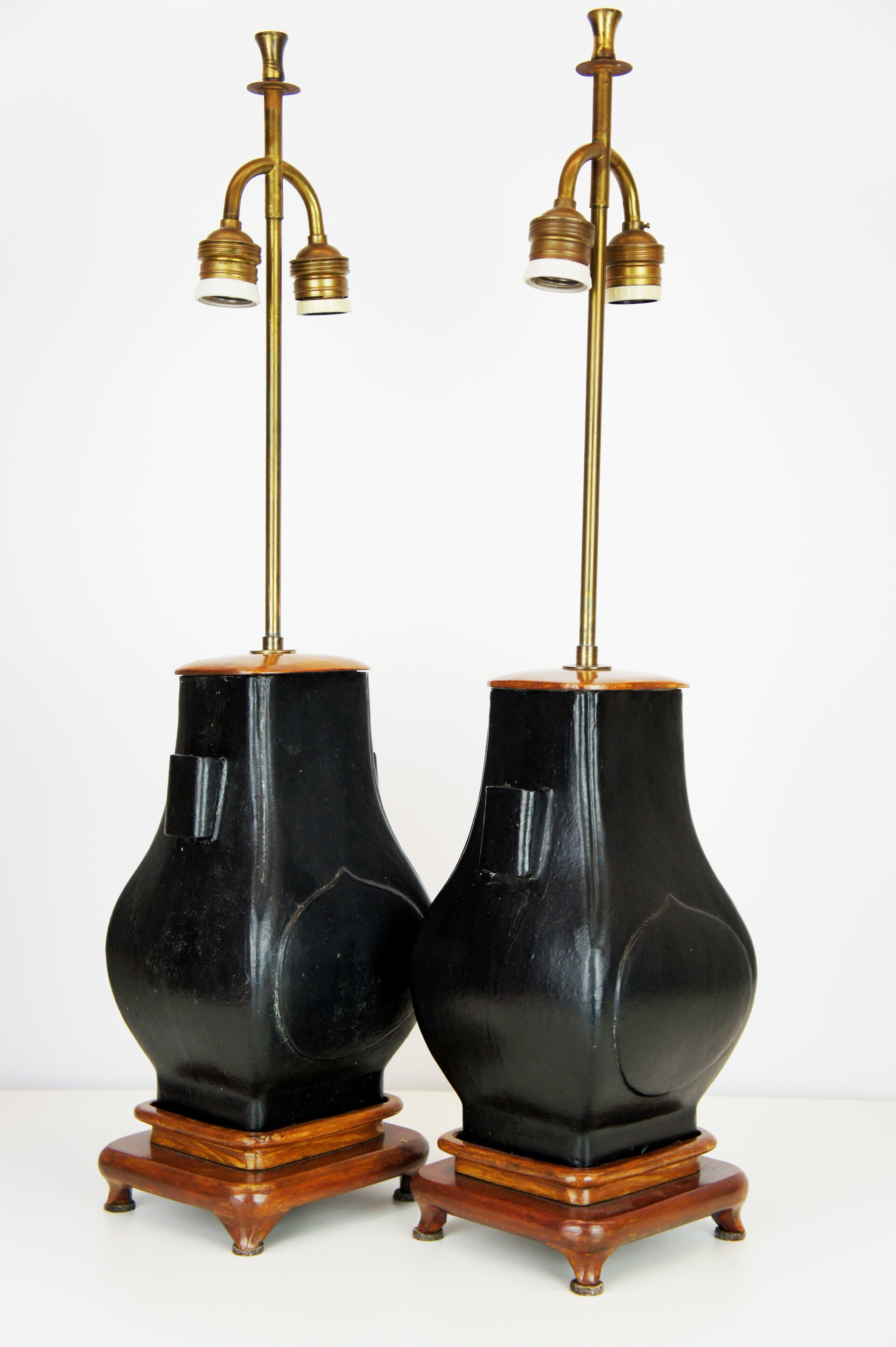 Pair of Black Ceramic Chinese Urn Shape Table Lamps