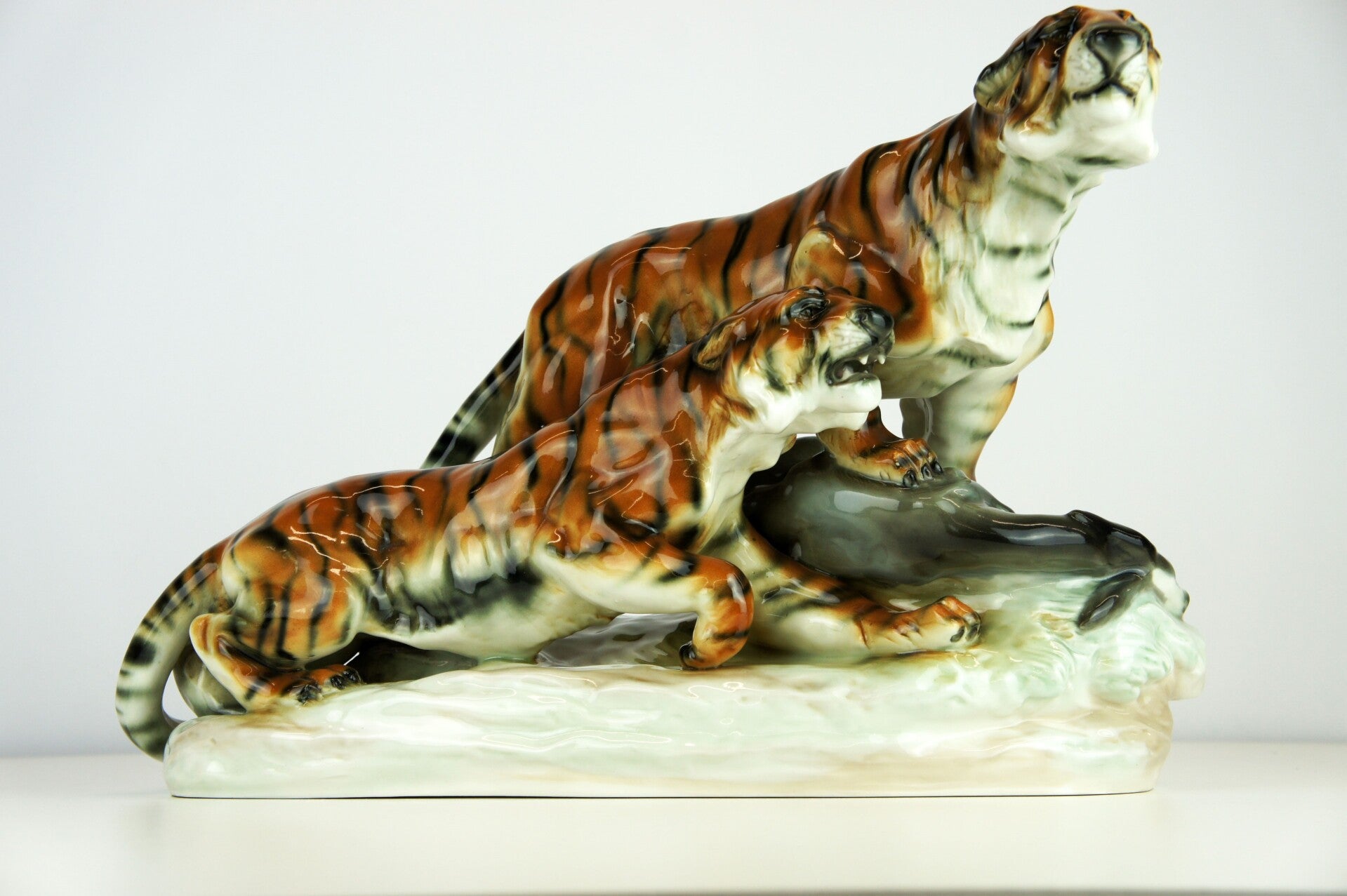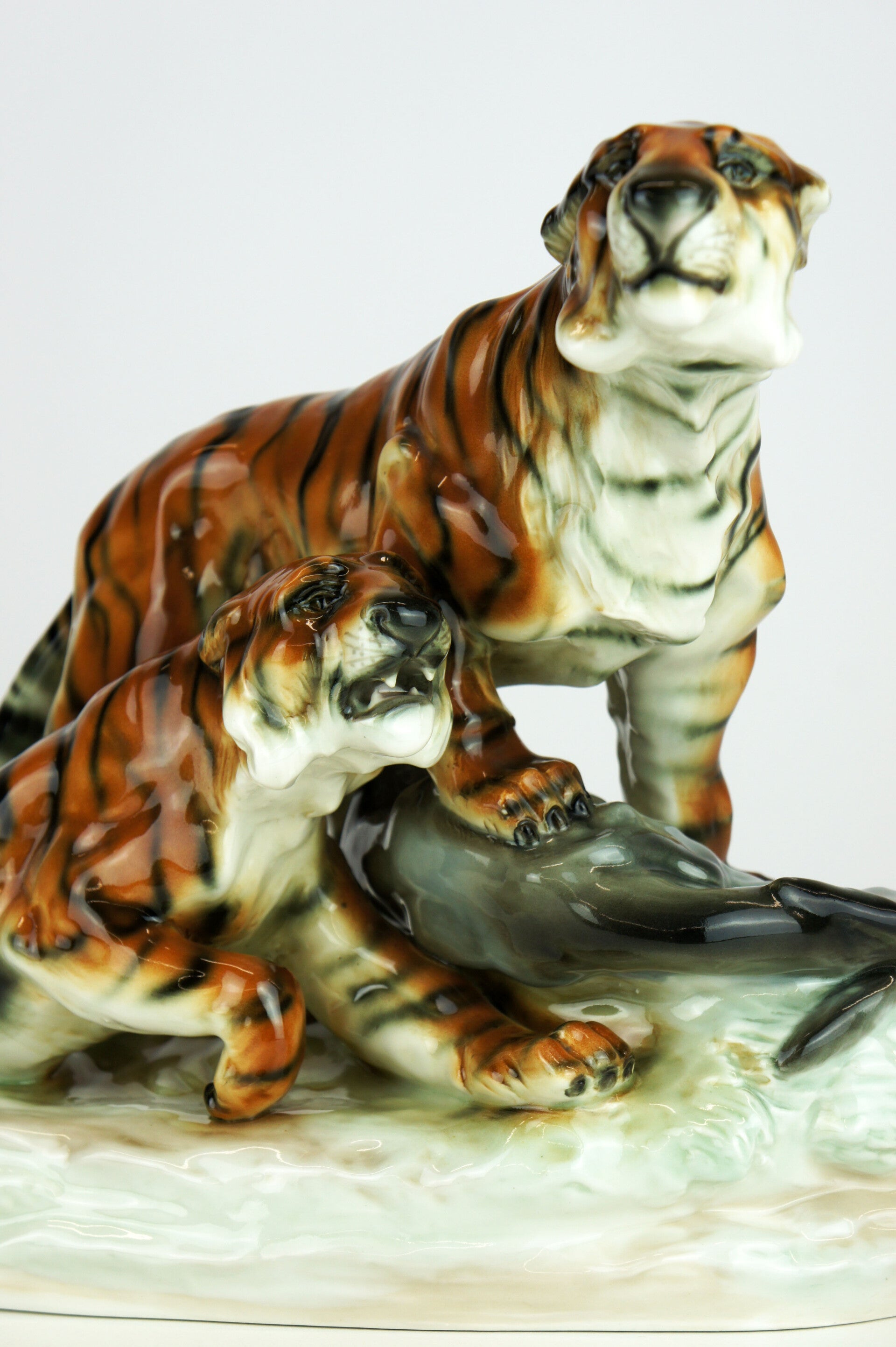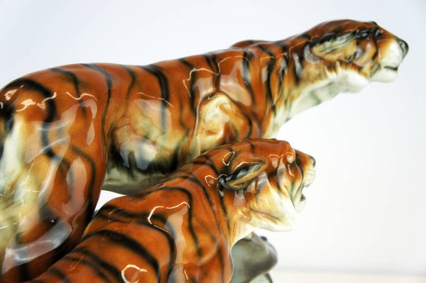 Exceptional group of tigers in amphora porcelain, produced in the Austrian Thurin period before around 1900.