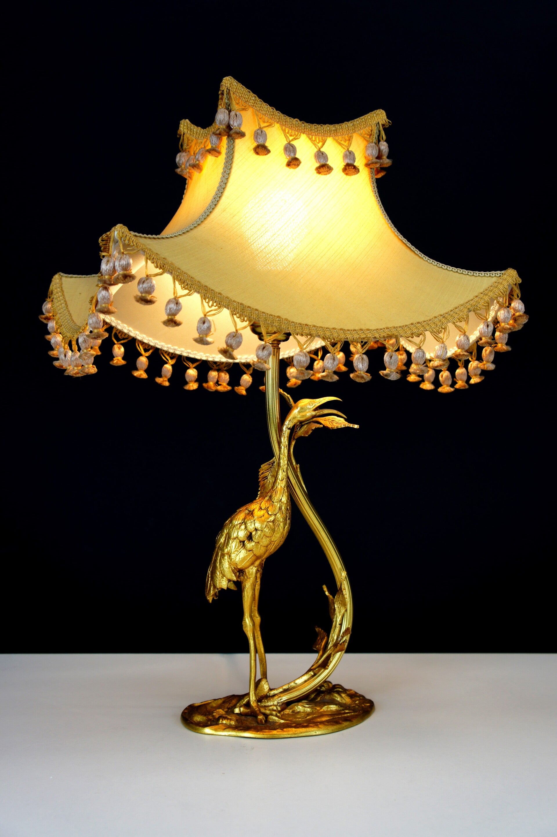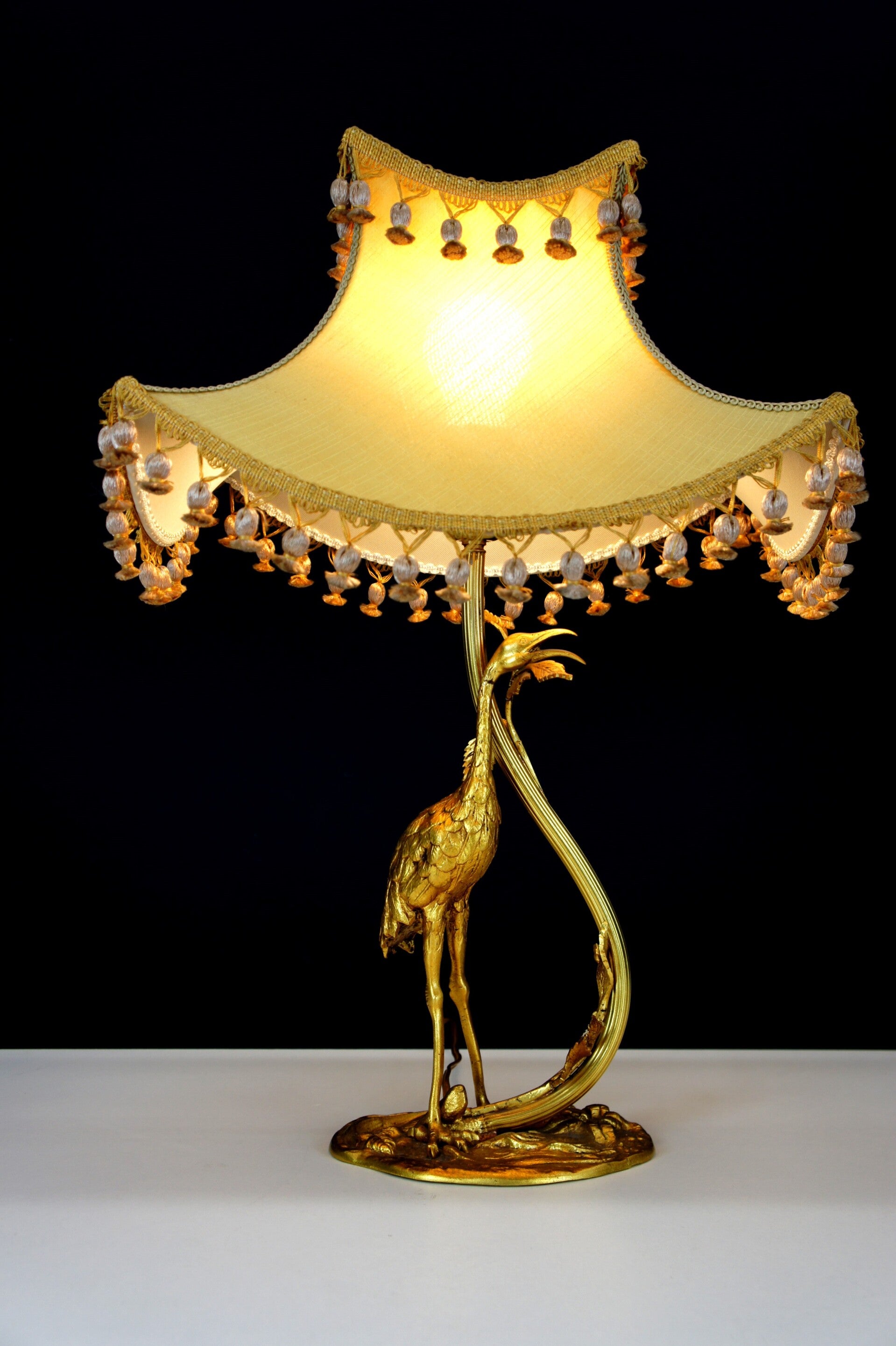 Elegant Bronze Gilded Heron Table Lamp- Art Nouveau