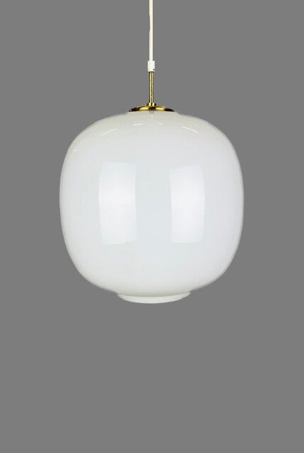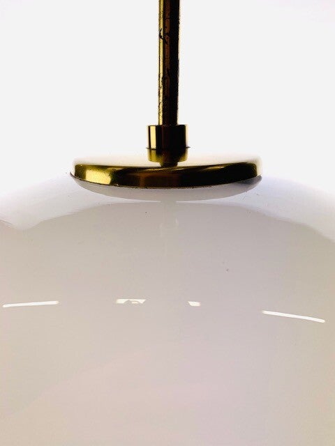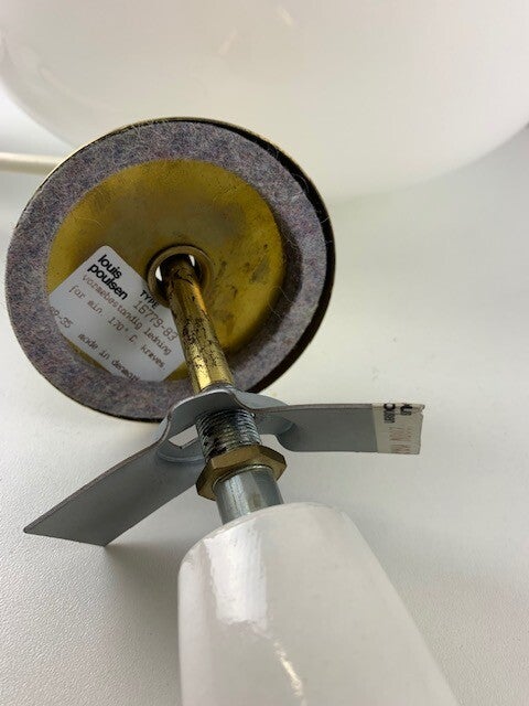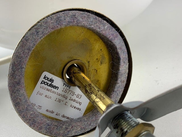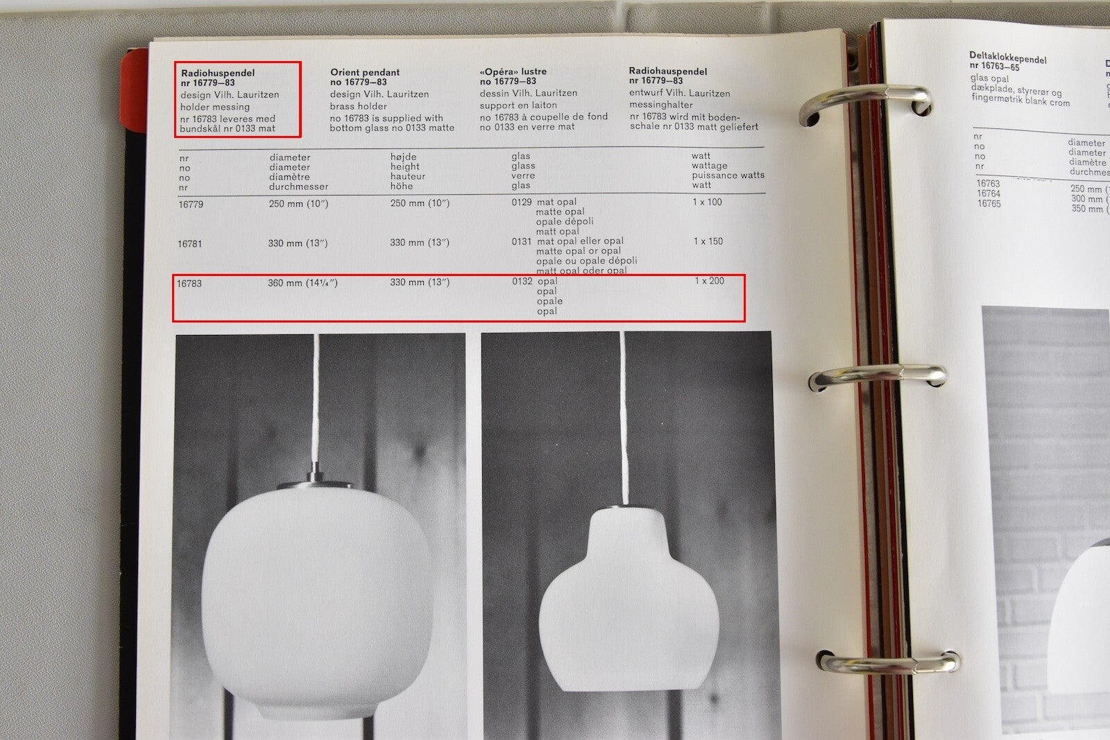 The lamp is labeled twice on the suspension, the type number is clearly visible, see also added photos of a catalog from the 1970s in which this lamp is mentioned with type number, size and glass version.
