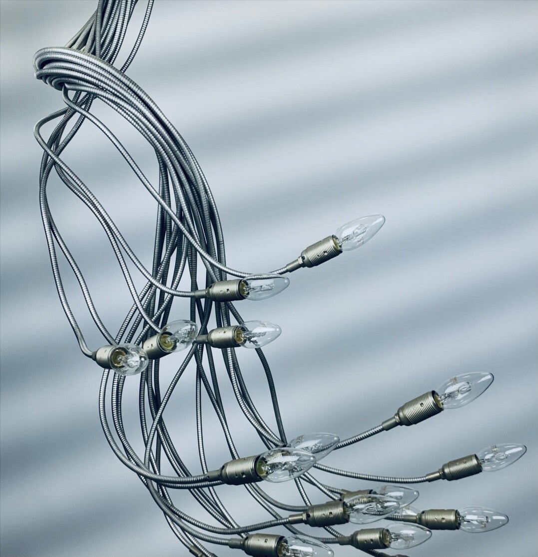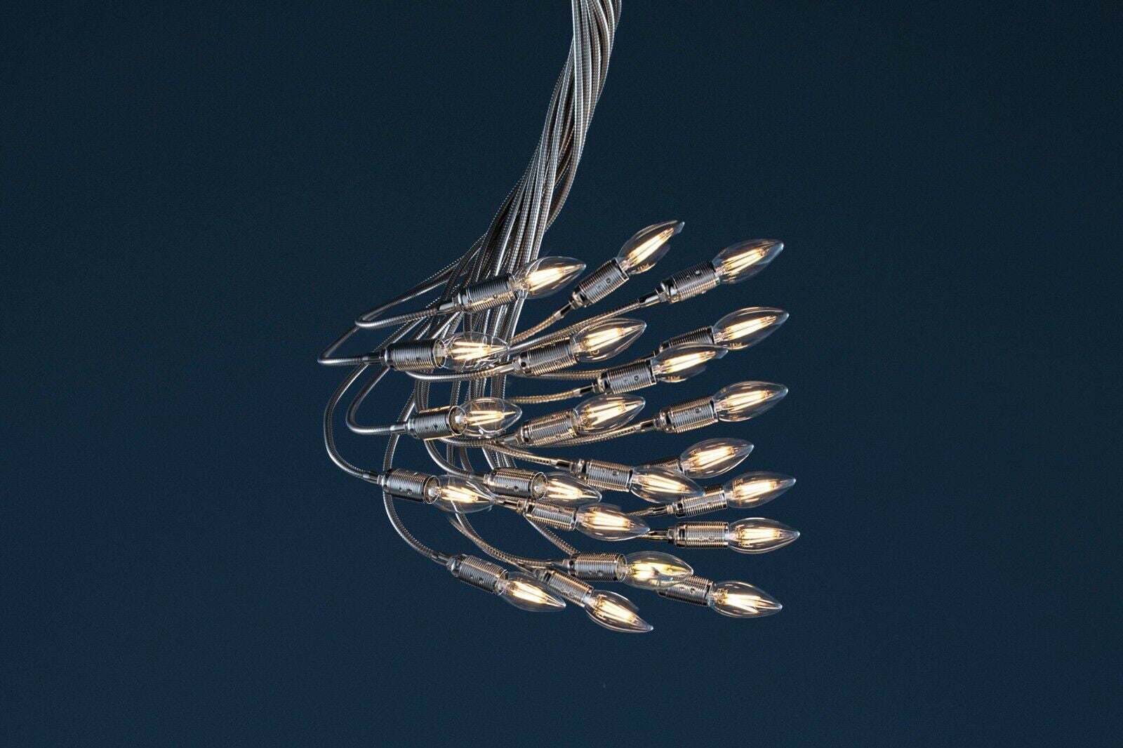 The Turciu Soffitto 21 has 21 flexible arms that can be bent into any desired position. The arms are produced from nickel