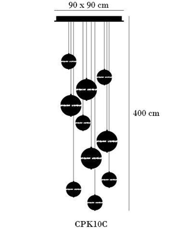 Because two spheres of a larger size were used, the ceiling mounting of 90 x 90 cm was used.