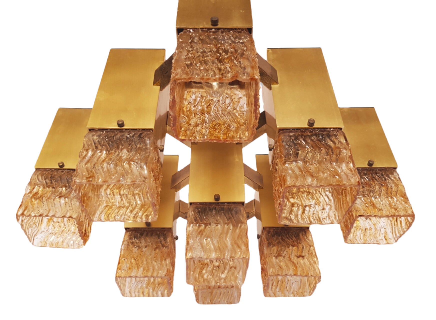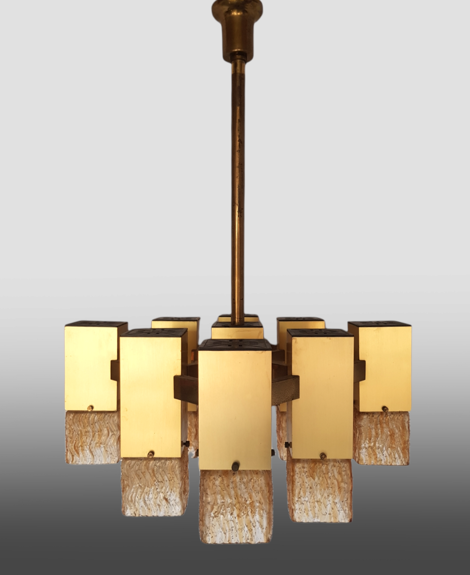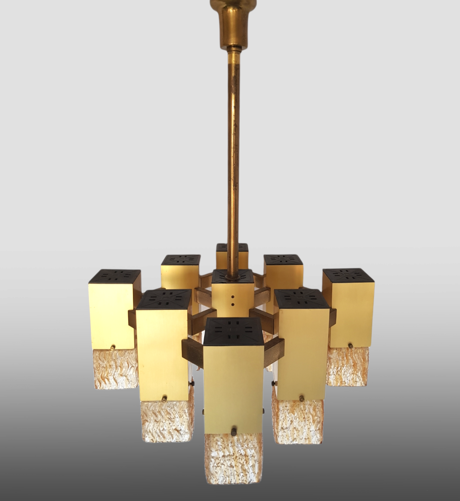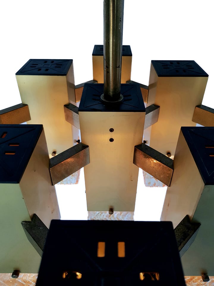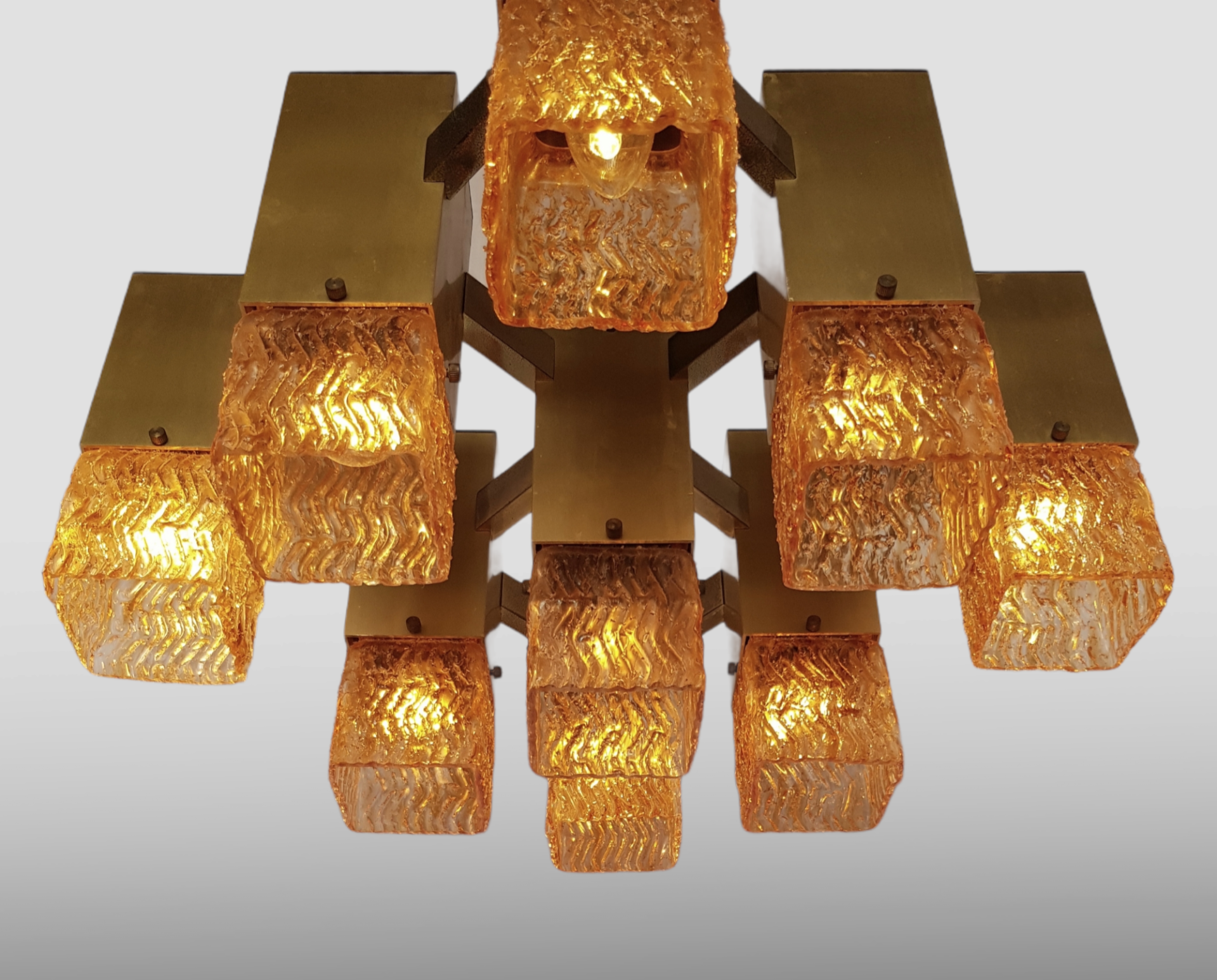 Cubic chandelier with 9 light points designed by Gaetano Sciolari, produced by the Italian Stilkronen in the 1970s.