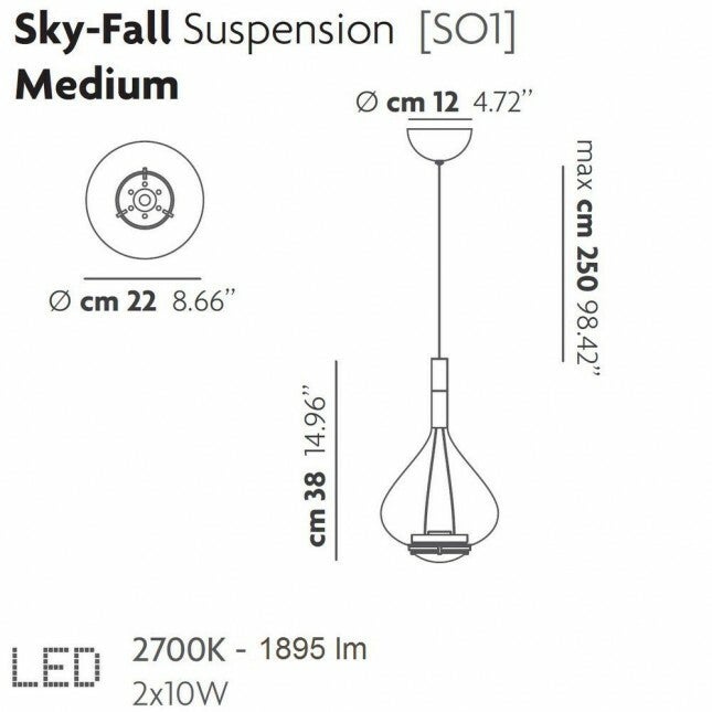 The Lodes Skyfall is made in two sizes, a Large model of Ø 36 cm and a Medium model of Ø 22 cm