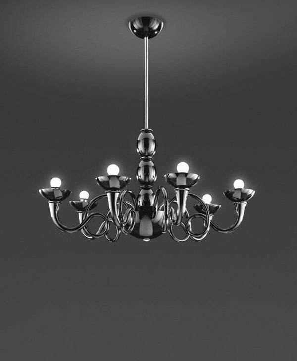 Six black murano arms, 6 light points, which are dimmable and work on a normal light source type E14
