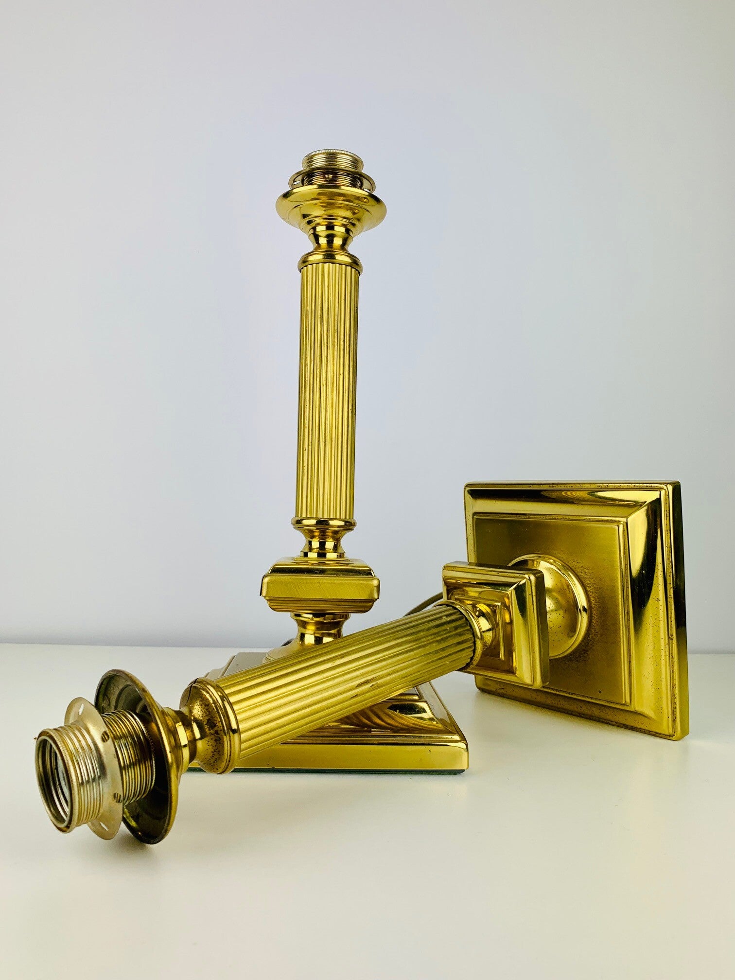 Beautiful large pair of Herda table lamps in full brass (gold colour).