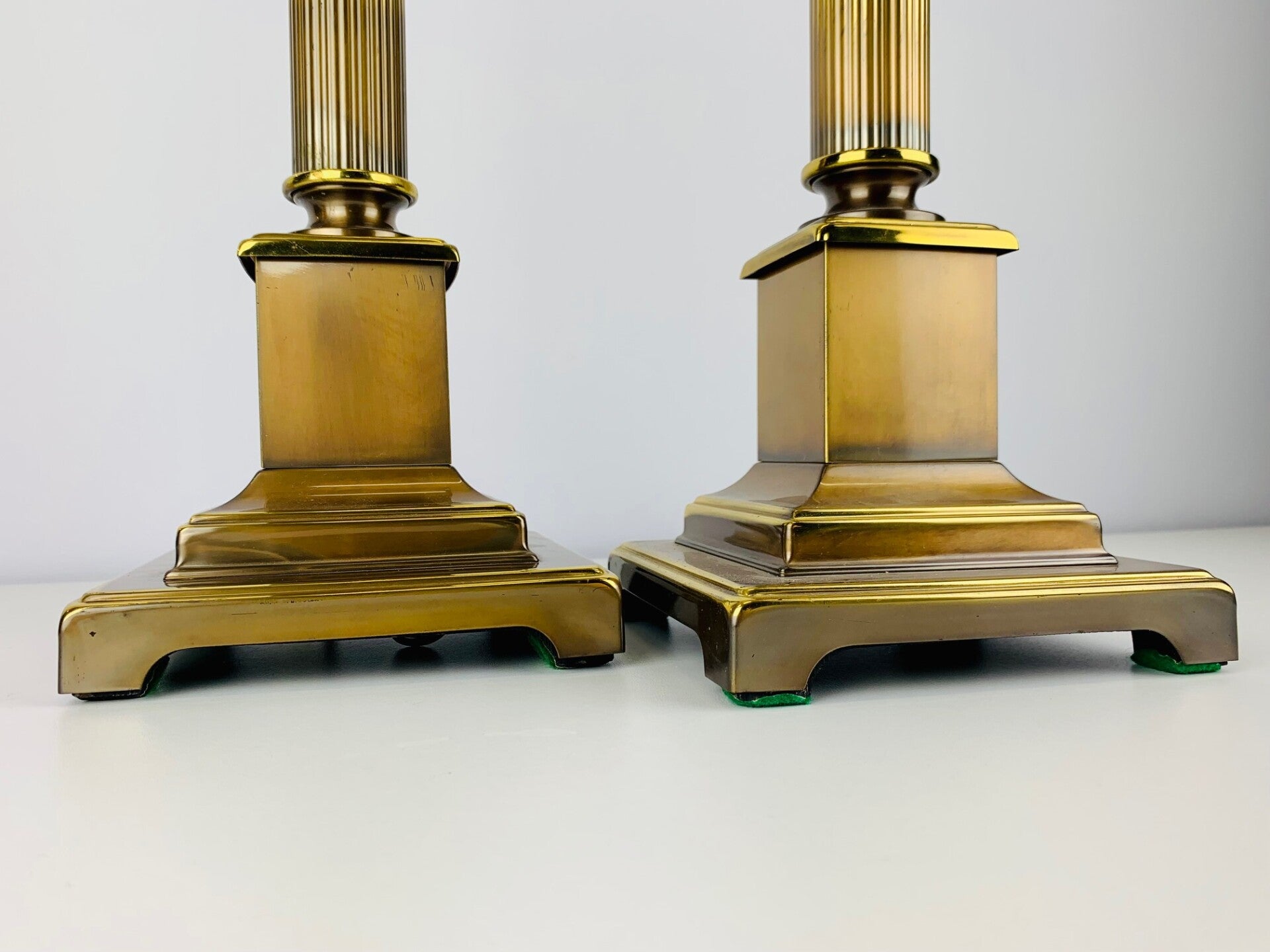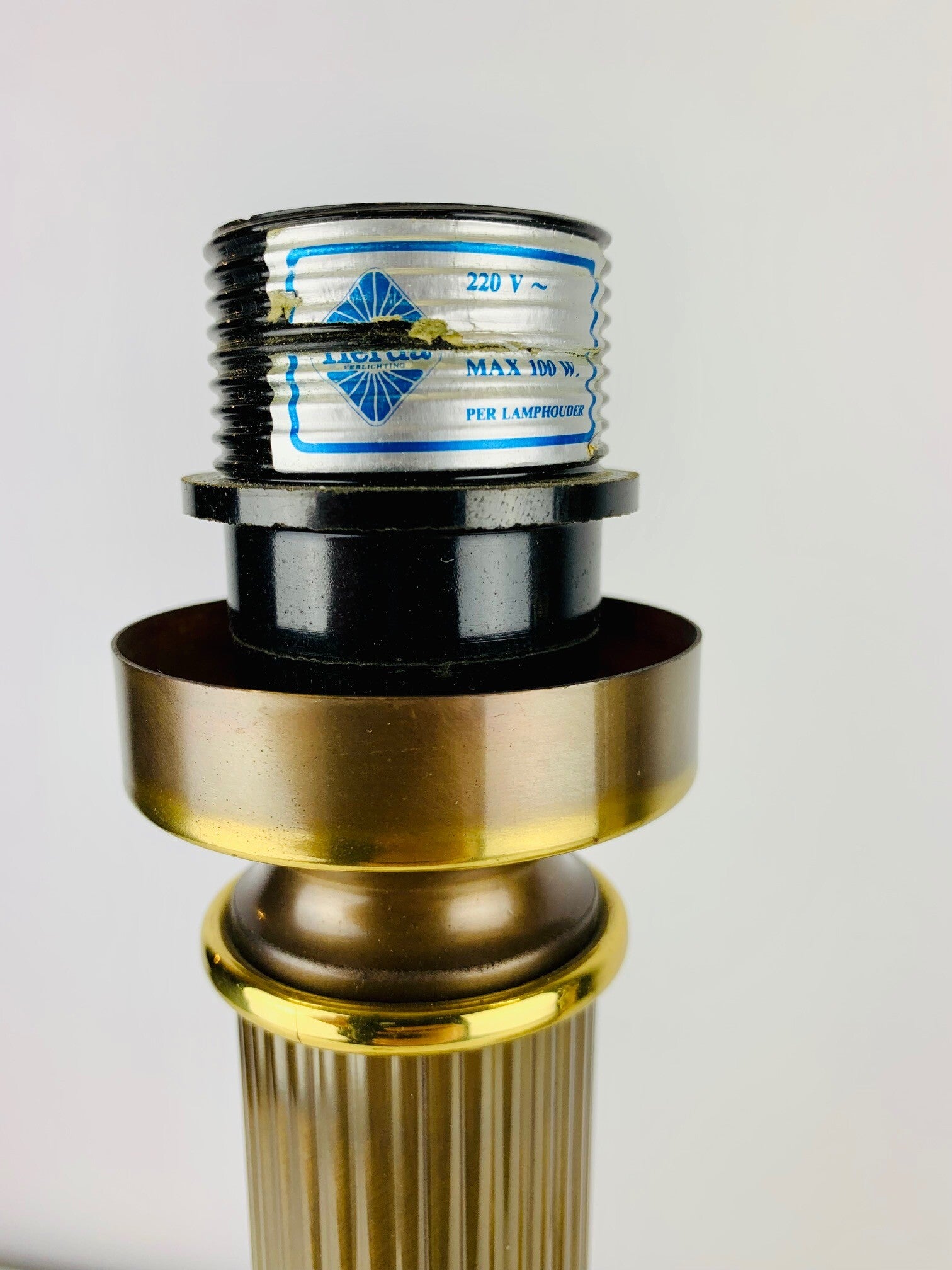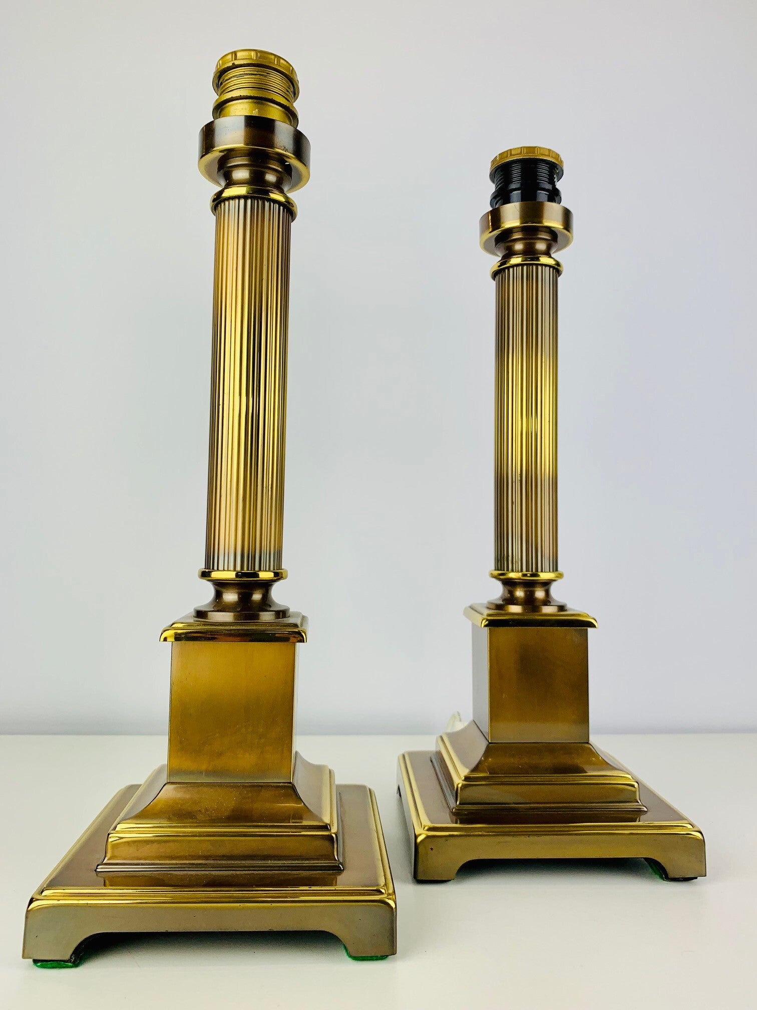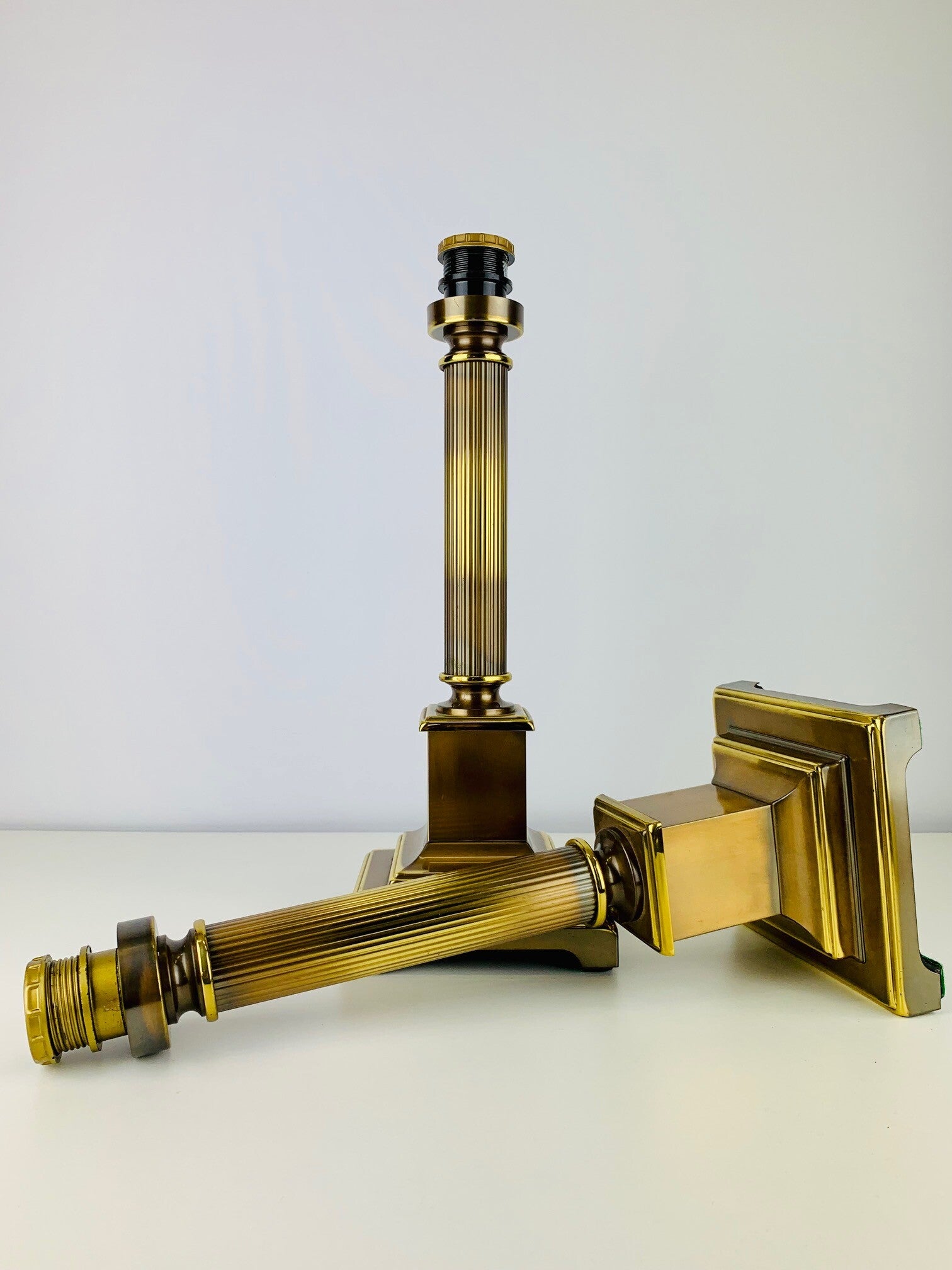 Pair of brass column table lamps from the Dutch brand 'Herda'.(1946-1997)