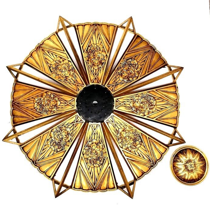 Beautiful Authentic Bronze Art deco Chandelier.