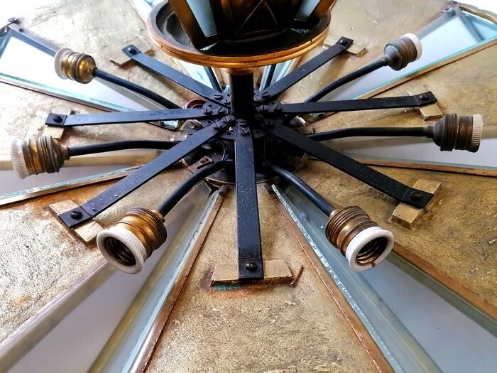 The full electricity has been checked and renewed with modern wiring. perfect working condition. The old porcelain fittings have been preserved. A total of 8 (E27) fittings in the bowl.