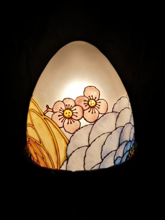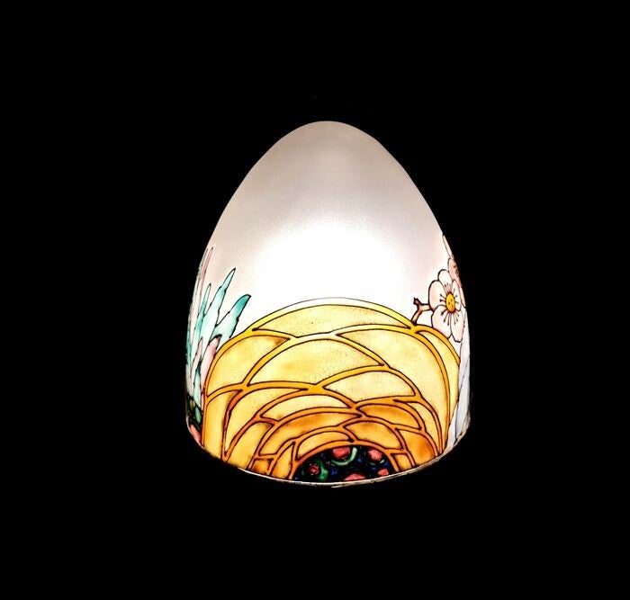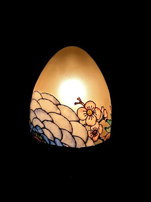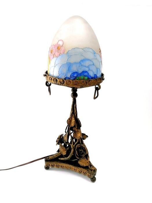 The decor of the lampshade can be found in the lucha catalog 1931. The side-shades of Loys Lucha are never signed. Completely original and table lamps were rarely made. collector's item.