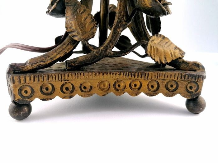 The high-quality bronze lamp base has beautiful decorations (Roses with branches and leaves, art deco motifs on the base)