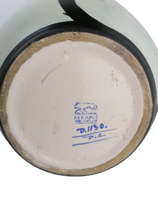 The vase is marked on the bottom with logo/décor/painter. The initials LD are from Leon Delfant, who was active for Boch Frères ceramics in the period 1924 - 1964.