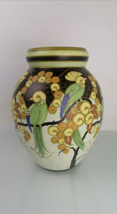 Charles Catteau vase, décor 1130, multicoloured décor with exotic birds and floral motifs.