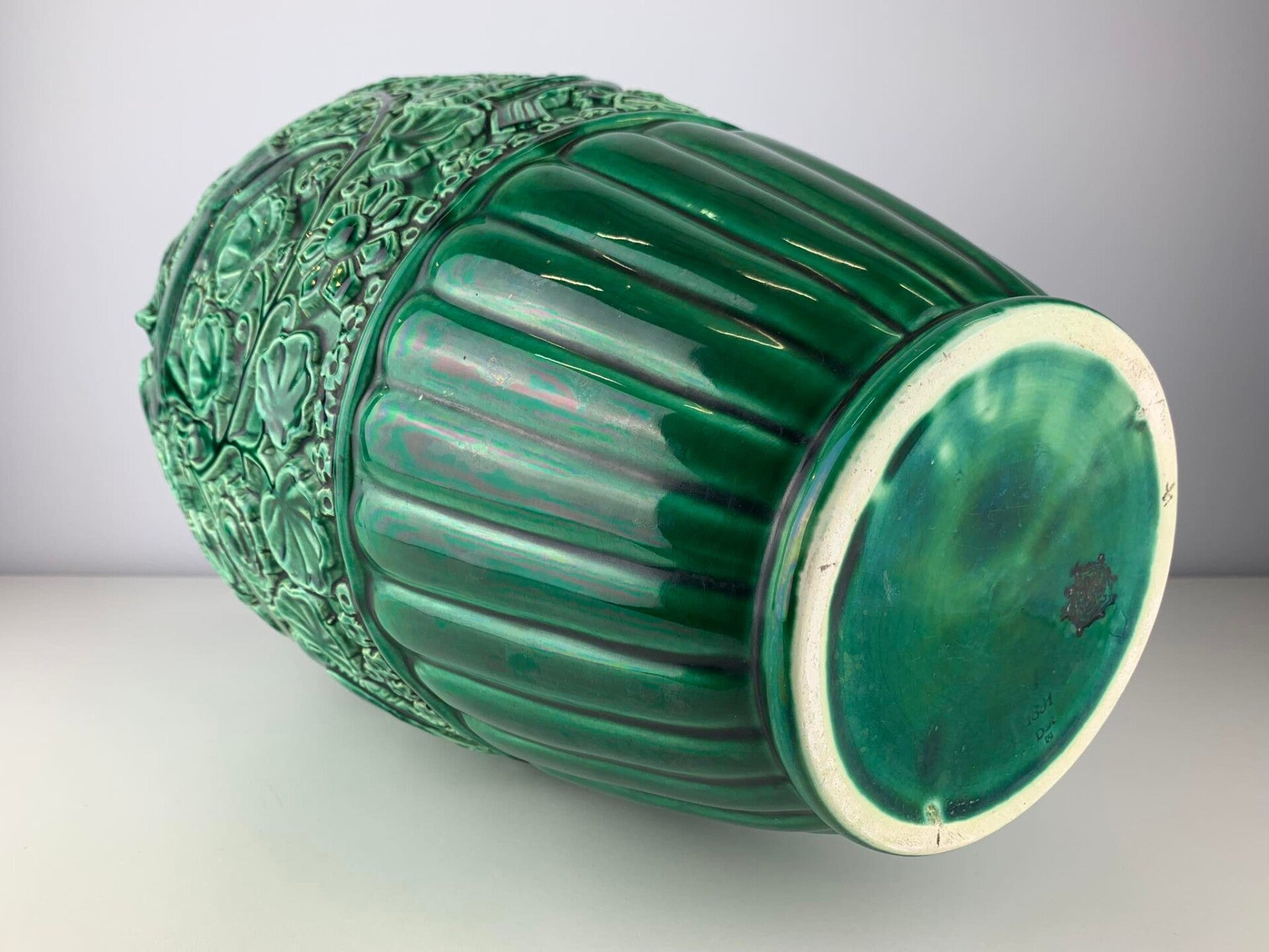 The vase was made between 1925 and 1929, marked at the bottom with the Villeroy & Boch sign, which was used from the end of the 19th century up to and including 1936/1938. The mark shows the 'D' of Dresen in Art Nouveau initials with a V and B incorporated.