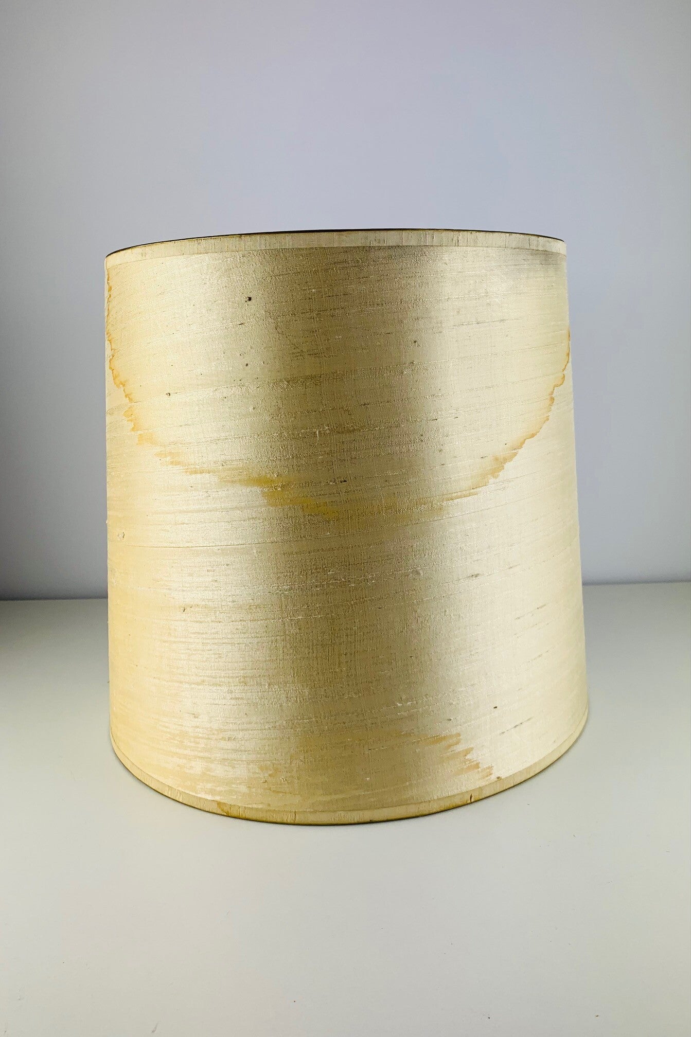 In excellent and working condition, the lamps both wear their contemporary lampshades, 1 of the lampshades has a stain on the outside.