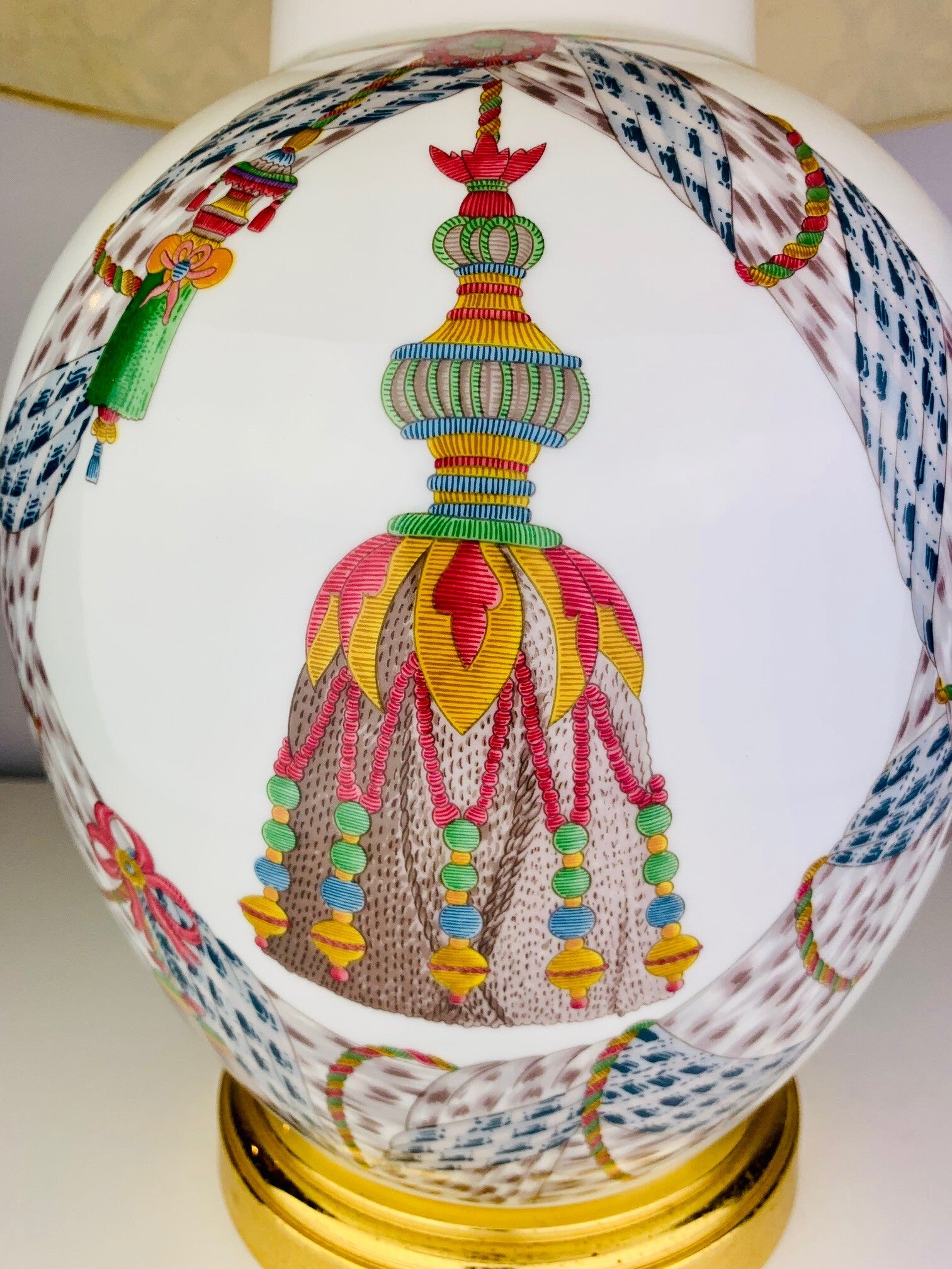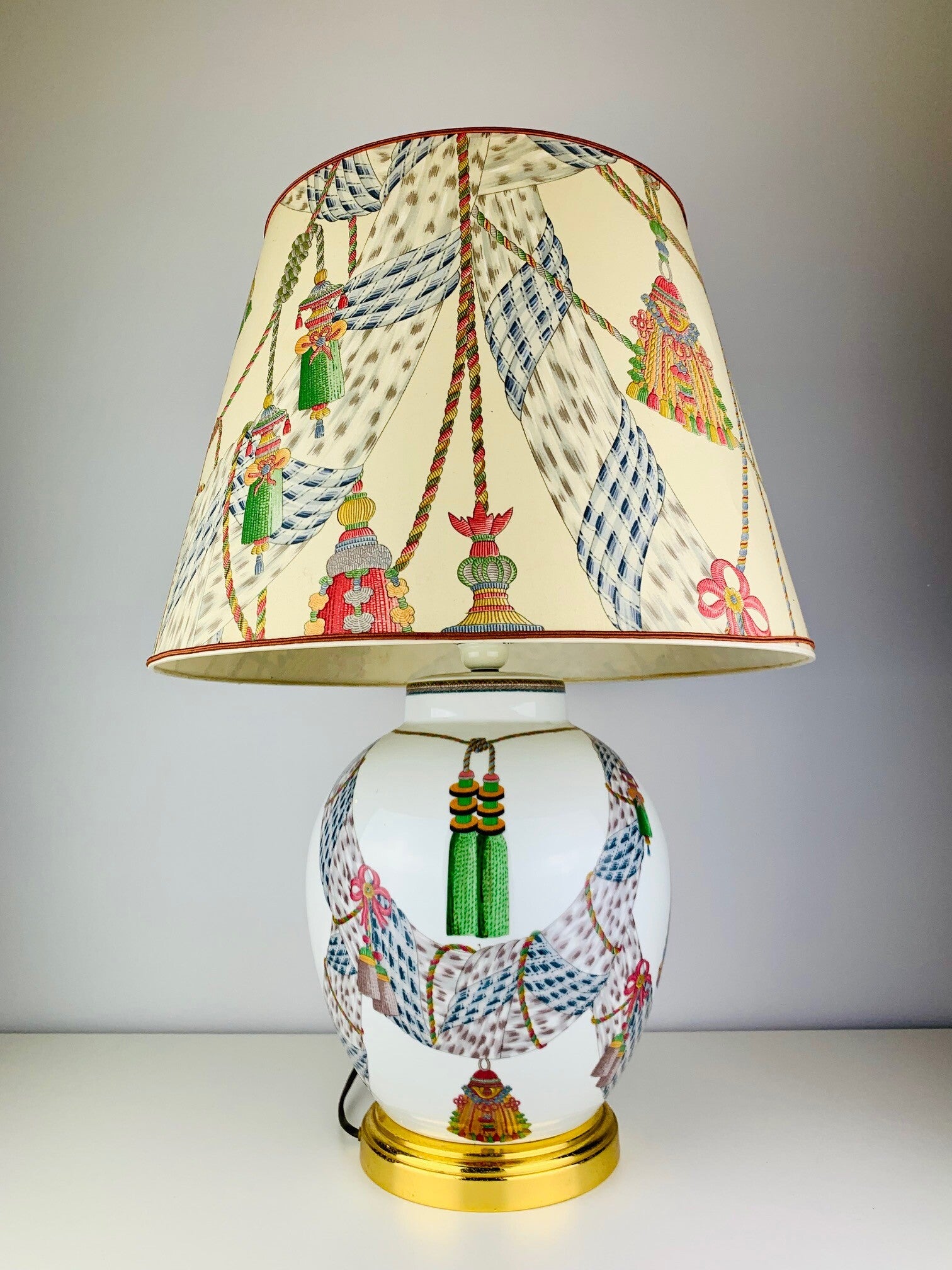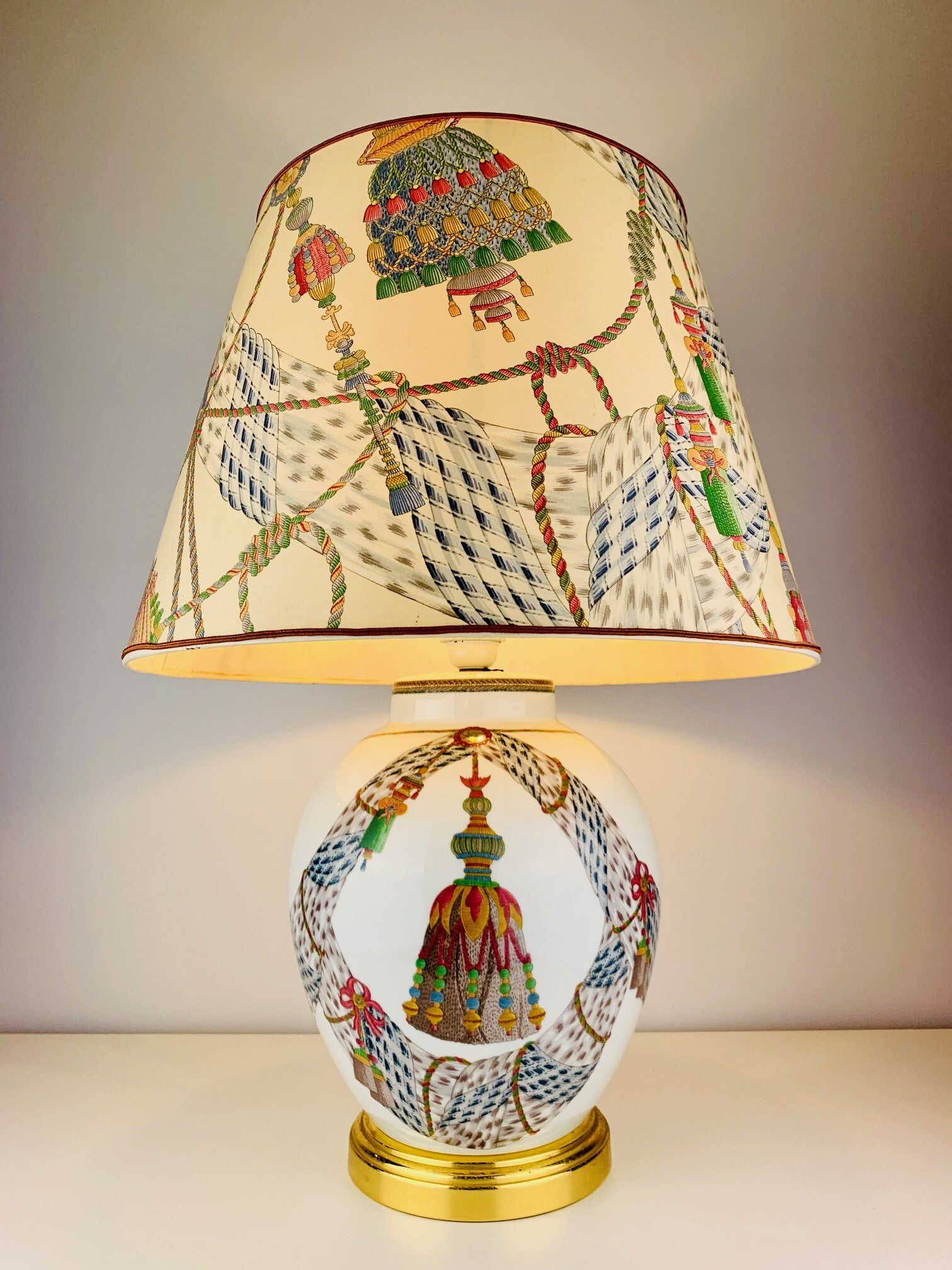 Exclusive table lamp produced by Porcelaine de Paris, in the well-known decor - Cafe Royal, by the French interior designer "Pierre Frey".