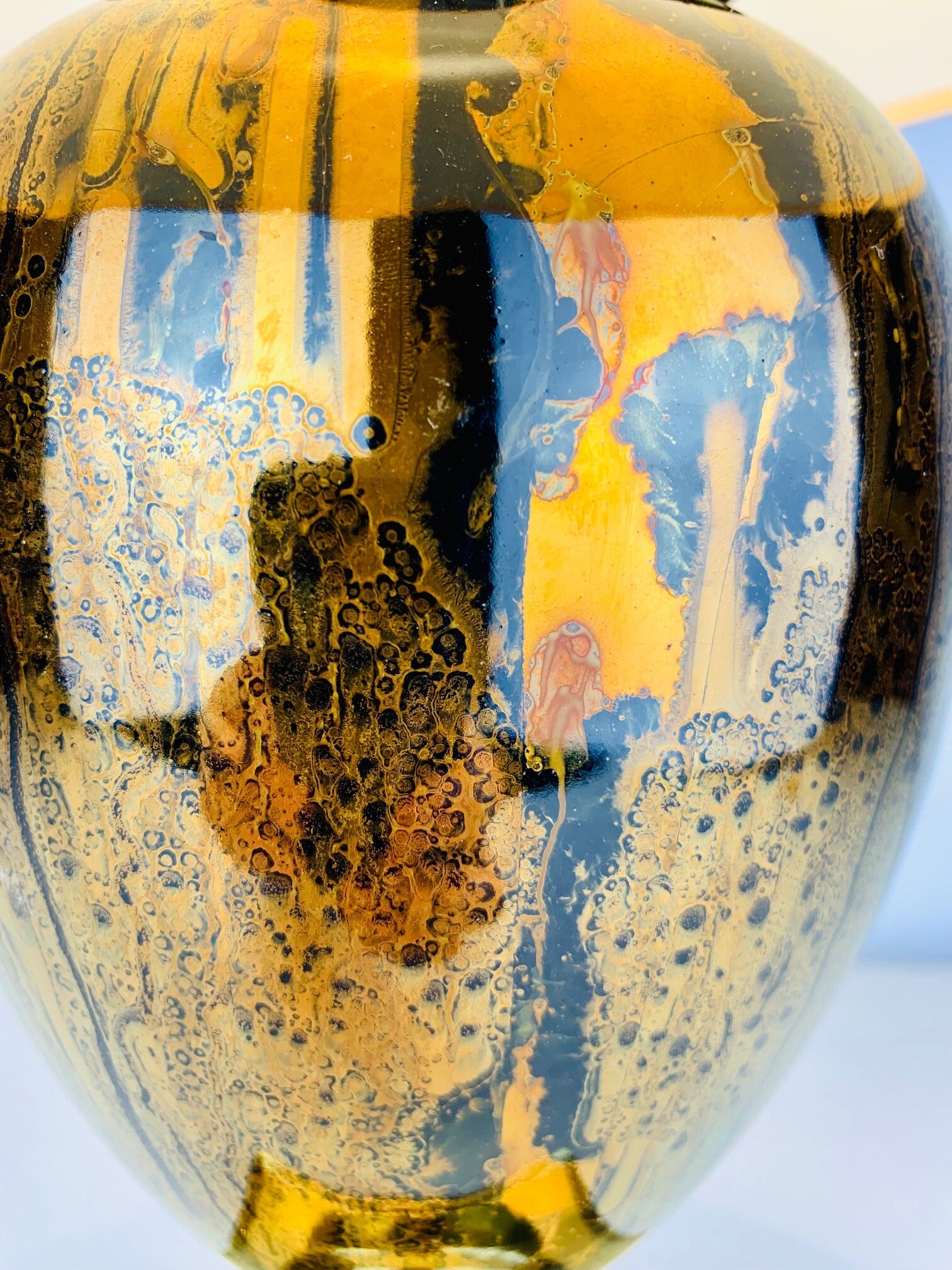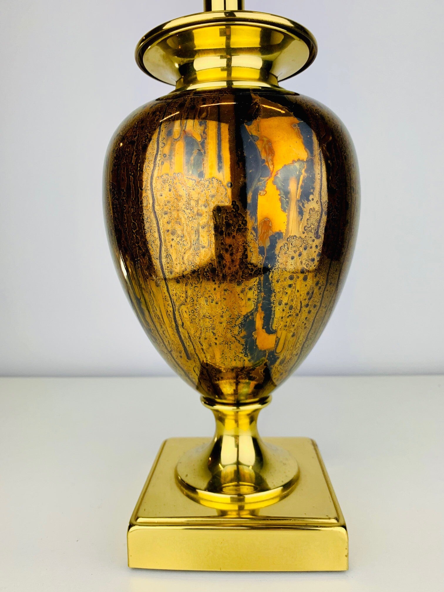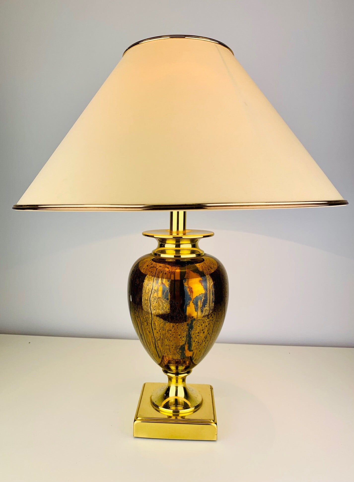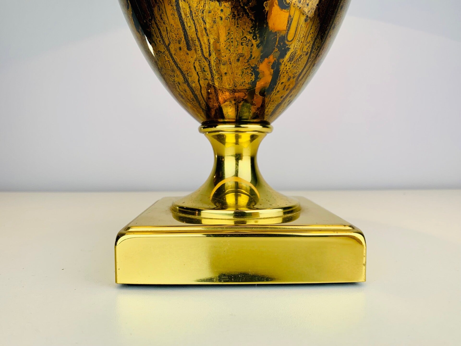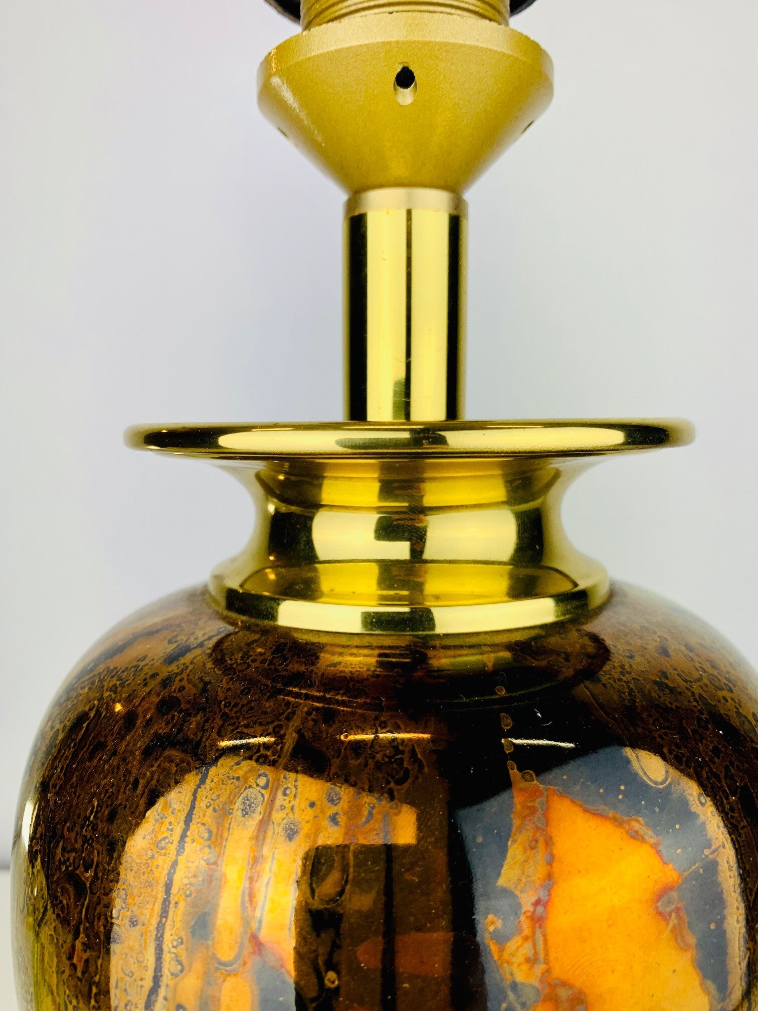 The base of the lamp has a very stylish appearance, due to the use of high-gloss gold cognac colors in a striking pattern that immediately draws attention to itself.