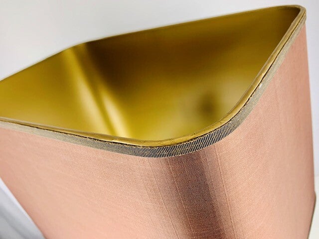 The lamp comes with a beautiful cream-colored burgundy lampshade, with a golden interior