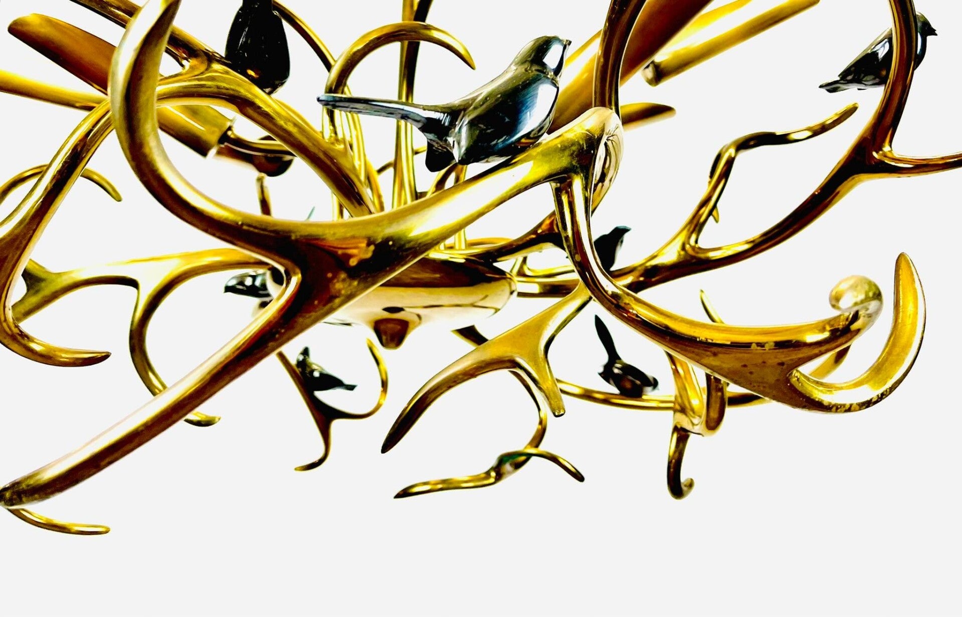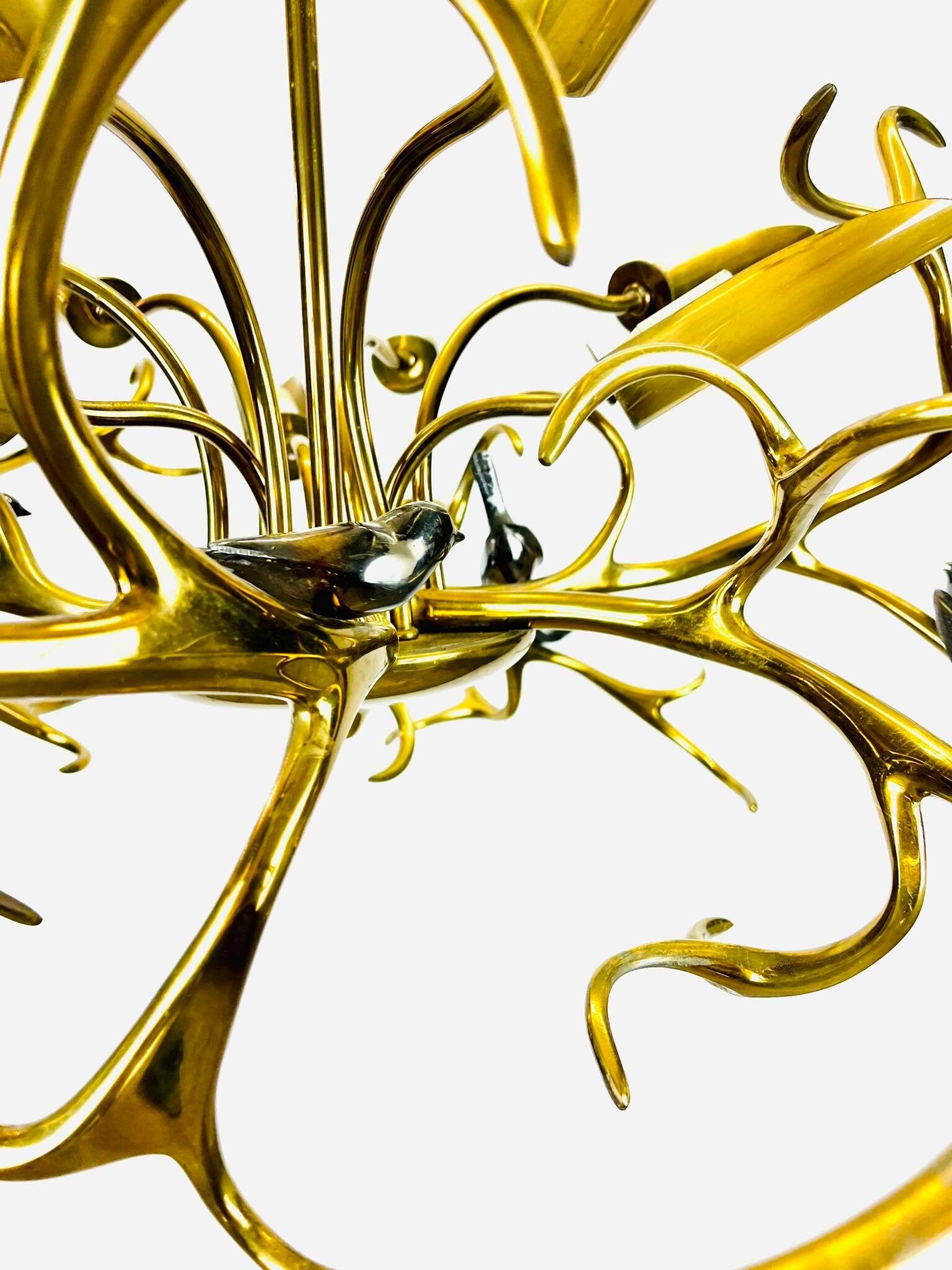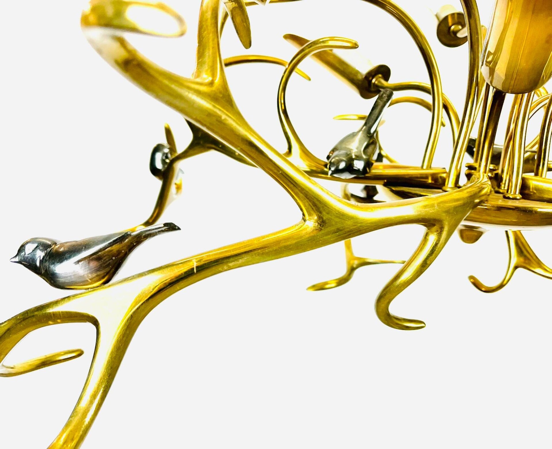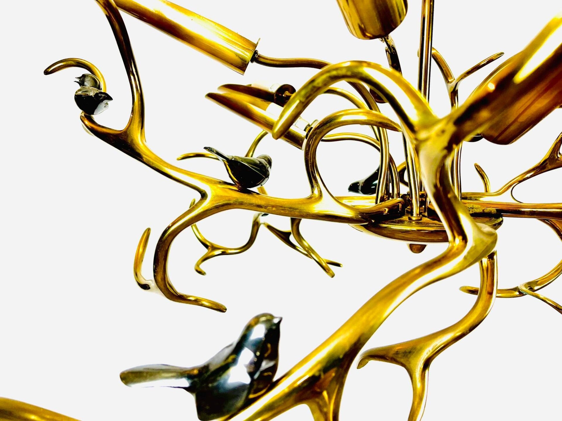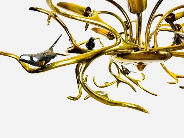 Willy Daro - Exceptional Brass, Bronze Branches & Birds Chandelier