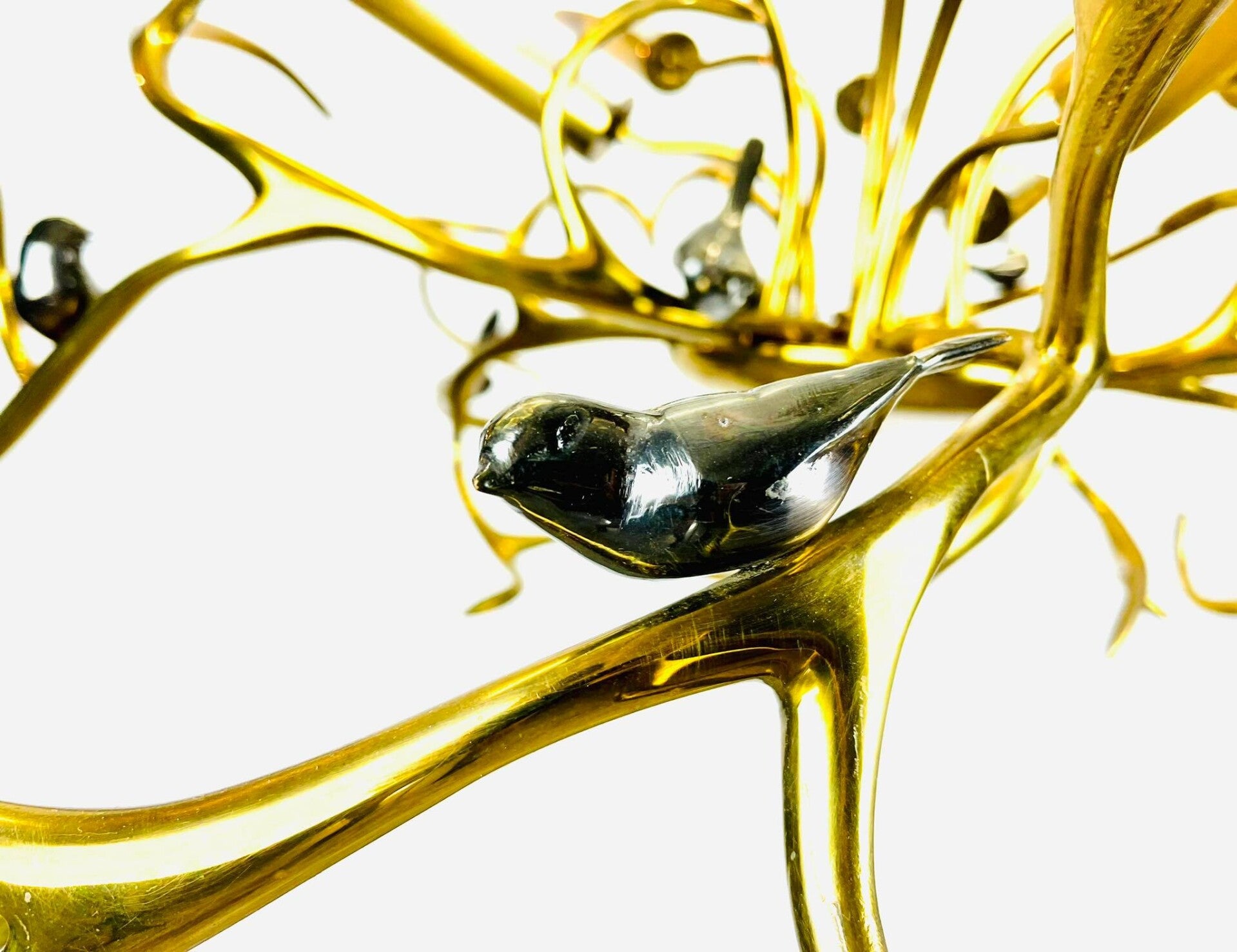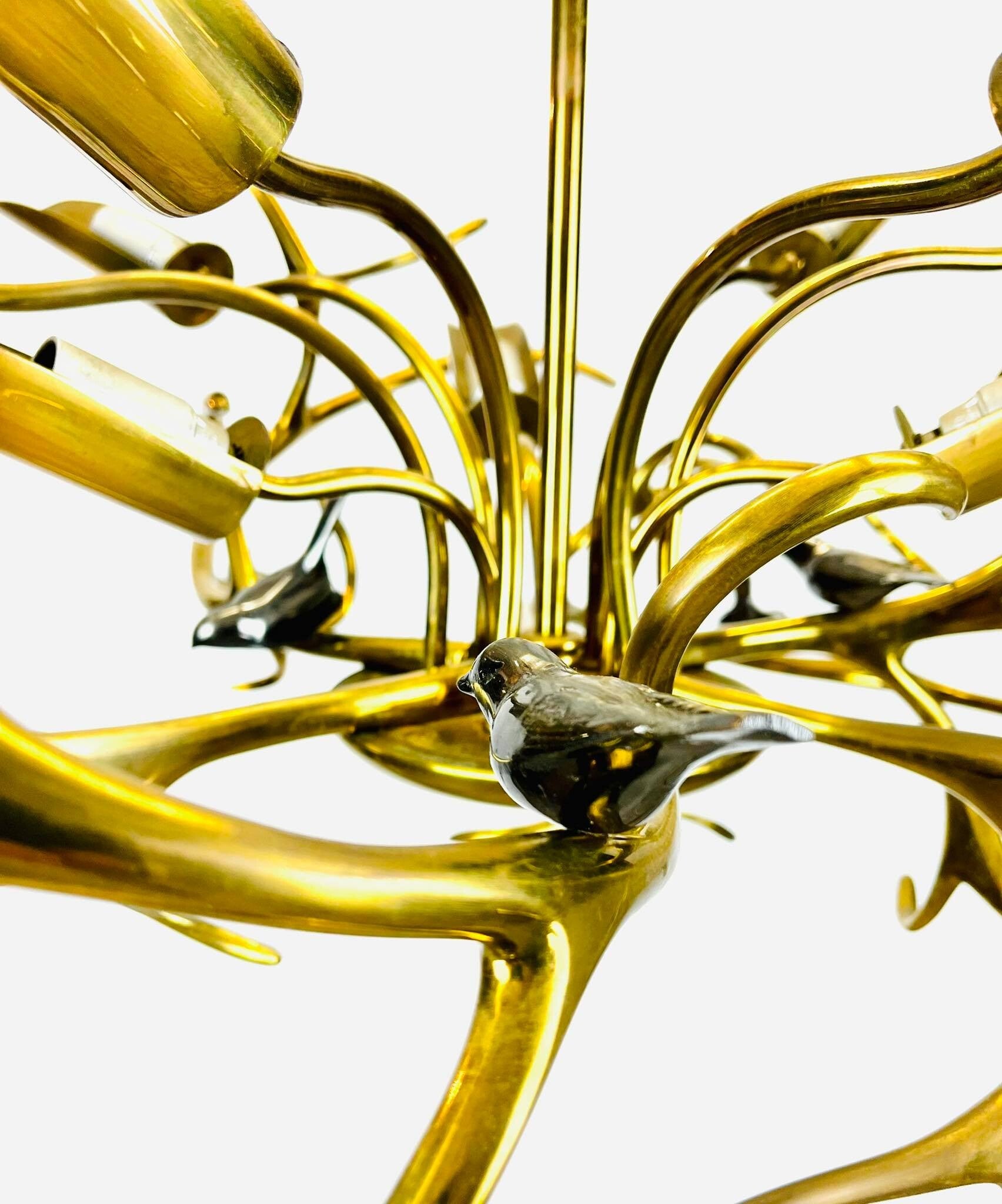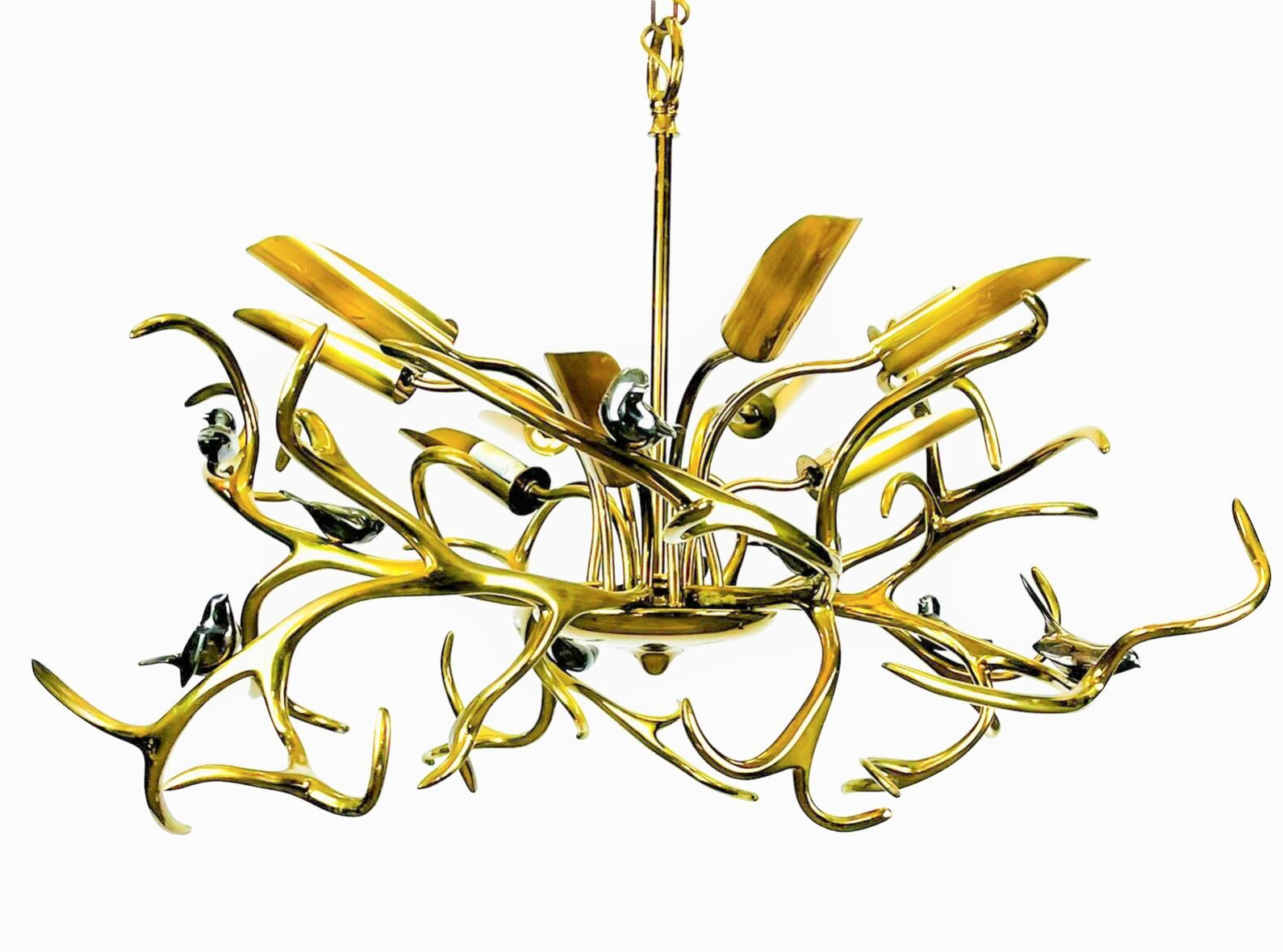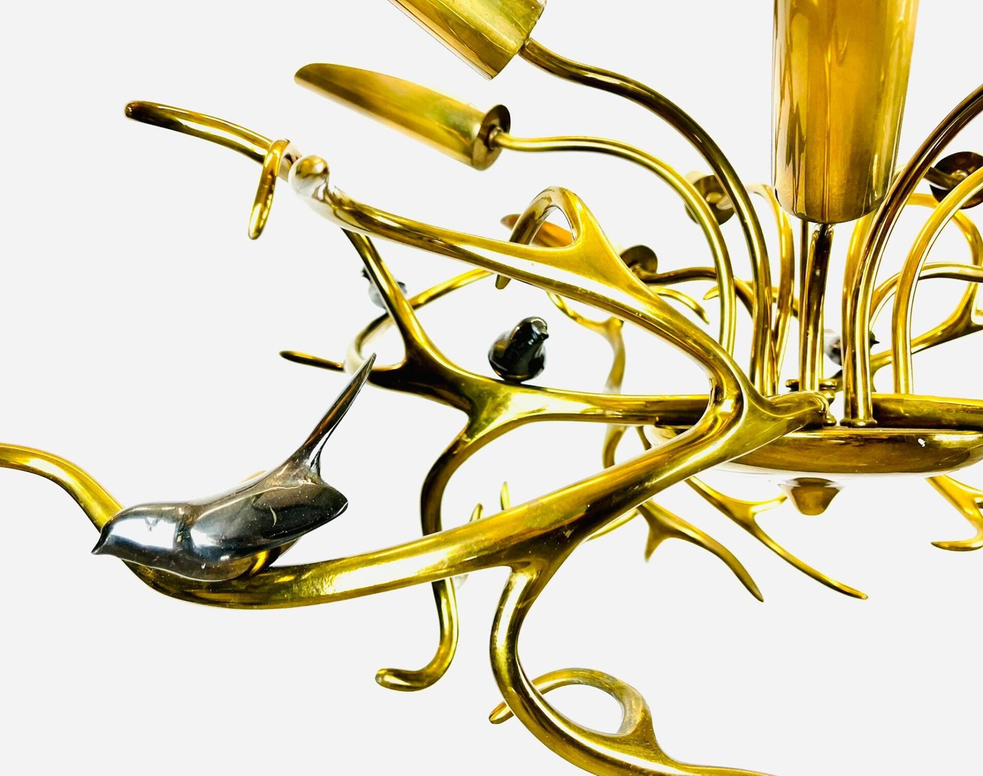 Willy Daro - Exceptional Brass, Bronze Branches & Birds Chandelier