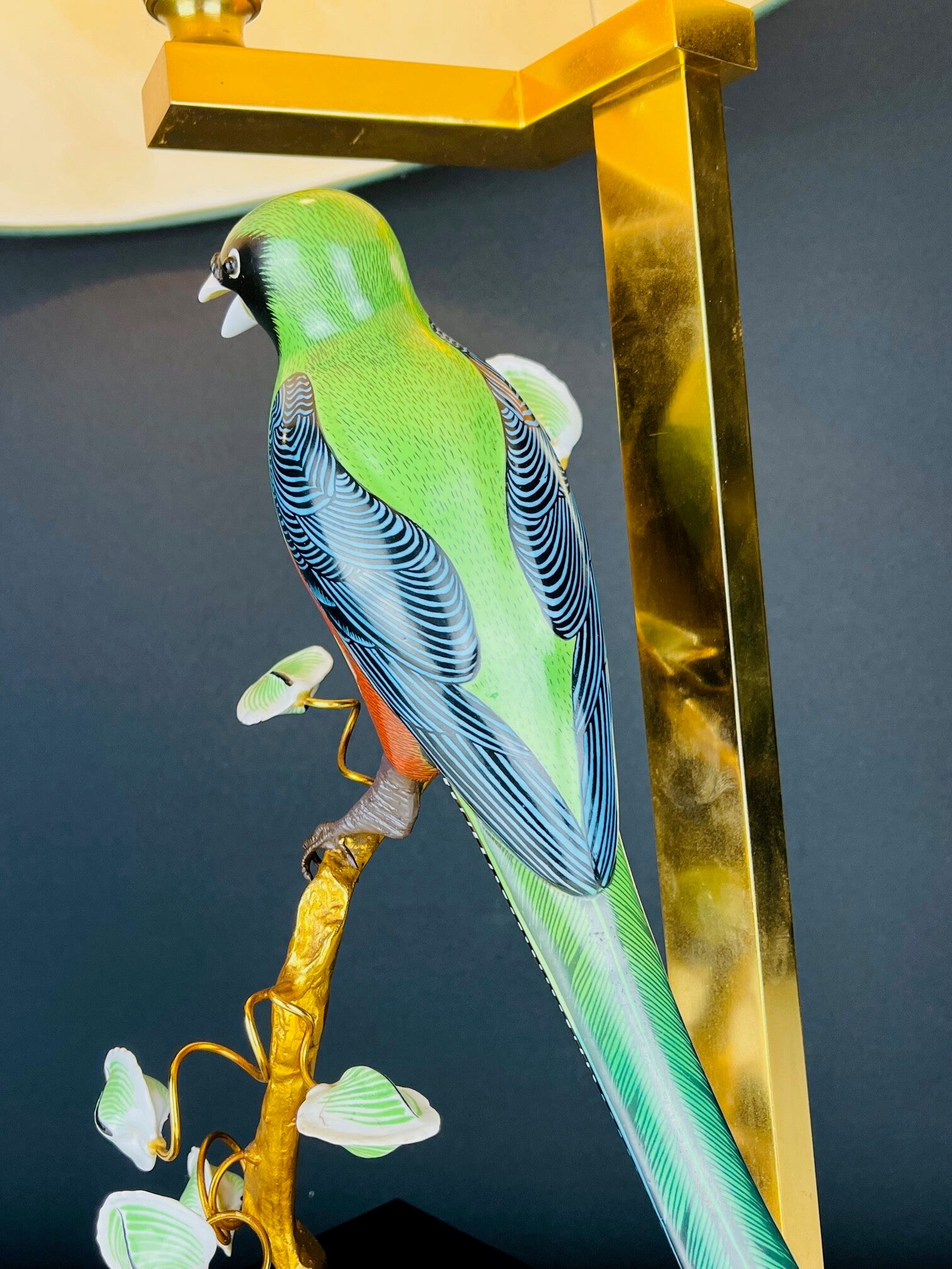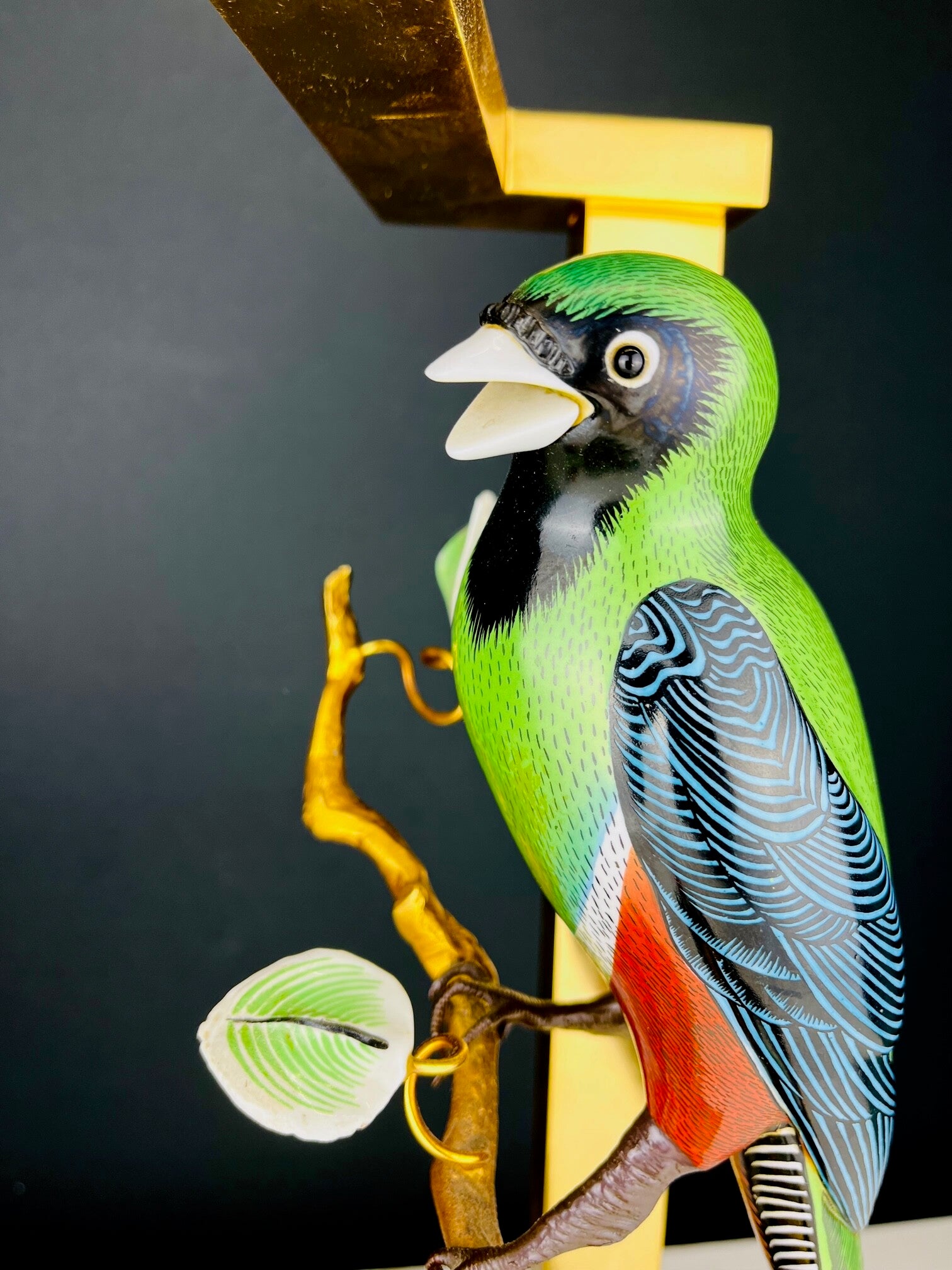 The porcelain bird is full of colorful details and has excellently executed legs.